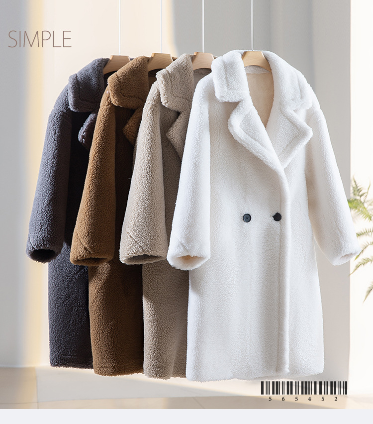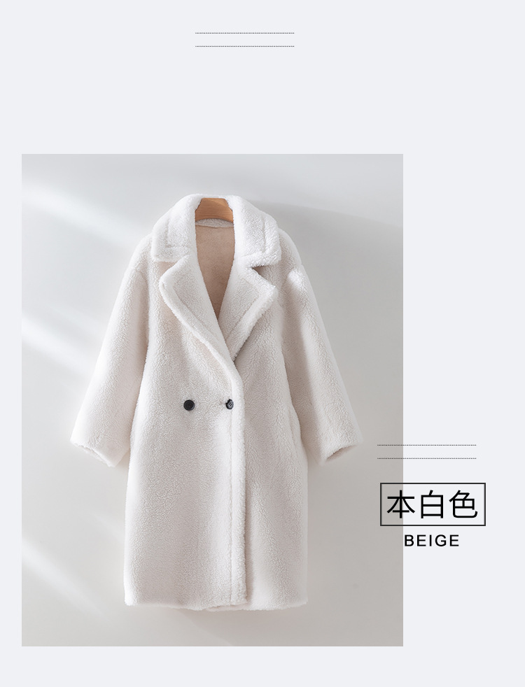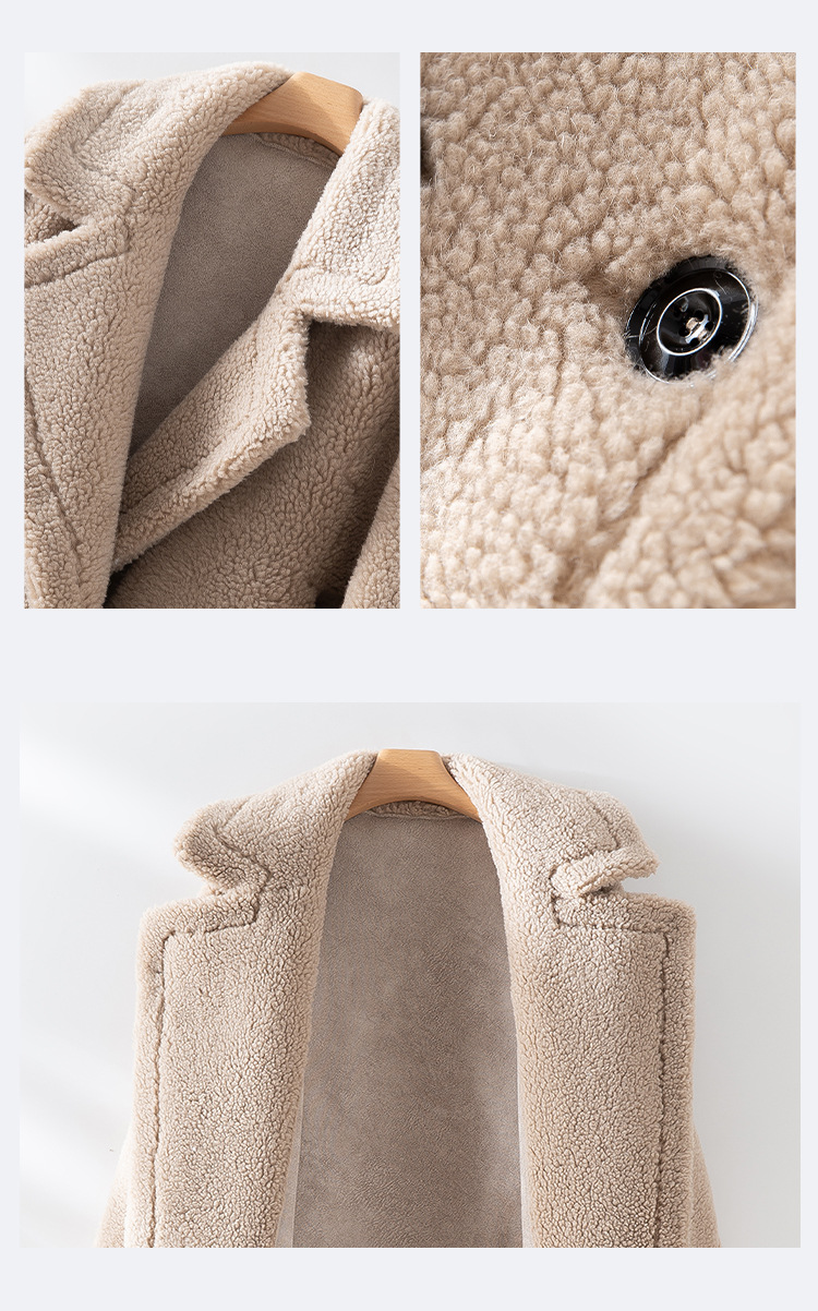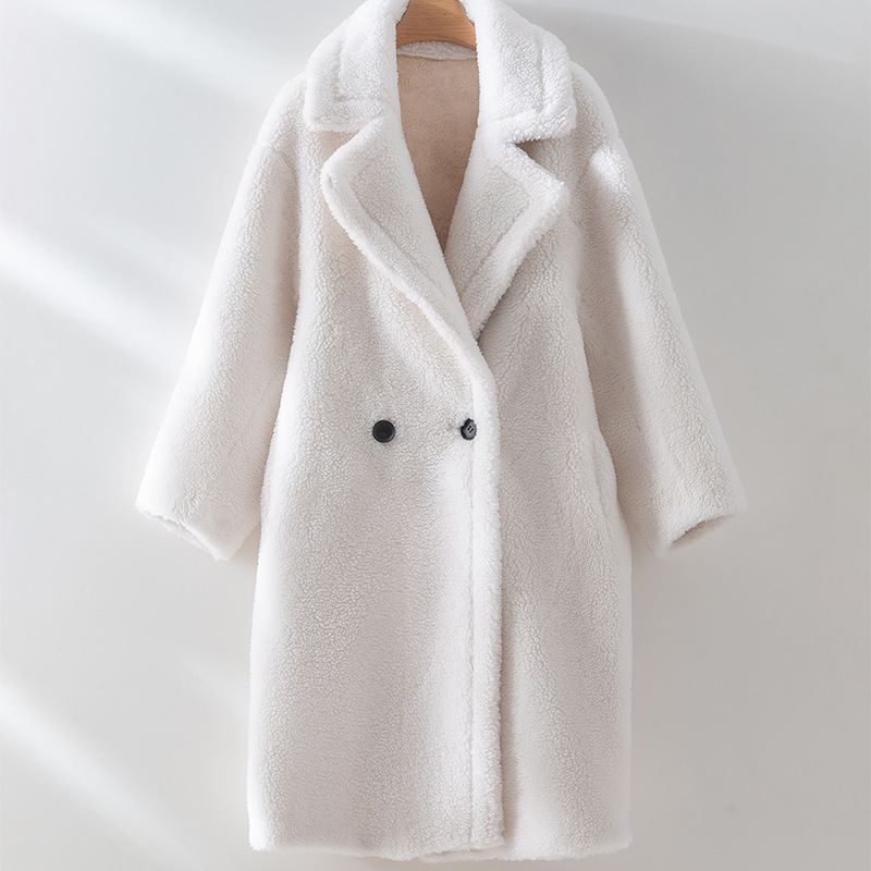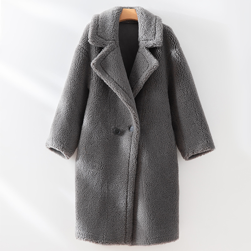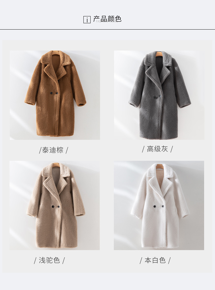 泰迪熊韩版羊毛复合皮毛一体皮草外套西装领过膝长款羊羔毛大衣女