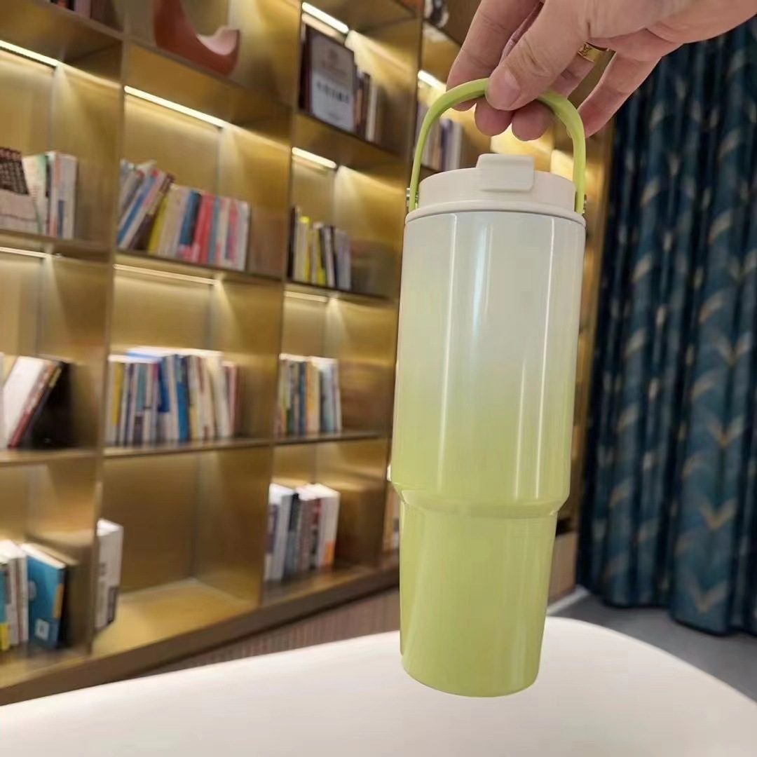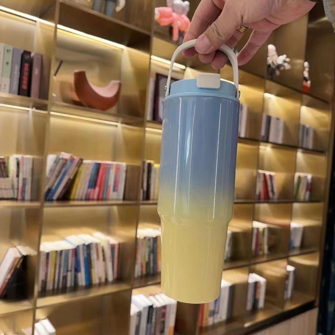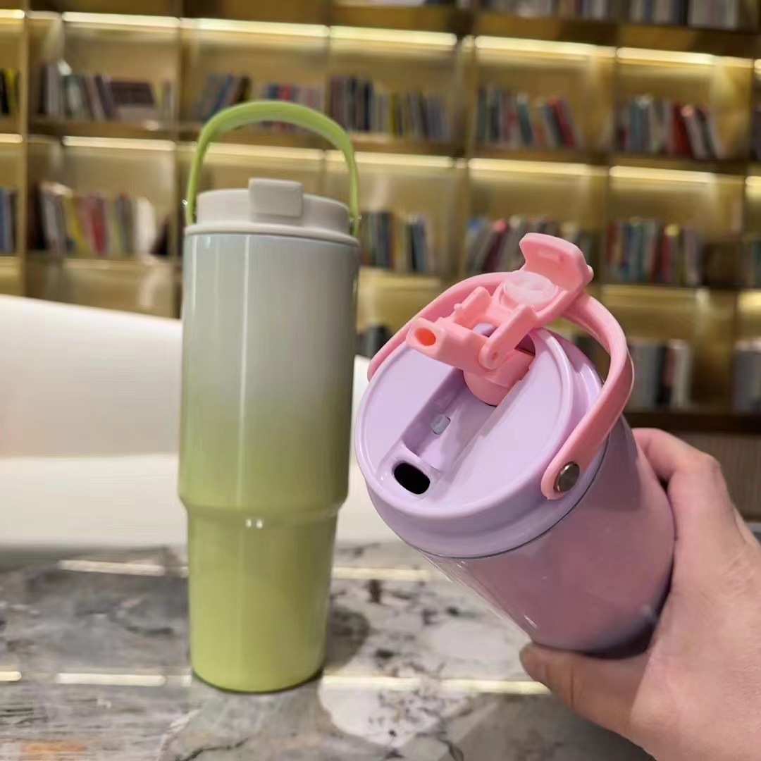 30oz大容量汽车杯户外便携304不锈钢水杯多彩夏日渐变吸管杯批发