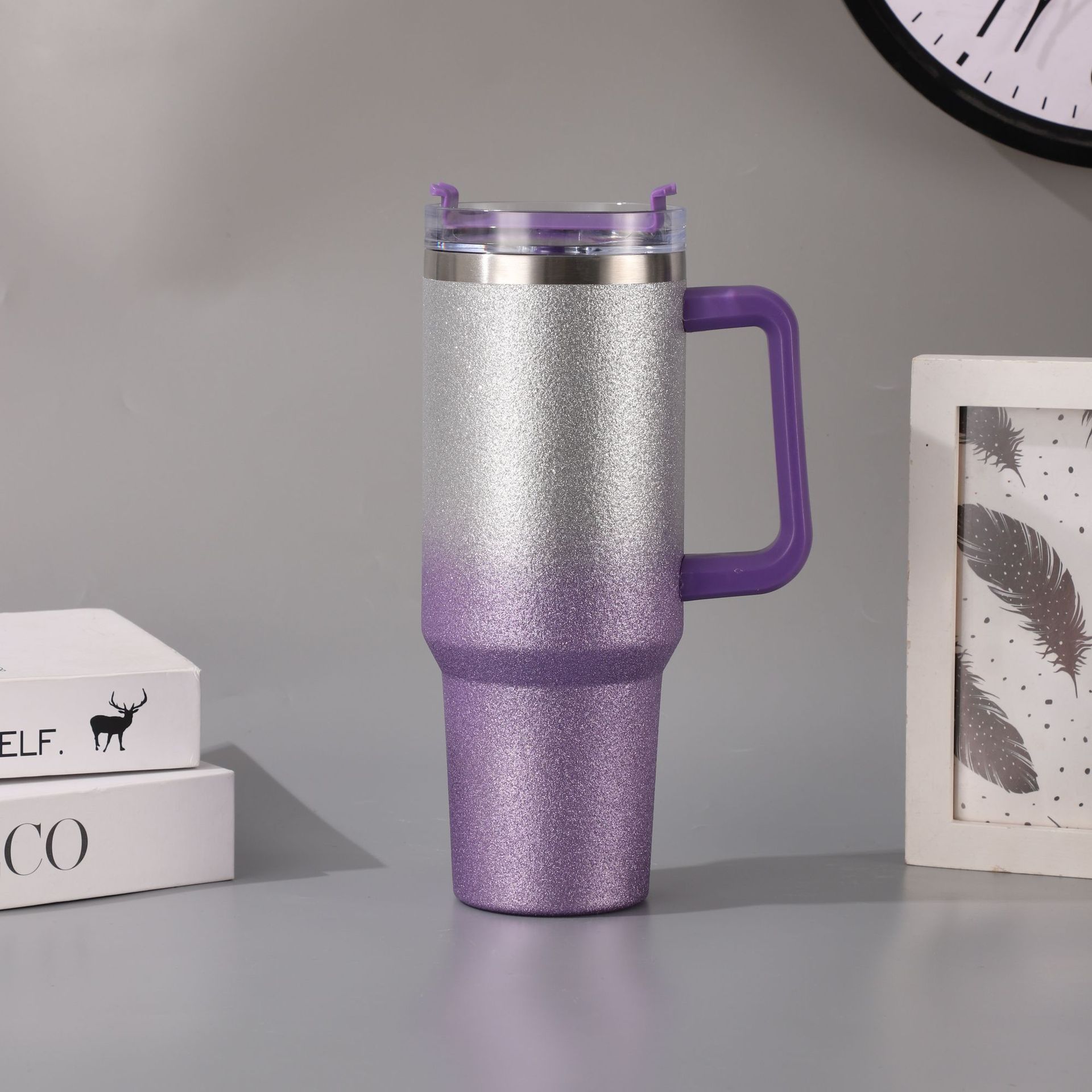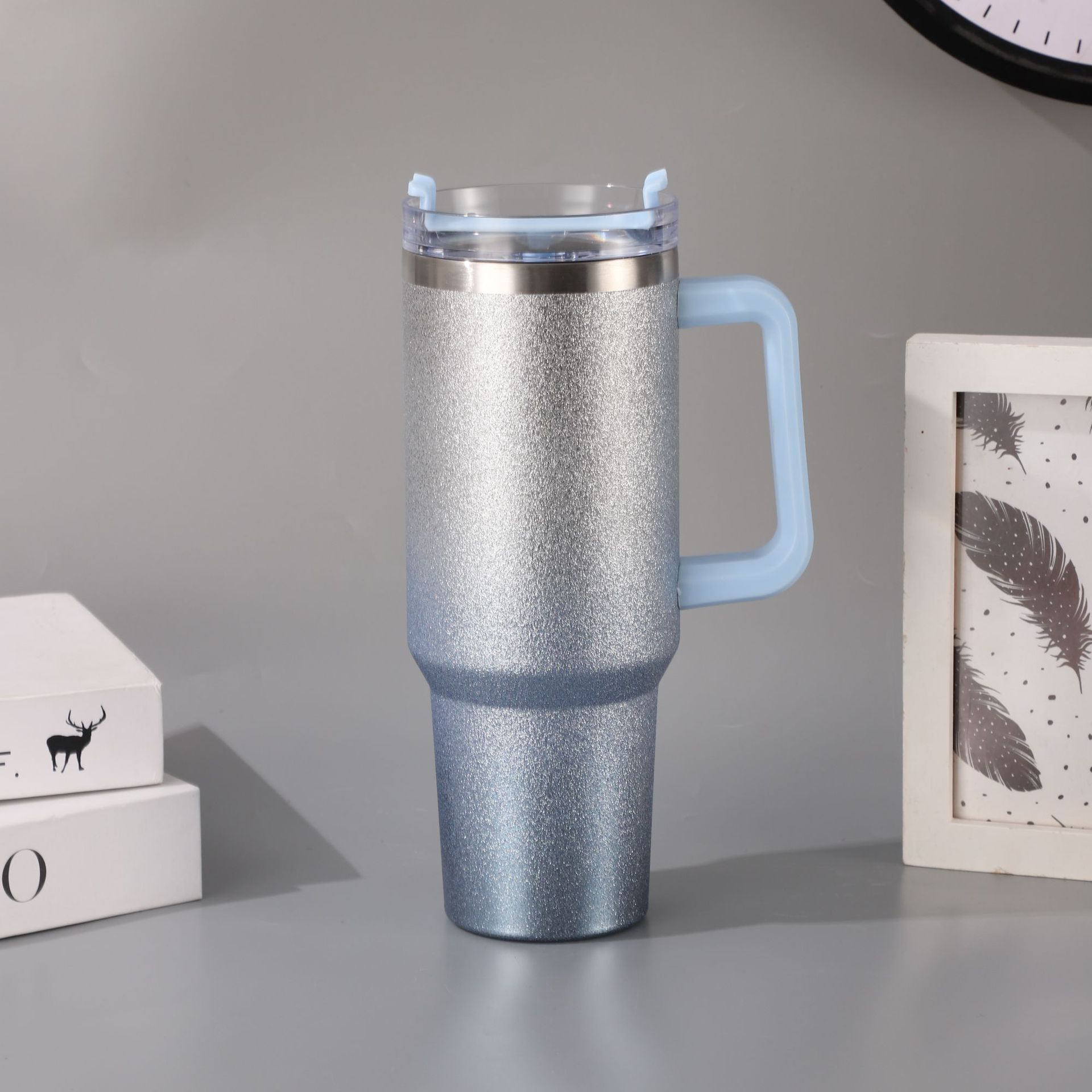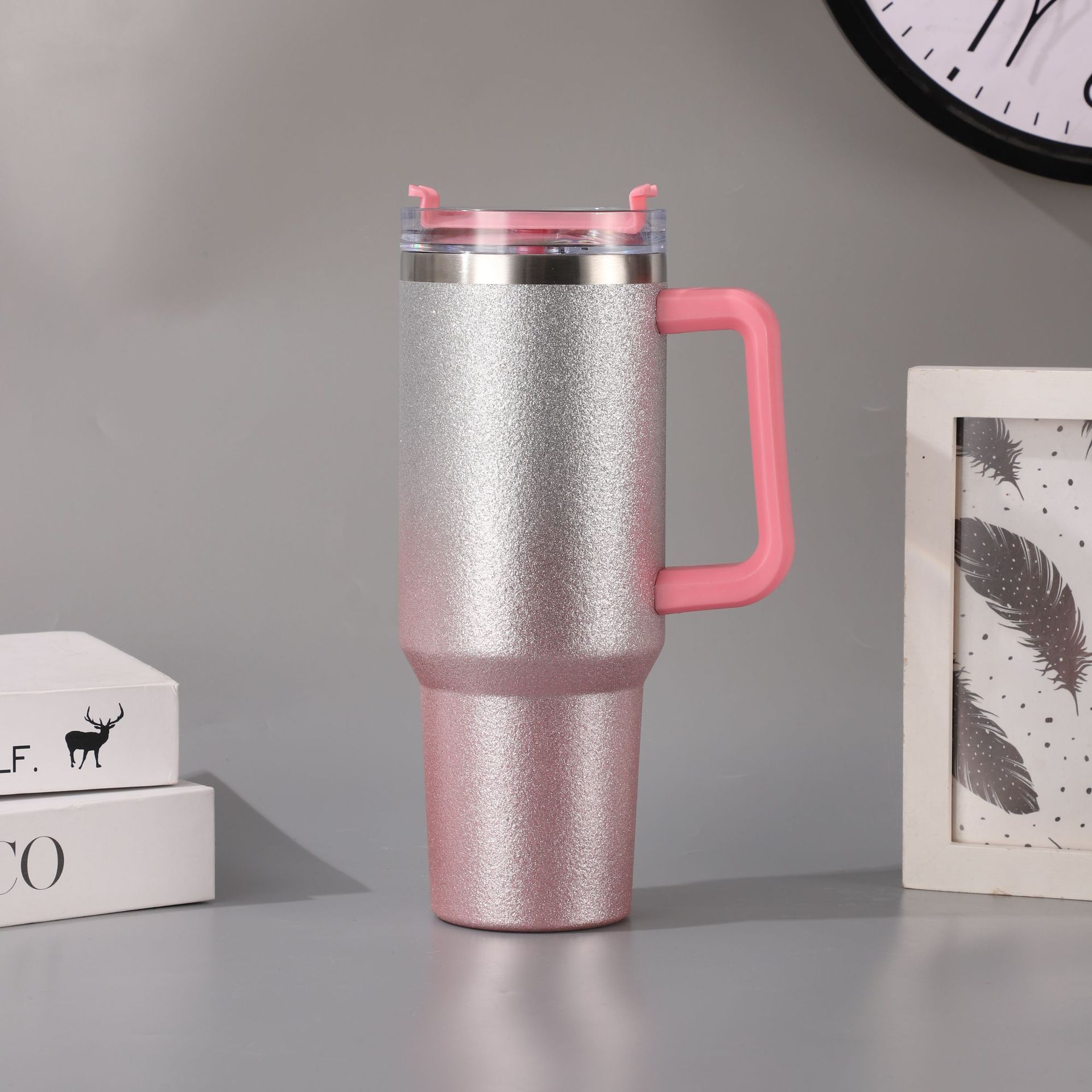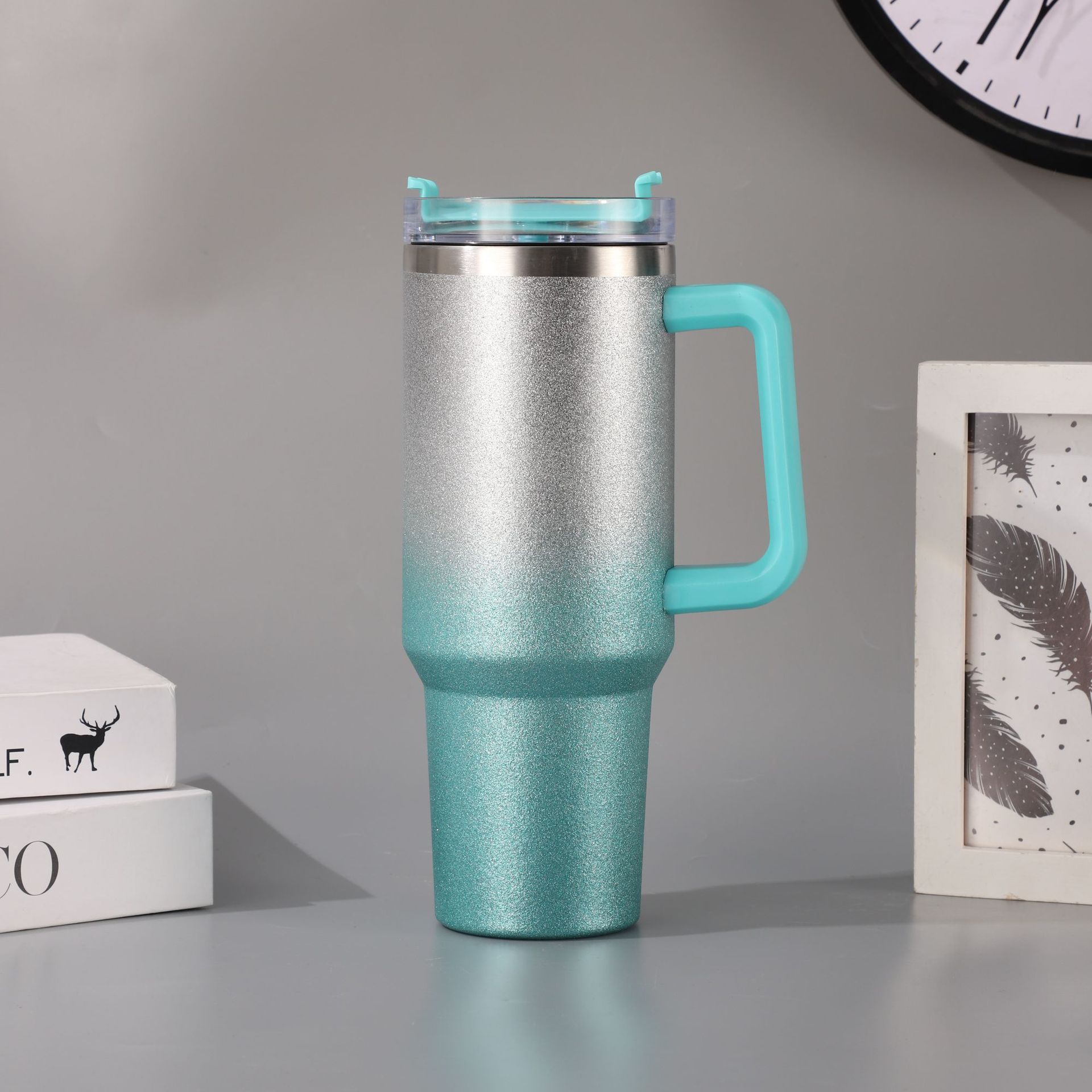 新款跨境304不锈钢40OZ汽车杯渐变钻石漆高颜值冰霸杯户外便携保