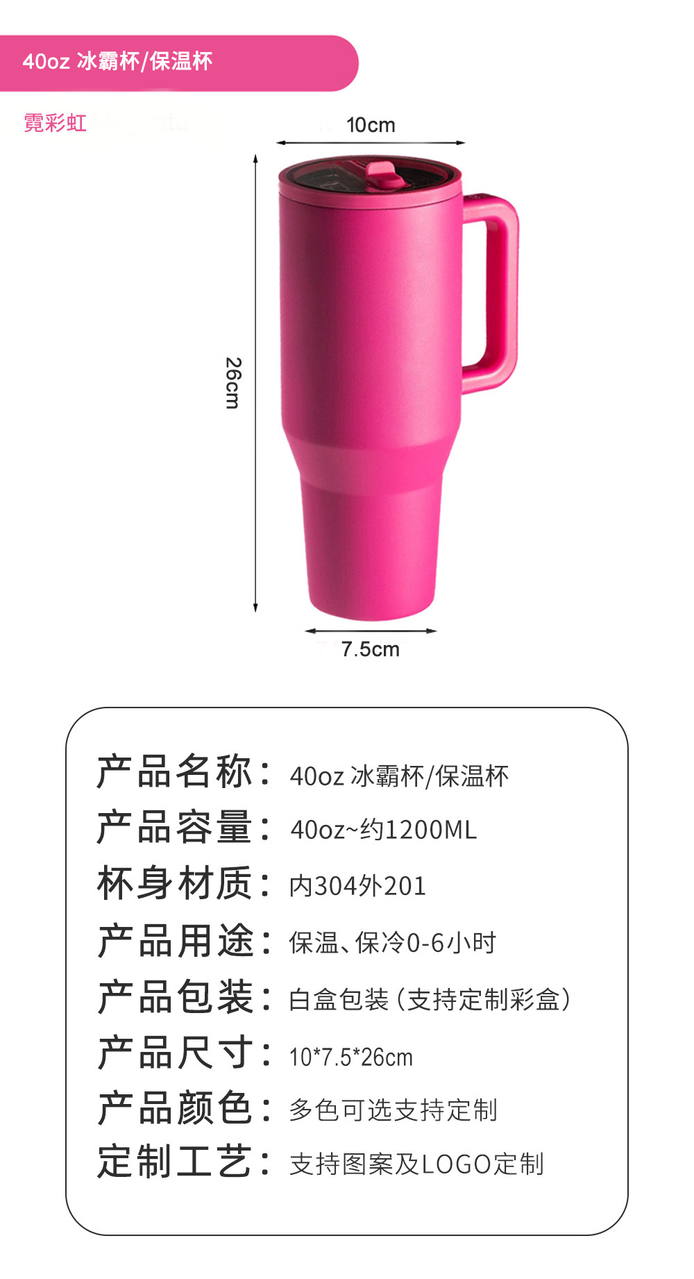 跨境大容量40oz手柄汽车杯304不锈钢保温杯户外带吸管保冷冰霸杯