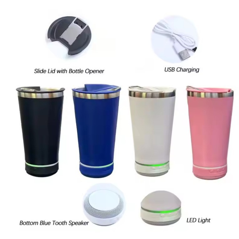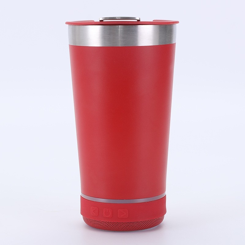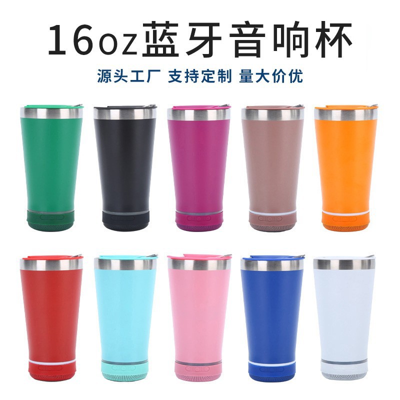跨境16oz蓝牙音响啤酒杯304不锈钢保温杯便携户外车载冰霸汽车杯