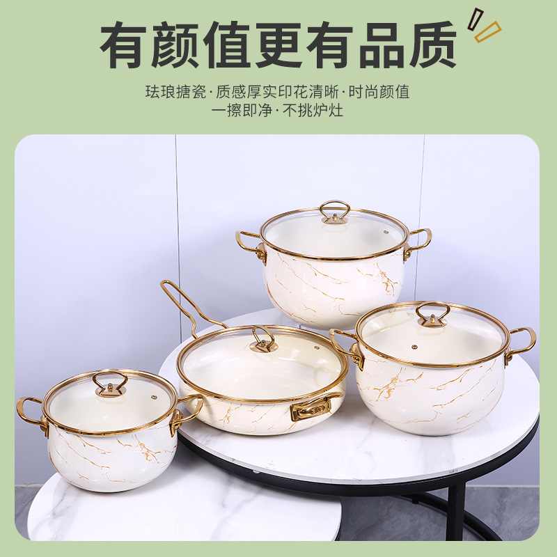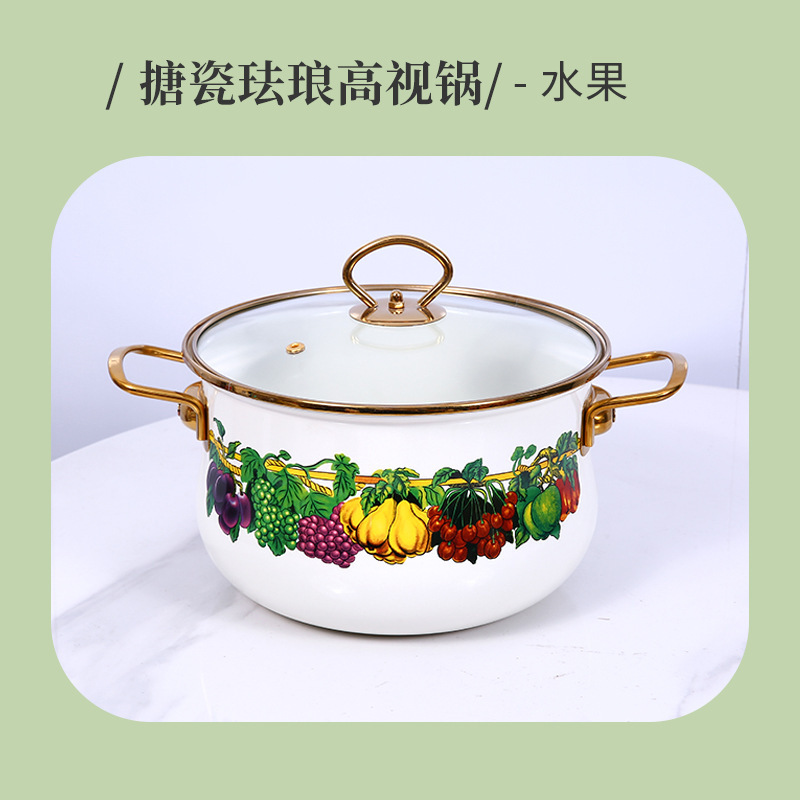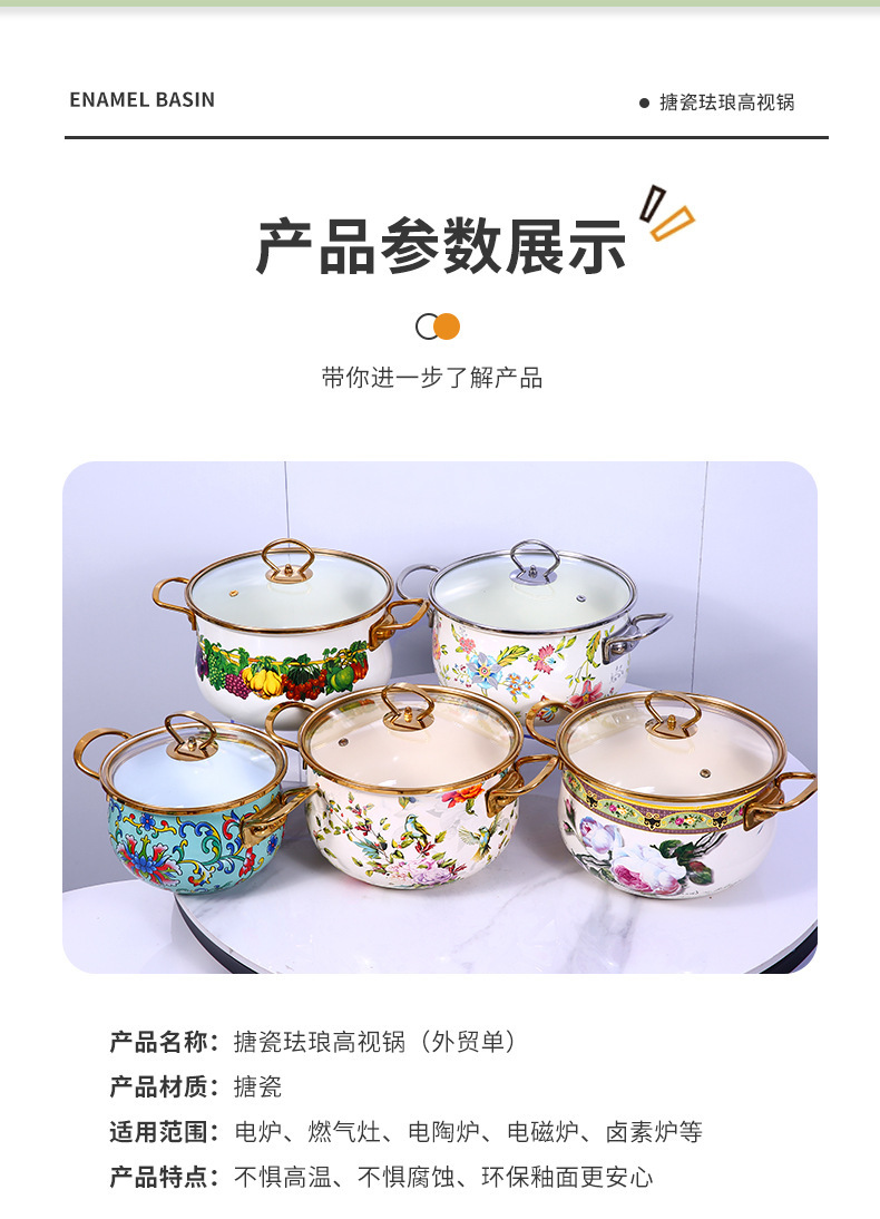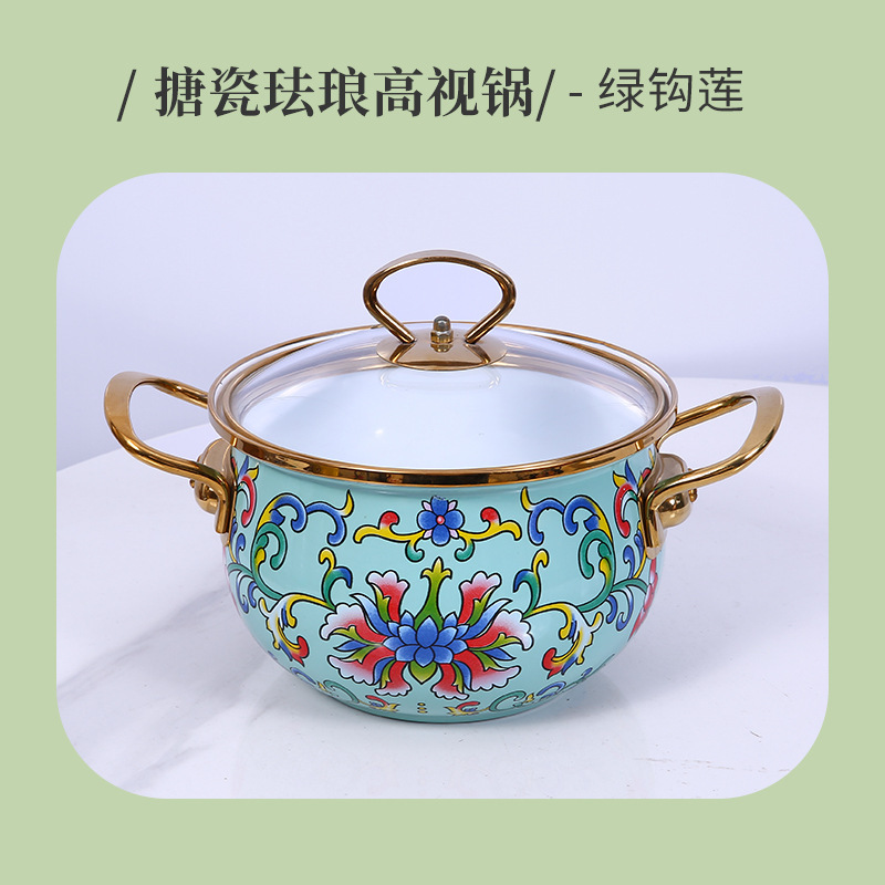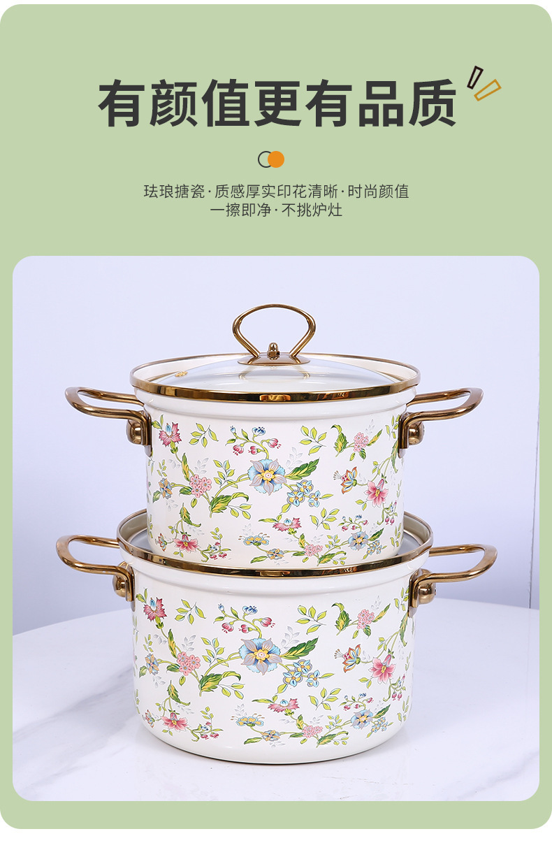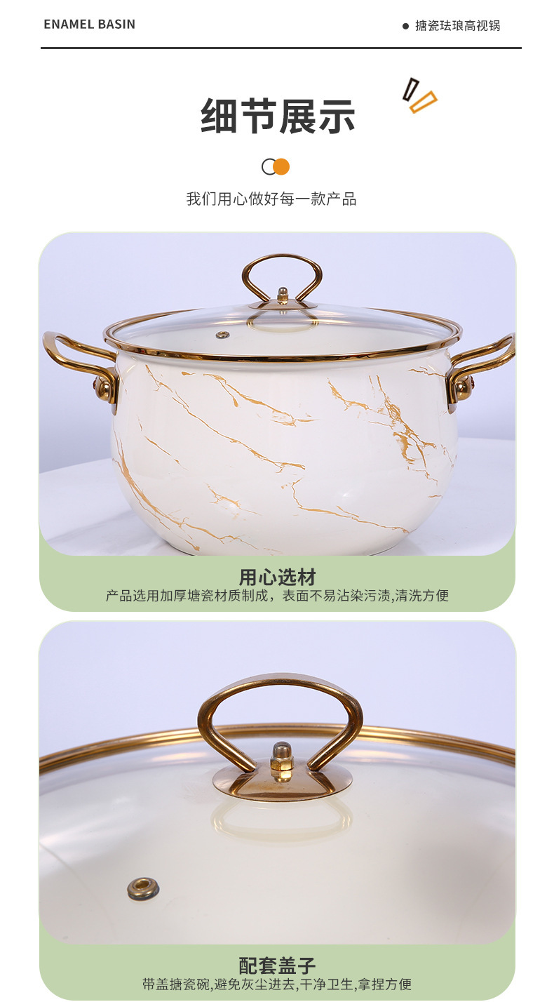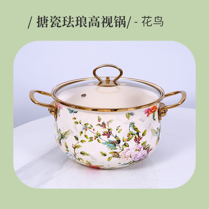 搪瓷珐琅高视锅外贸单加厚搪瓷炖汤煲金色双耳炖锅焖锅汤锅珐琅锅