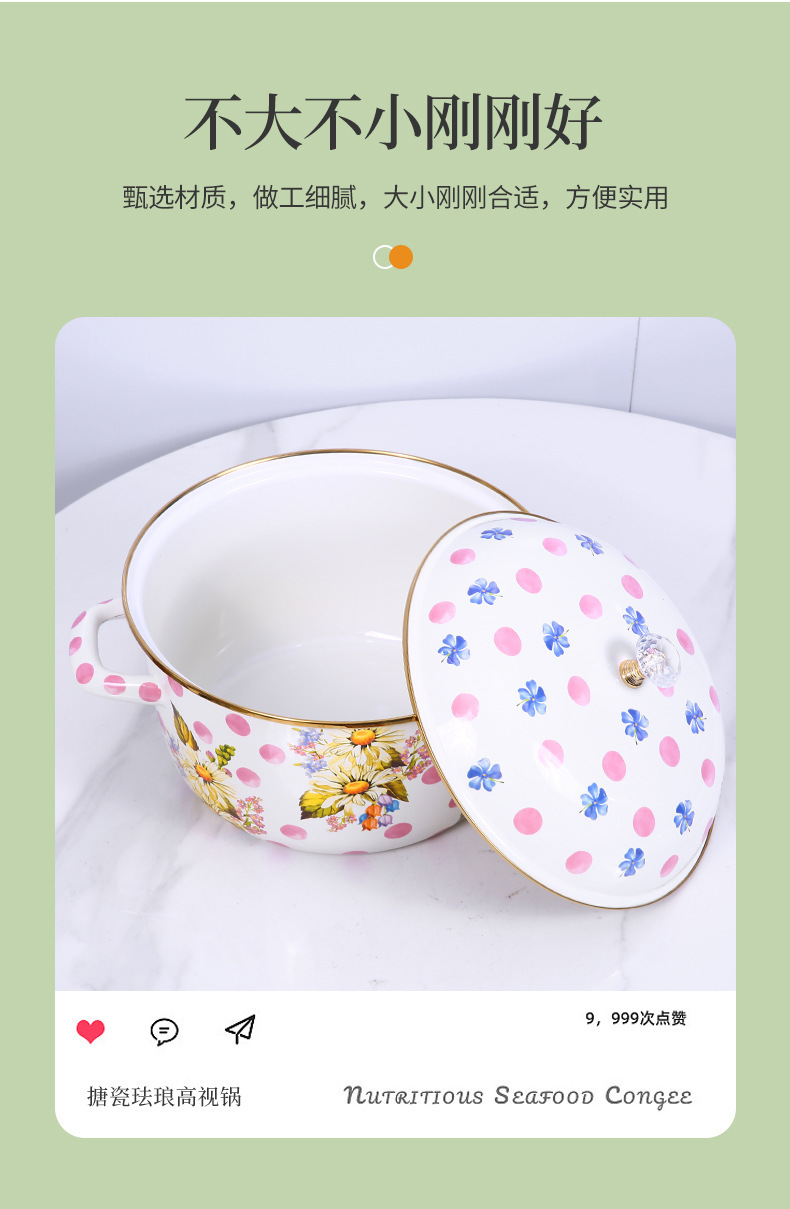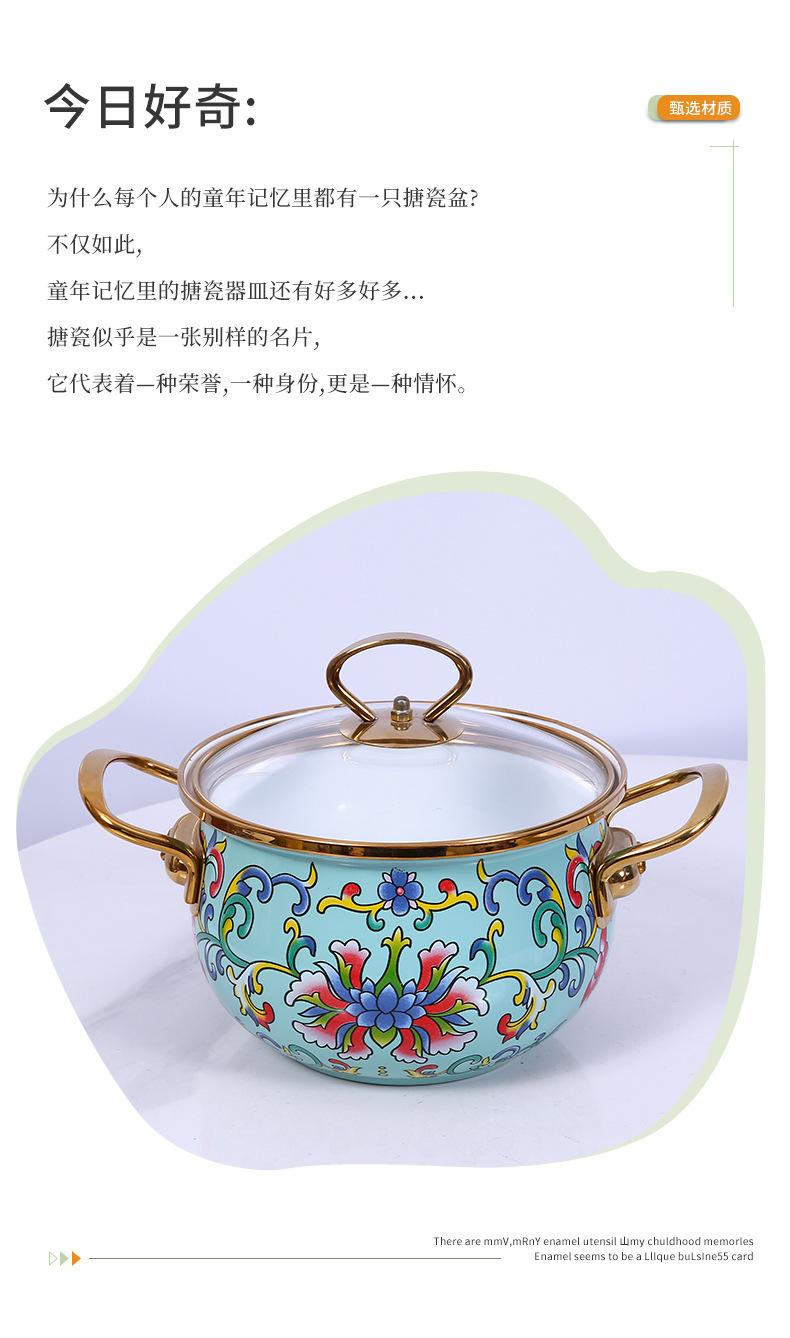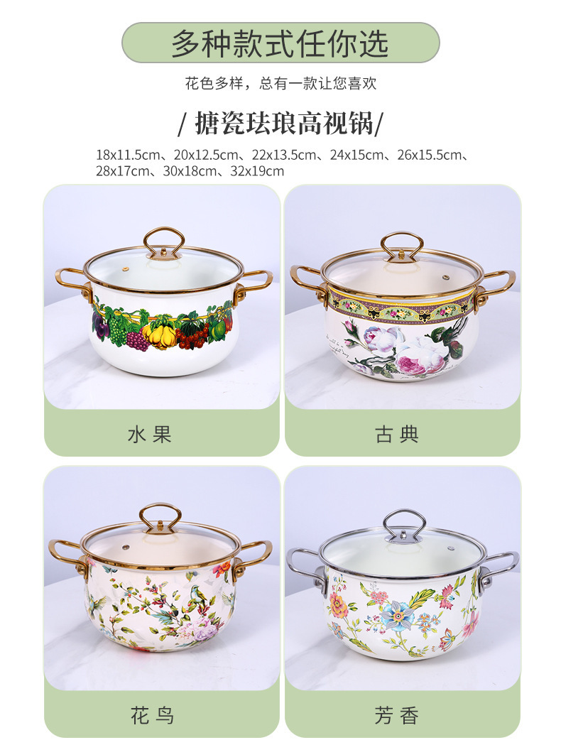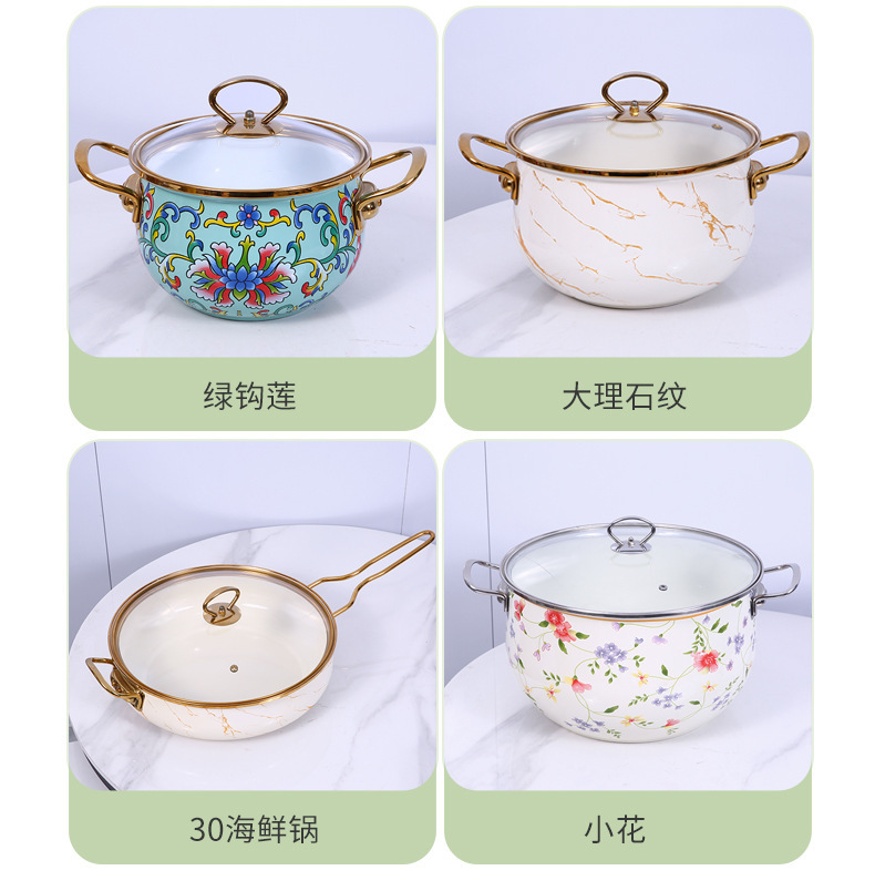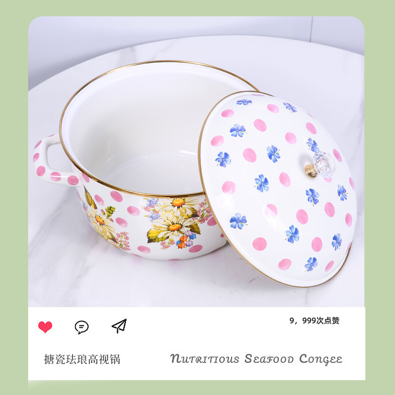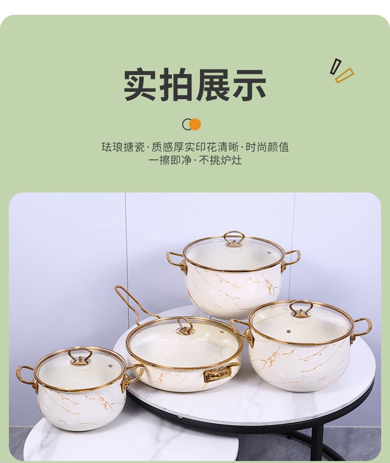 搪瓷珐琅高视锅外贸单加厚搪瓷炖汤煲金色双耳炖锅焖锅汤锅珐琅锅