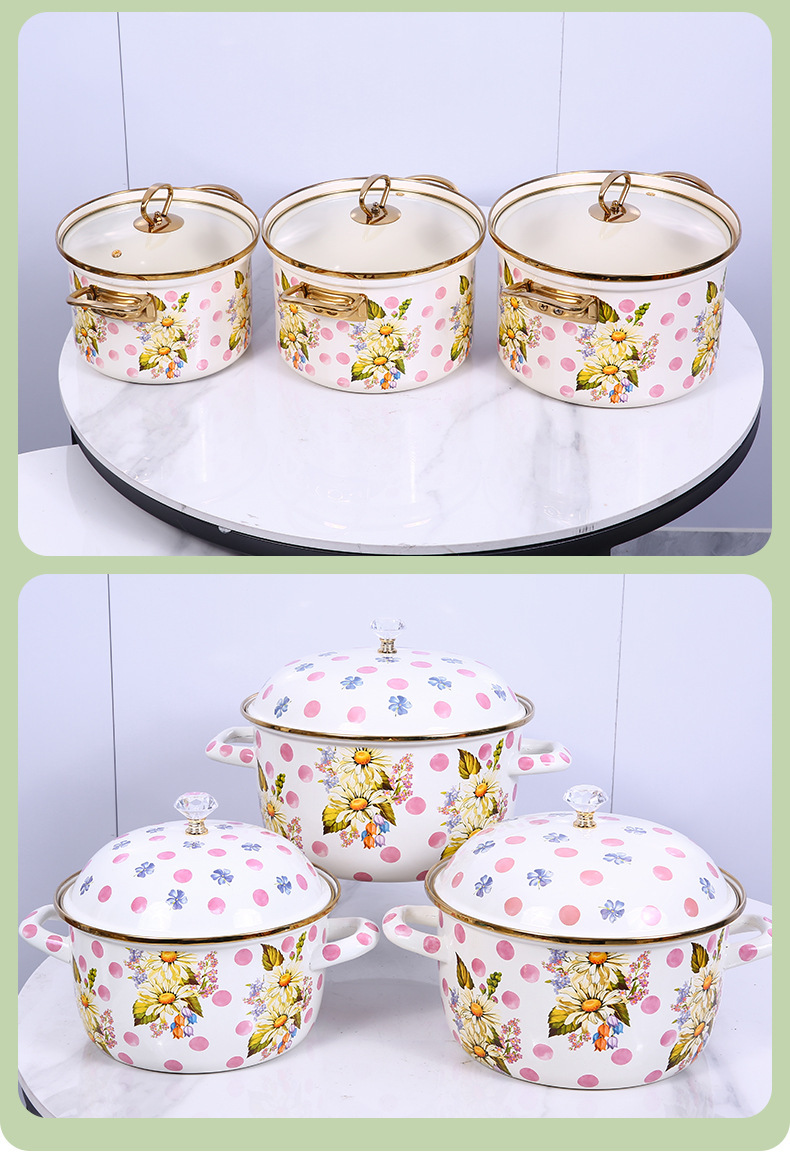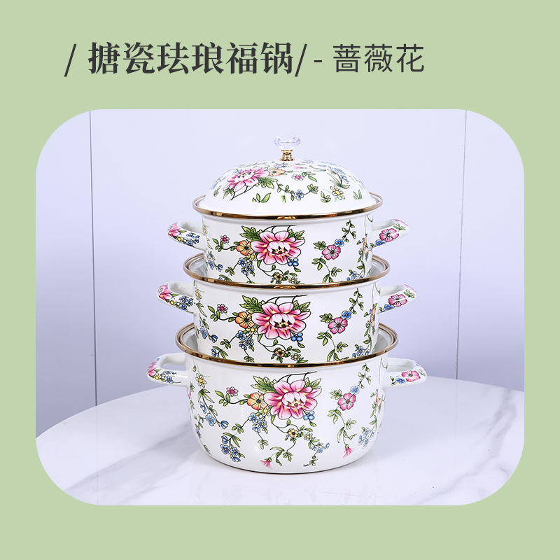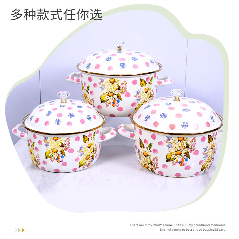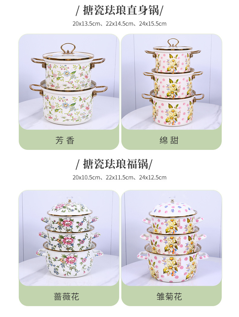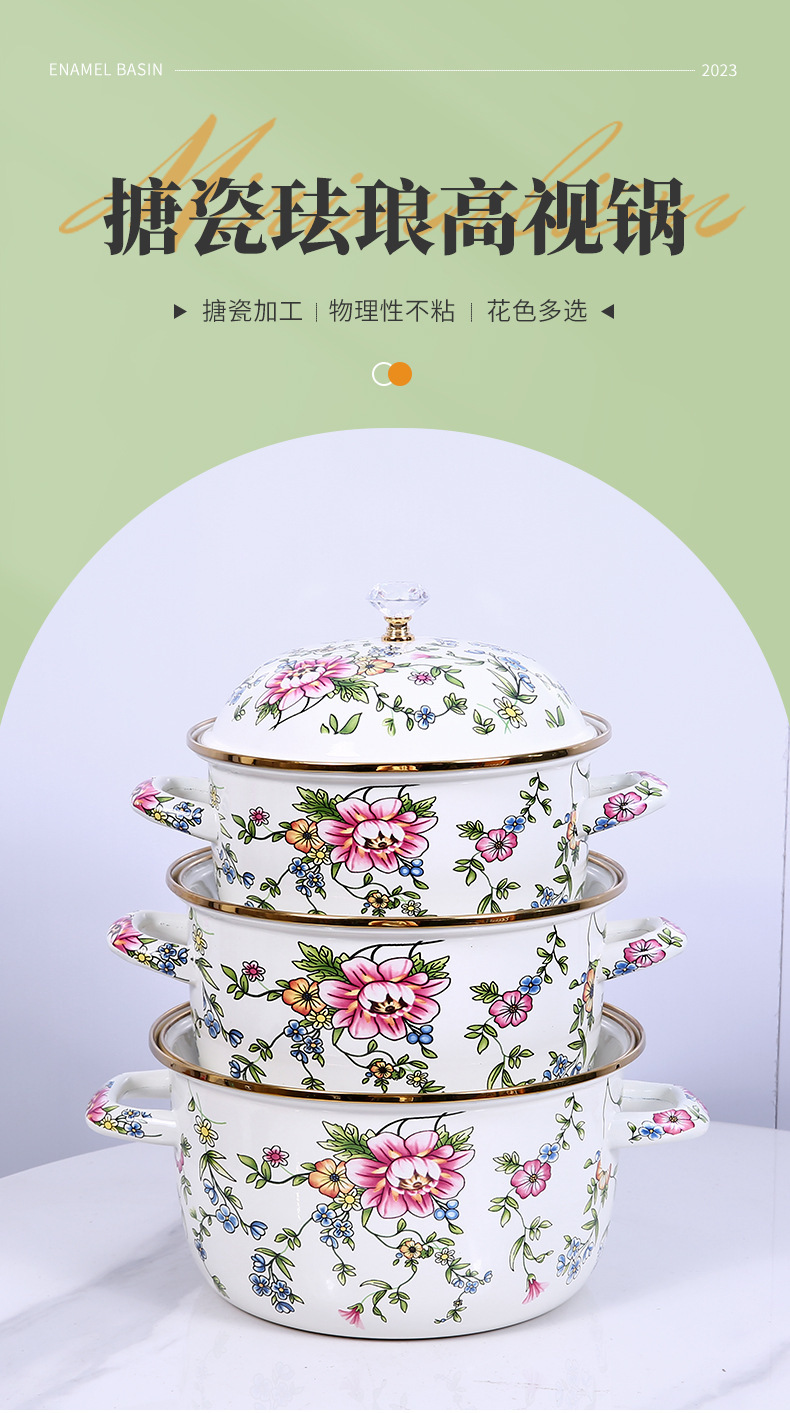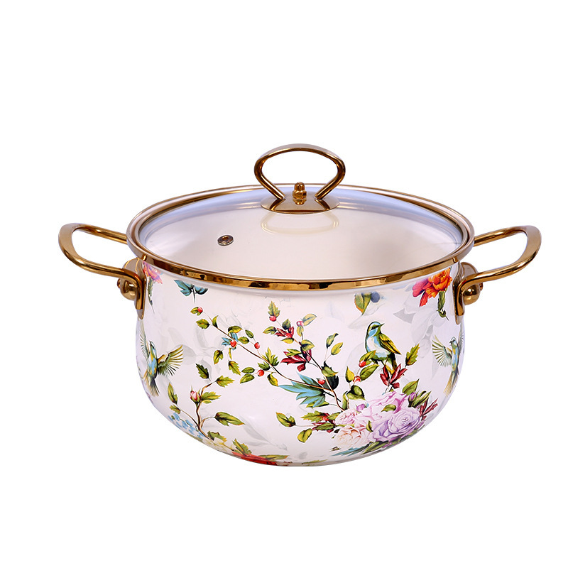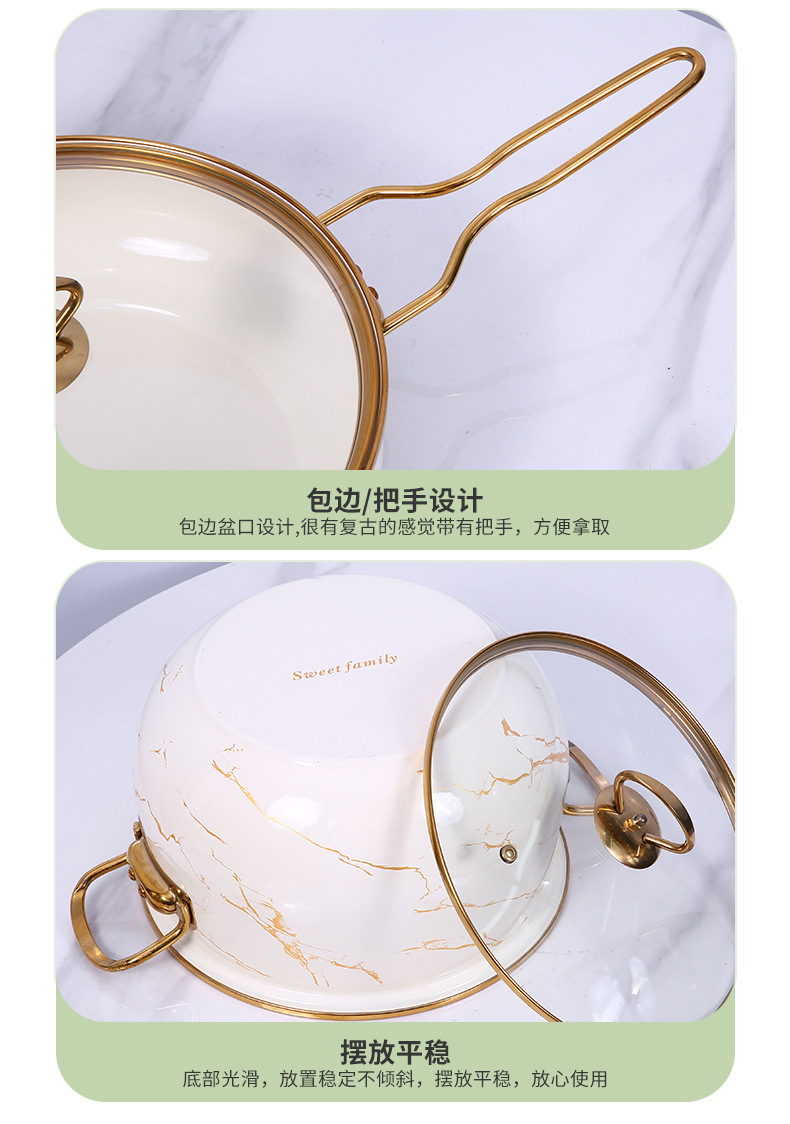 搪瓷珐琅高视锅外贸单加厚搪瓷炖汤煲金色双耳炖锅焖锅汤锅珐琅锅