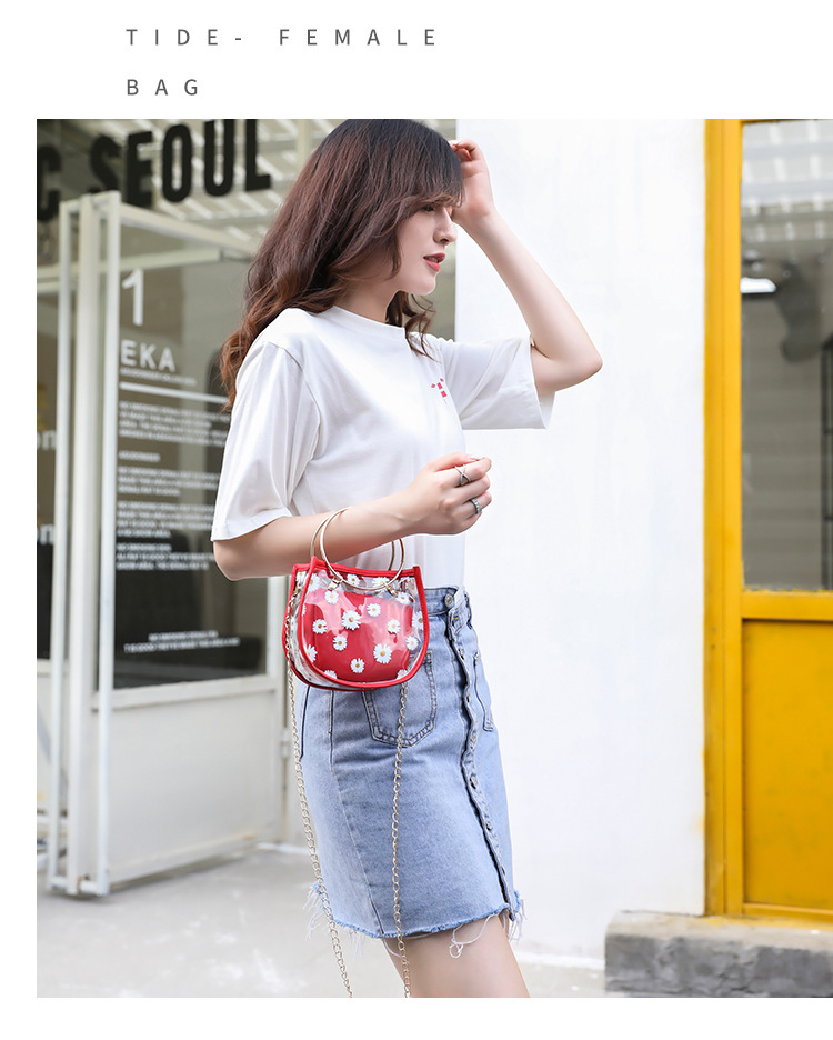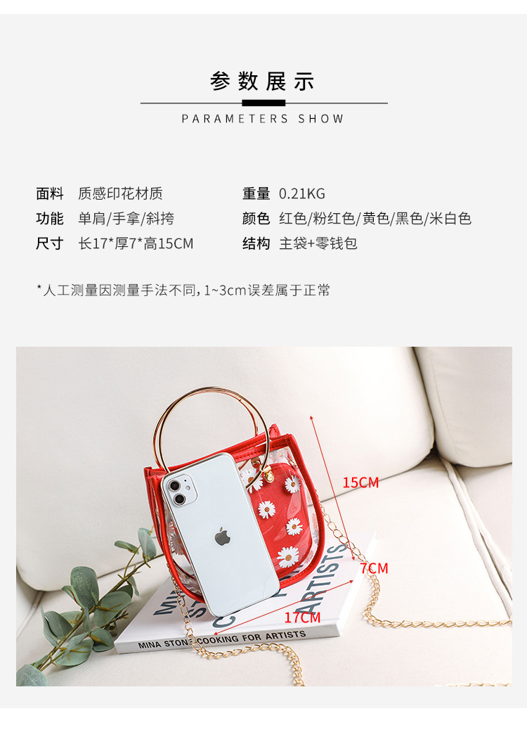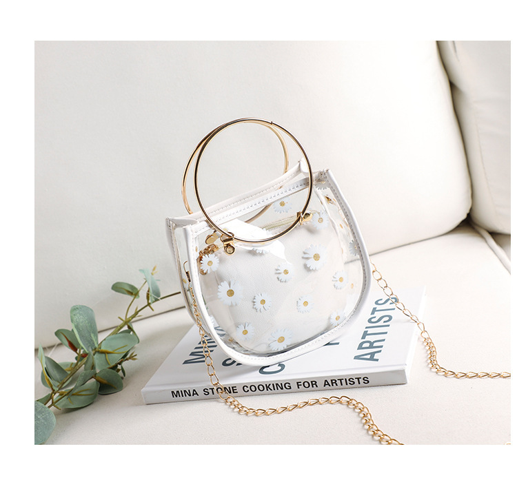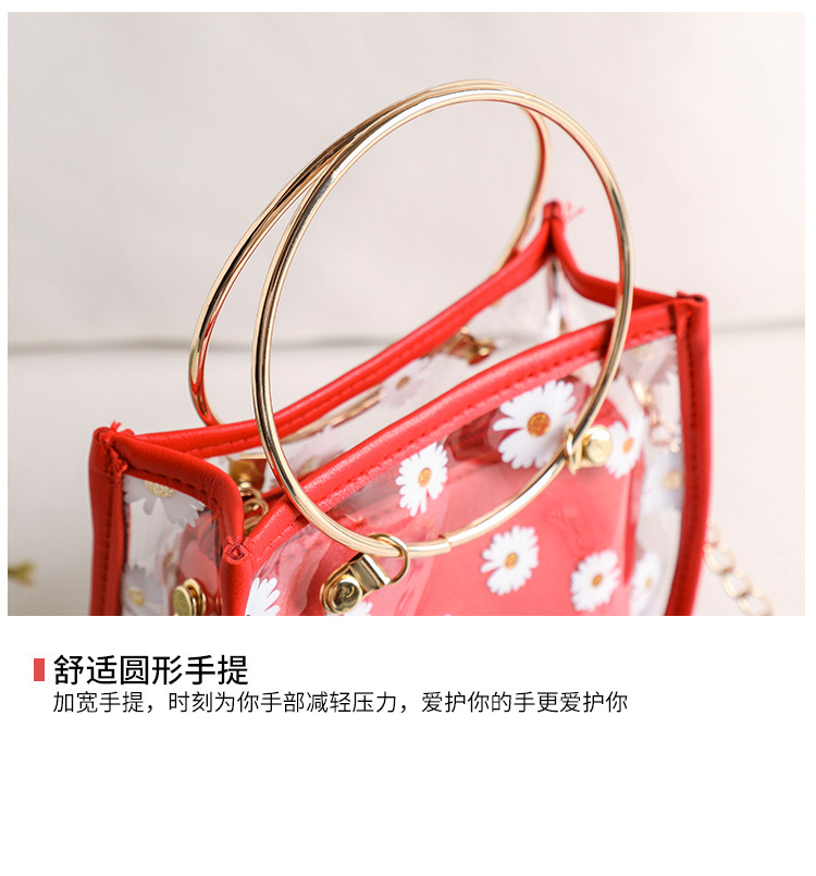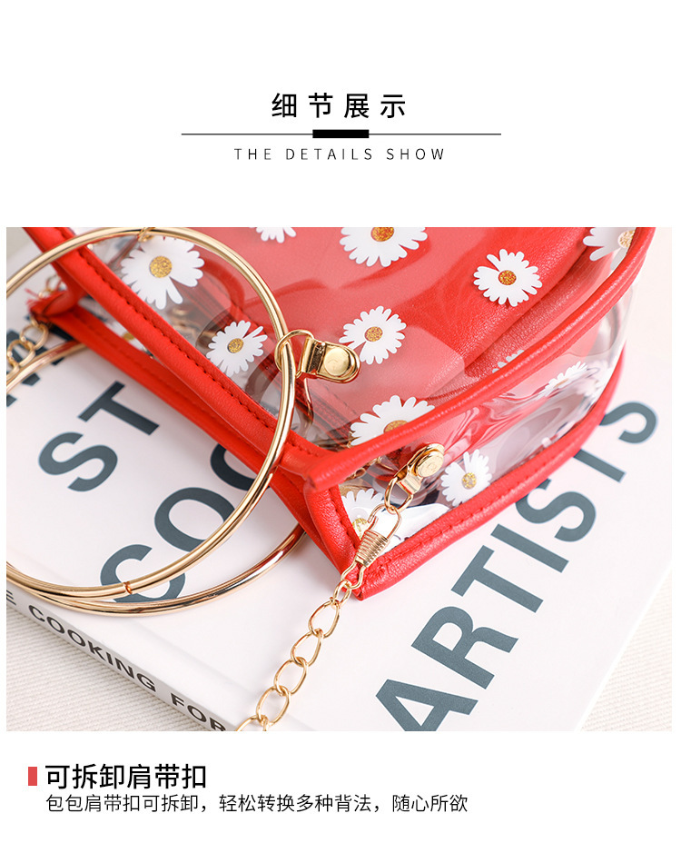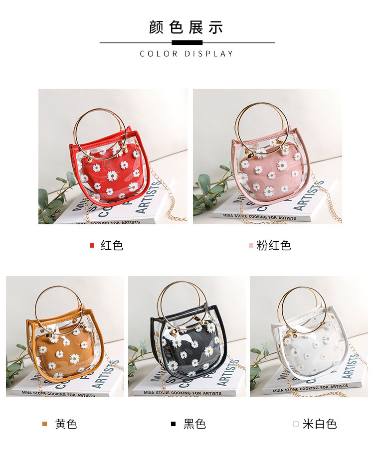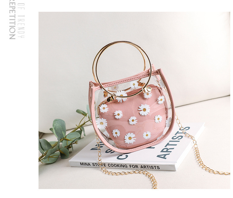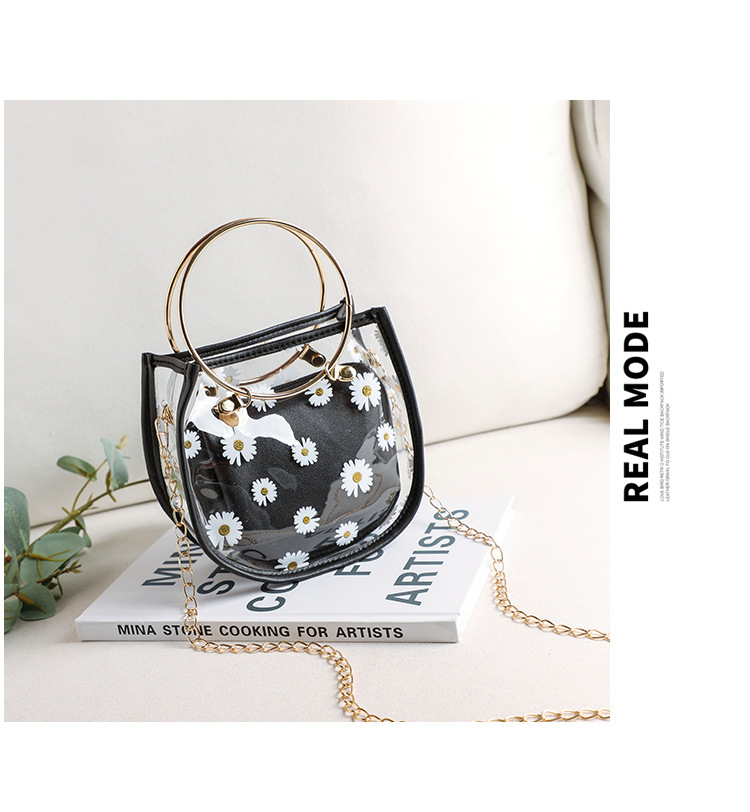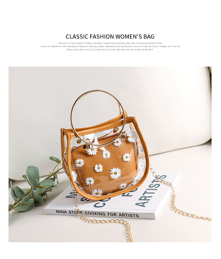 2024新款日韩版women handbags时尚休闲小菊花透明子母链条手提包