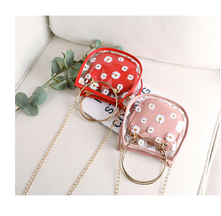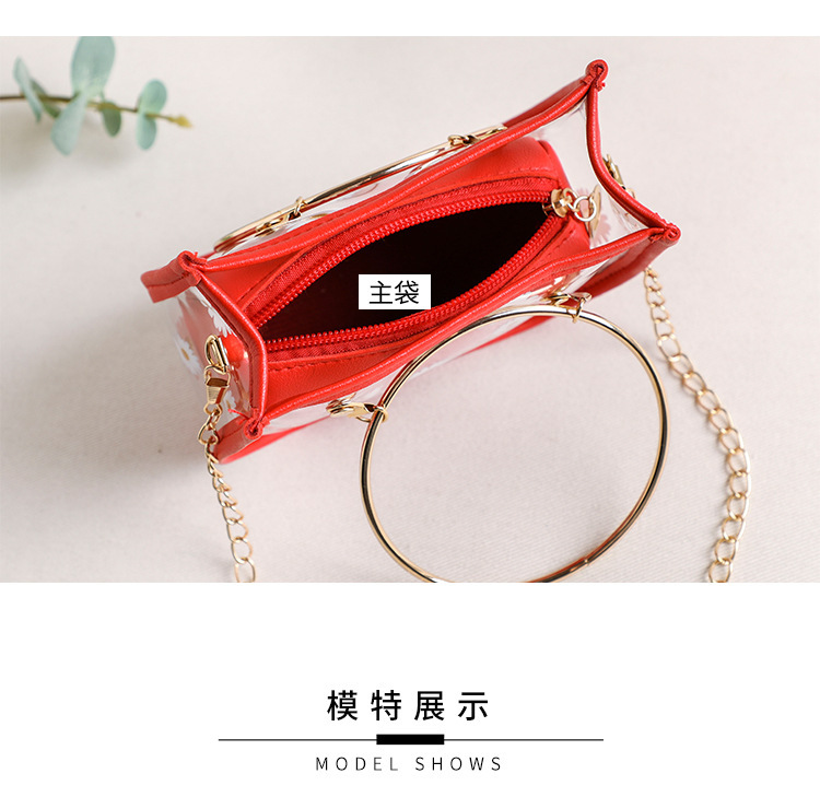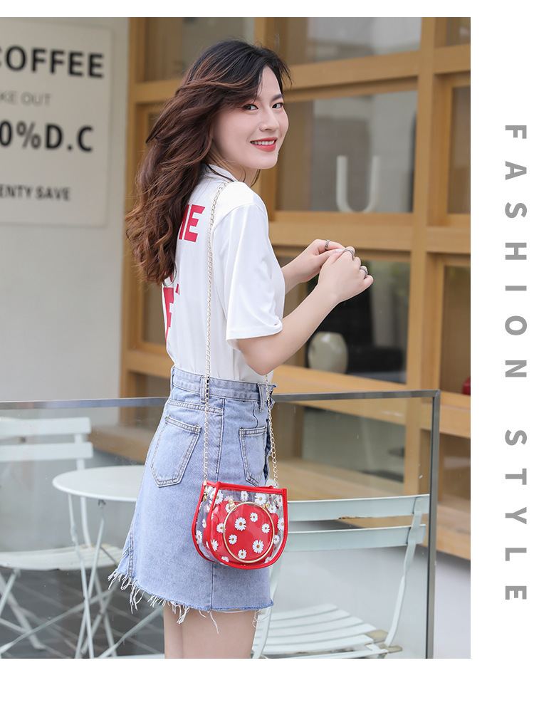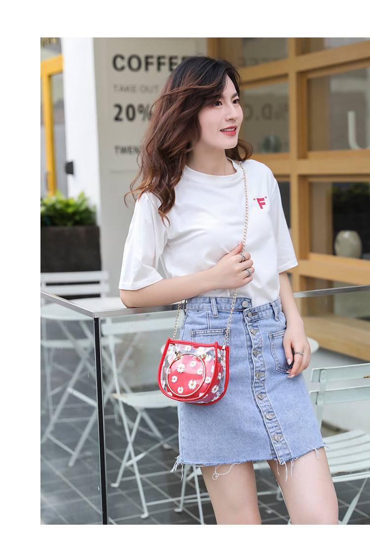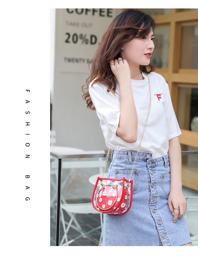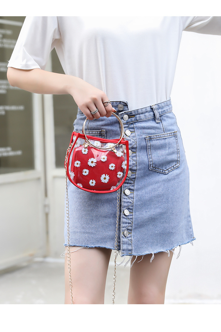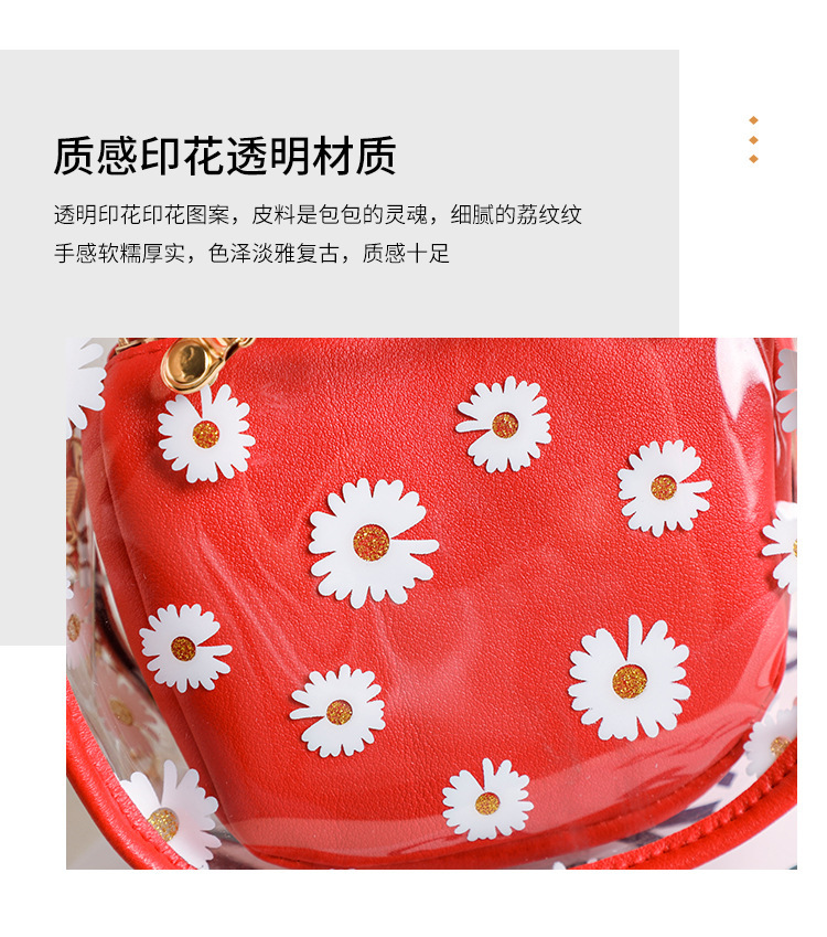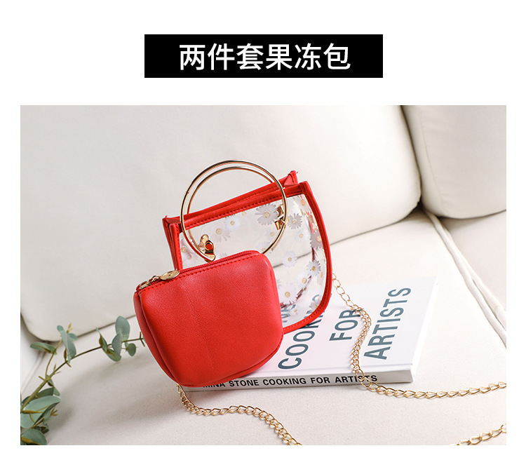 2024新款日韩版women handbags时尚休闲小菊花透明子母链条手提包