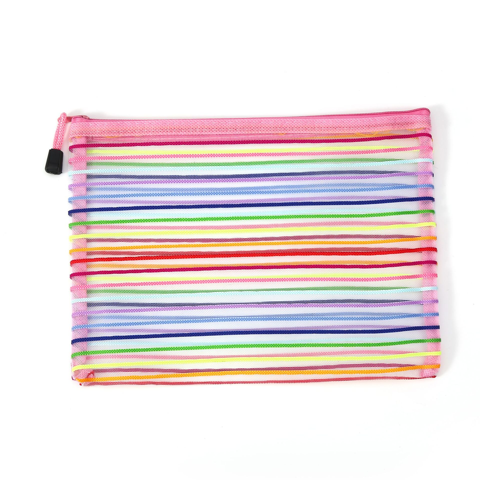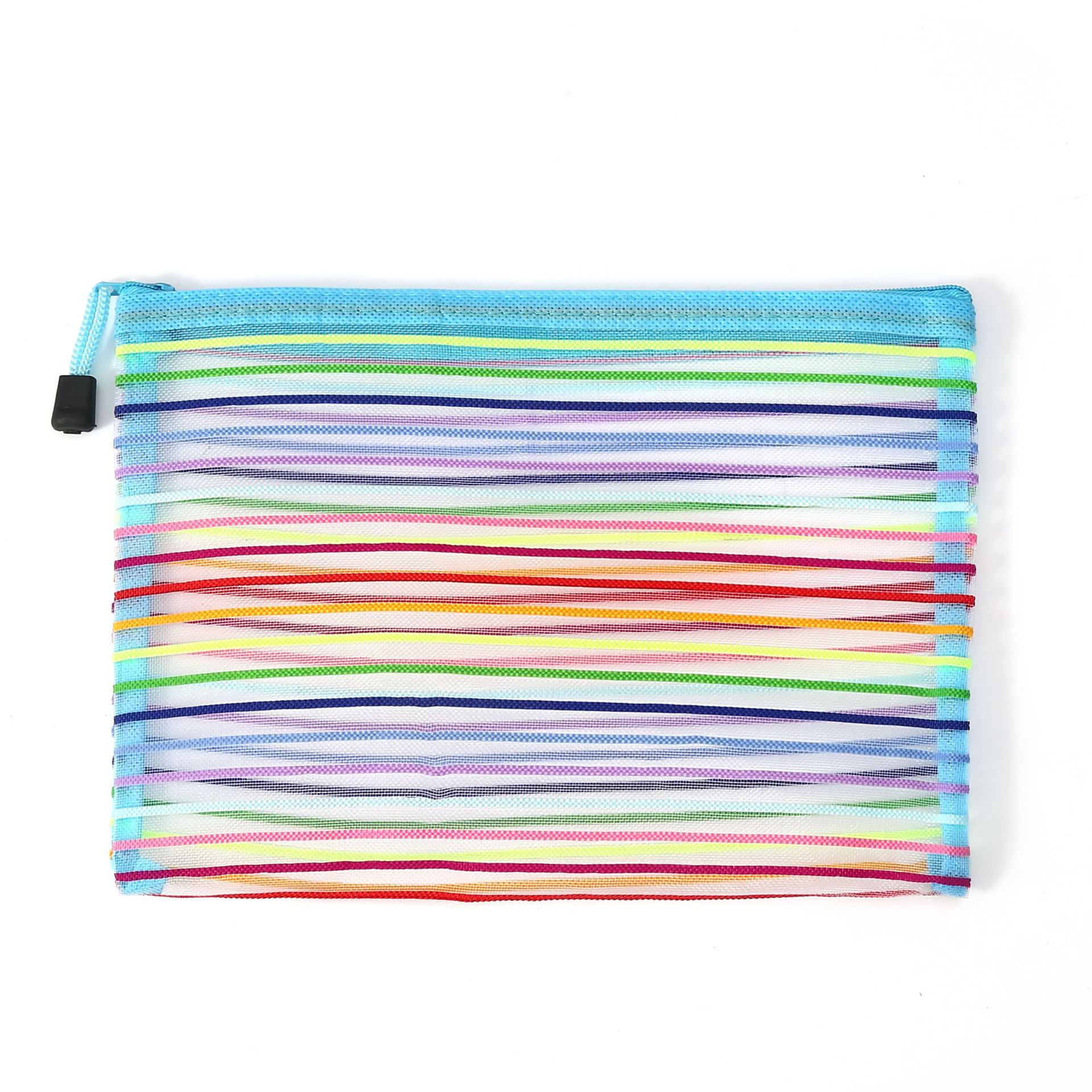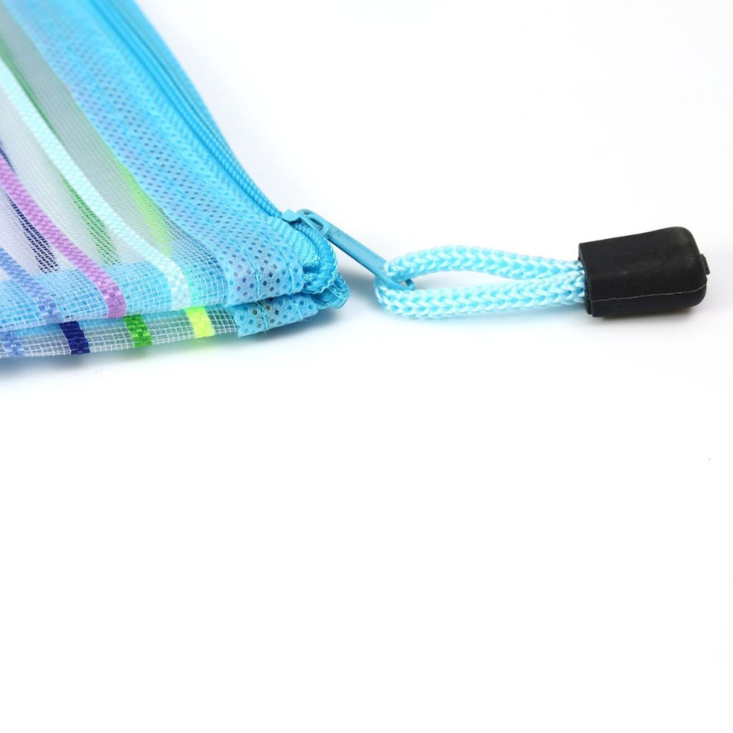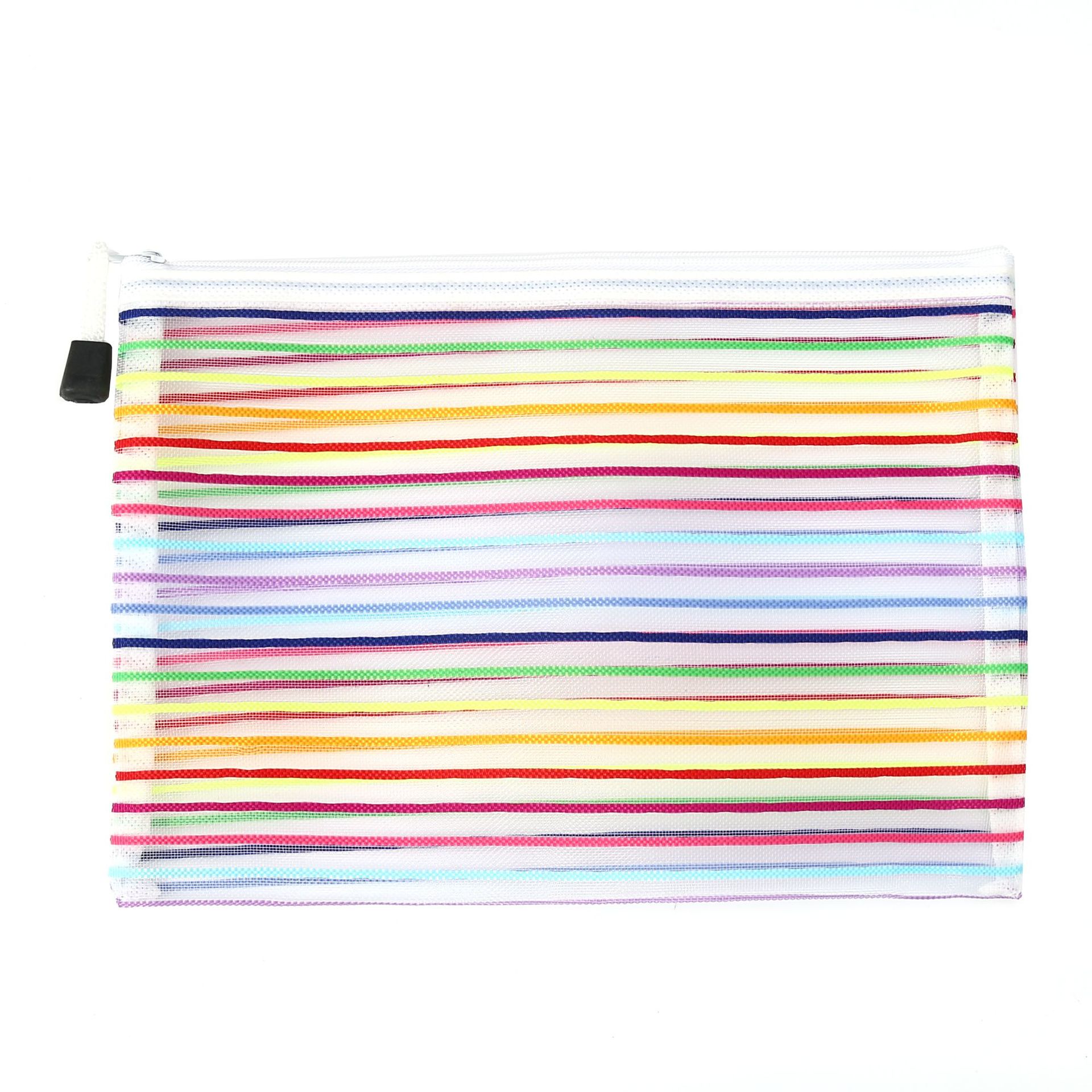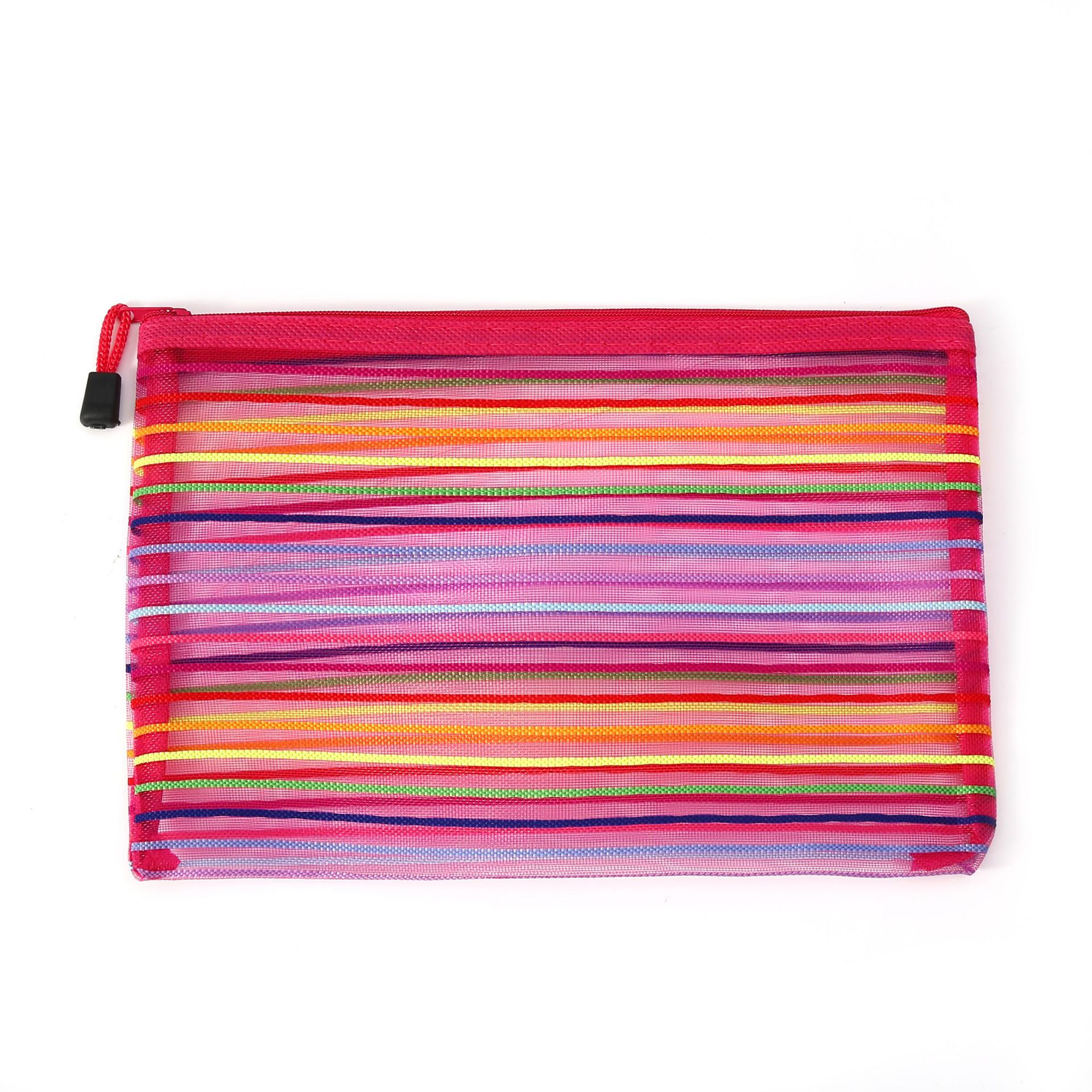 外贸玩具收纳袋试卷袋尼龙文件袋化妆网纱拉链笔袋十色七彩虹