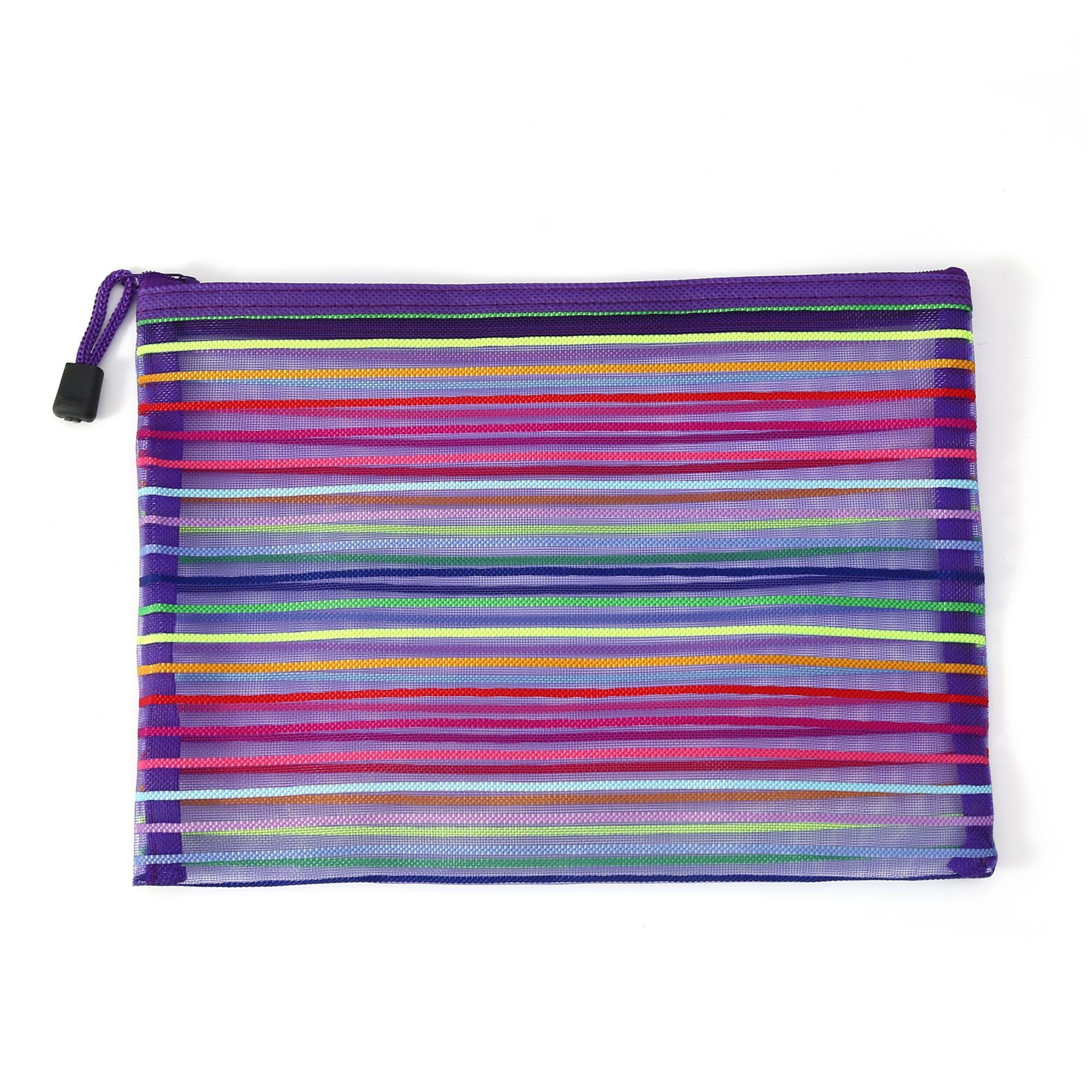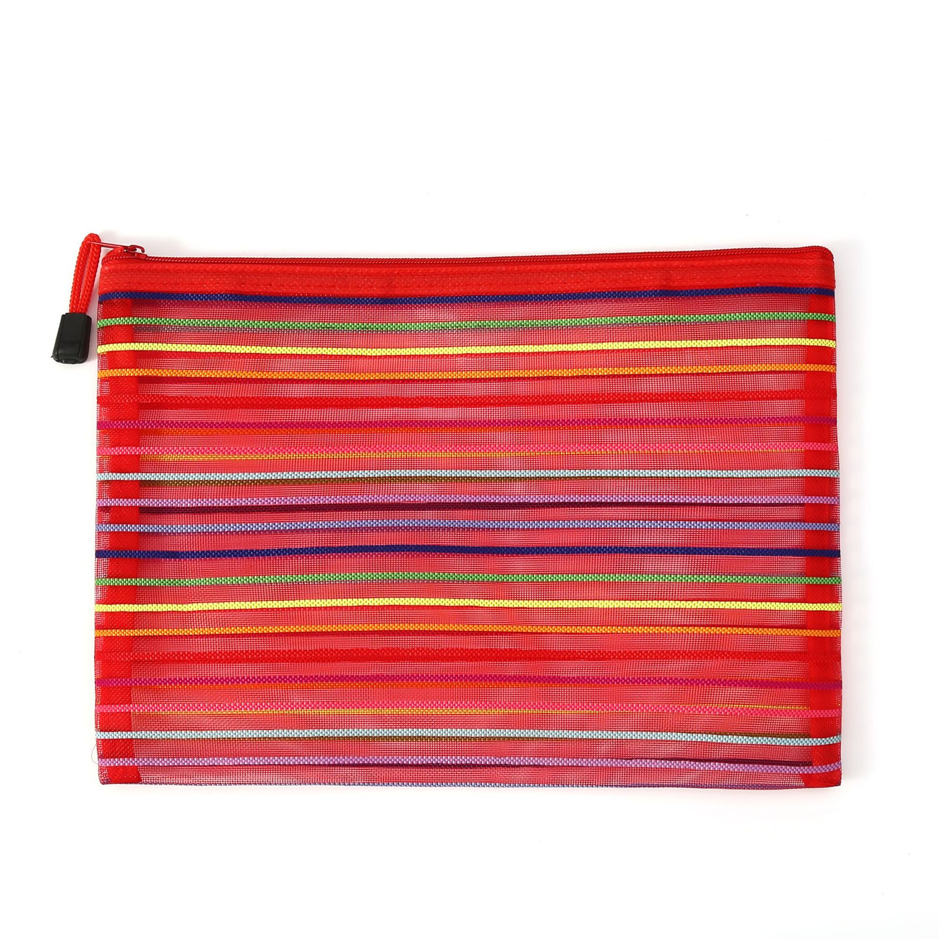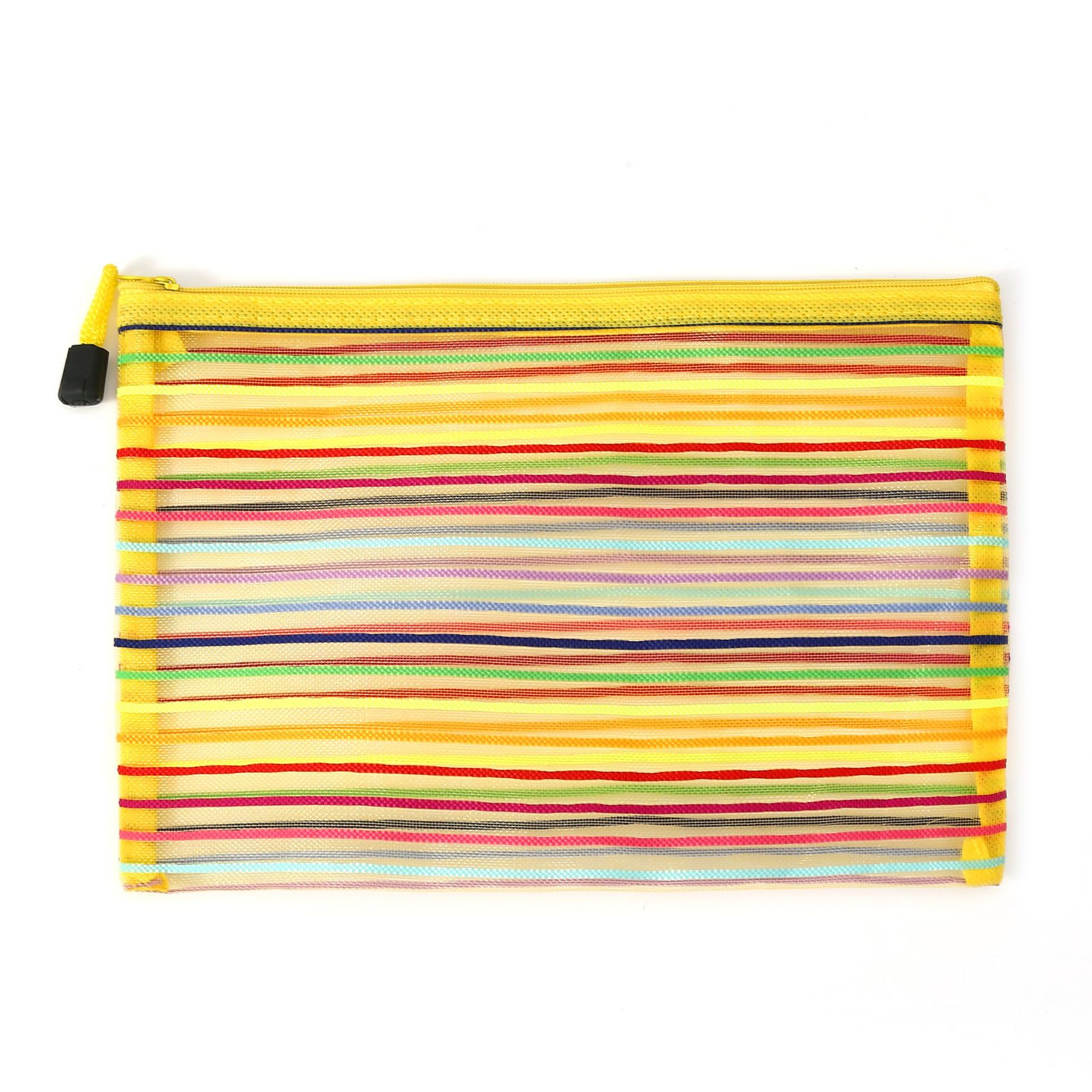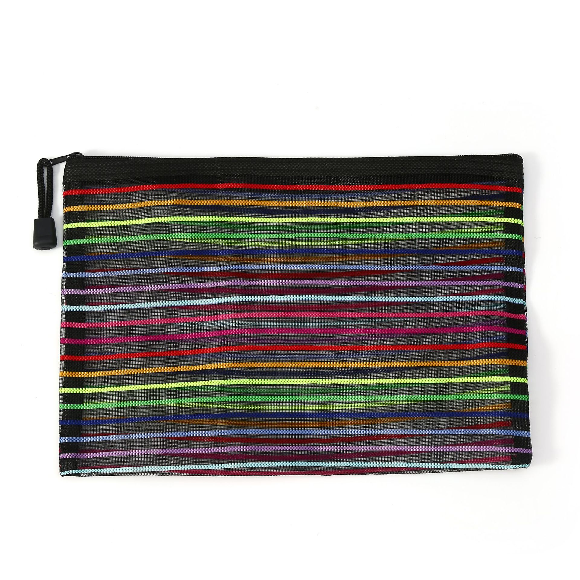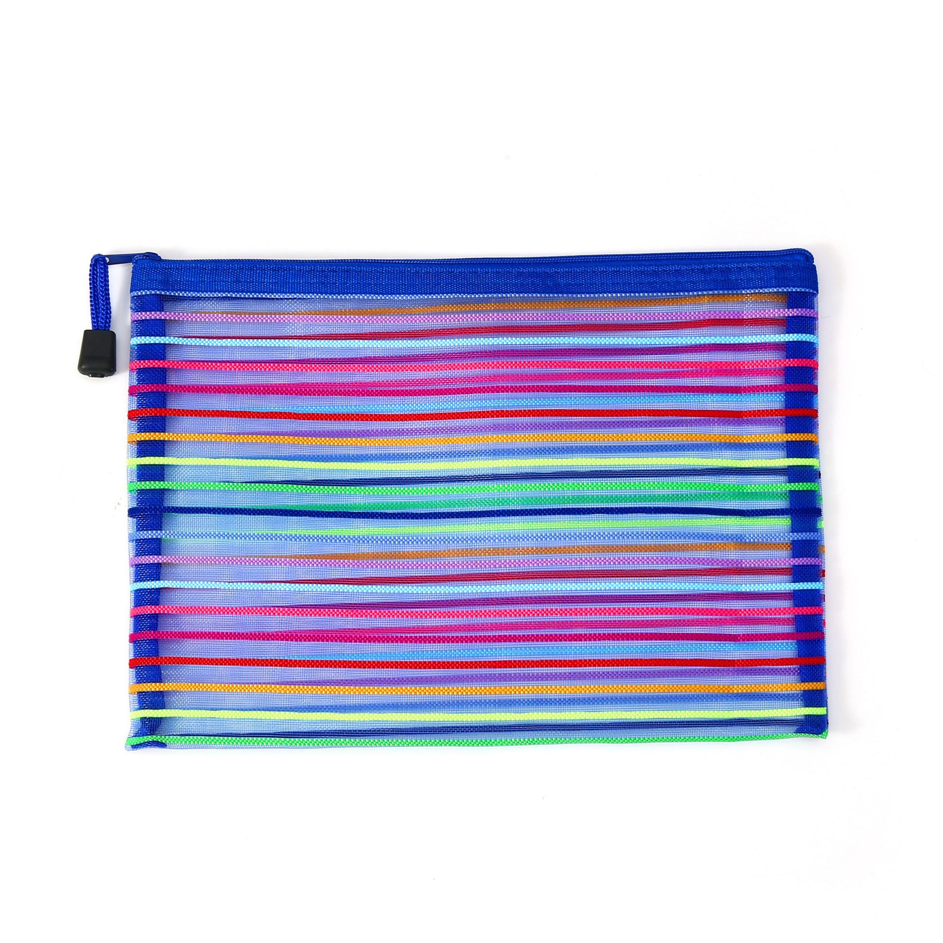 外贸玩具收纳袋试卷袋尼龙文件袋化妆网纱拉链笔袋十色七彩虹