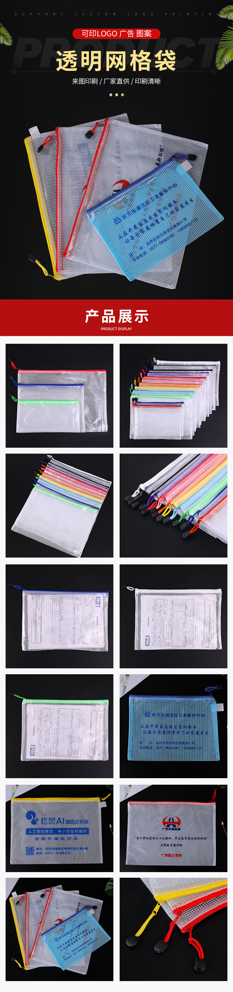 透明网格拉链文件袋票据袋A4/B4/A5/B5/A6资料收纳袋可印LOGO