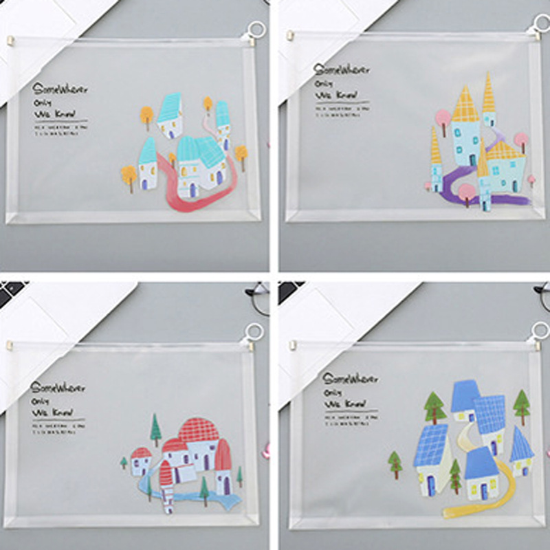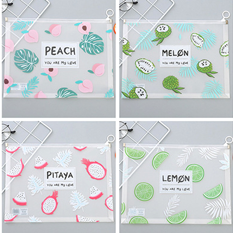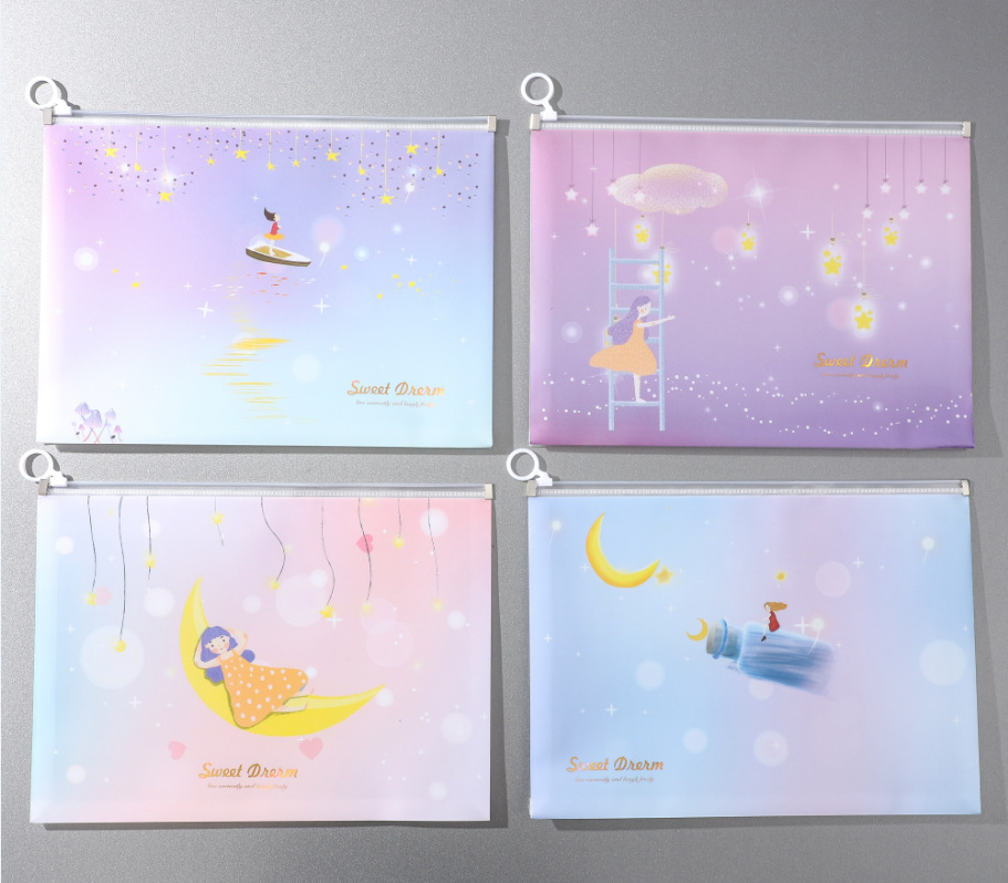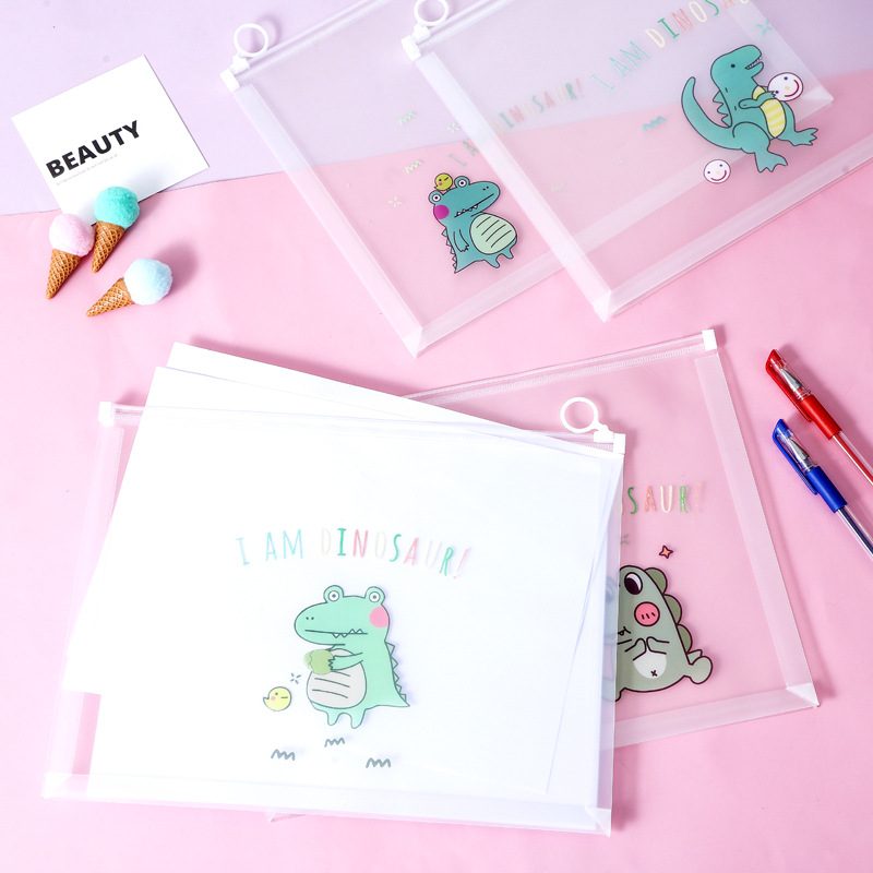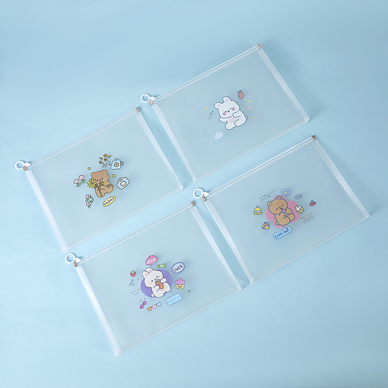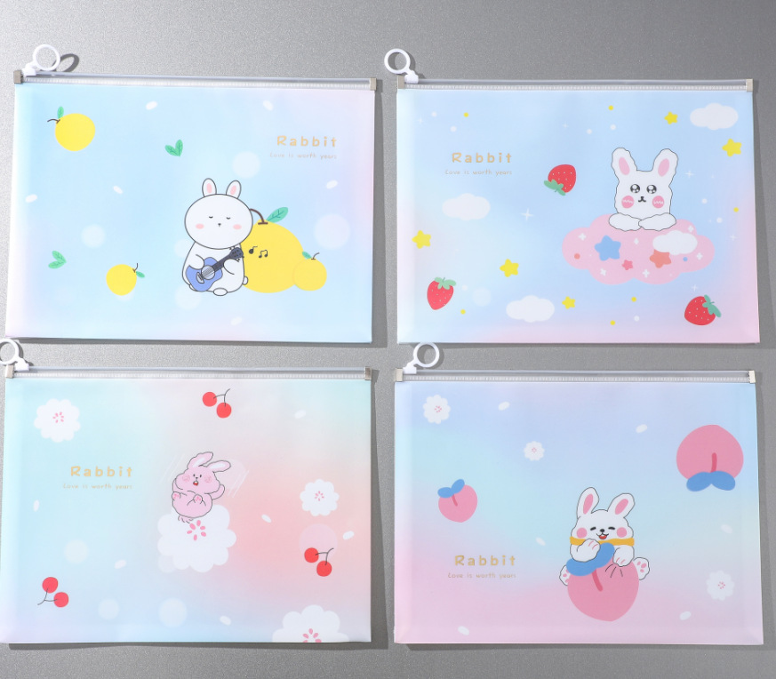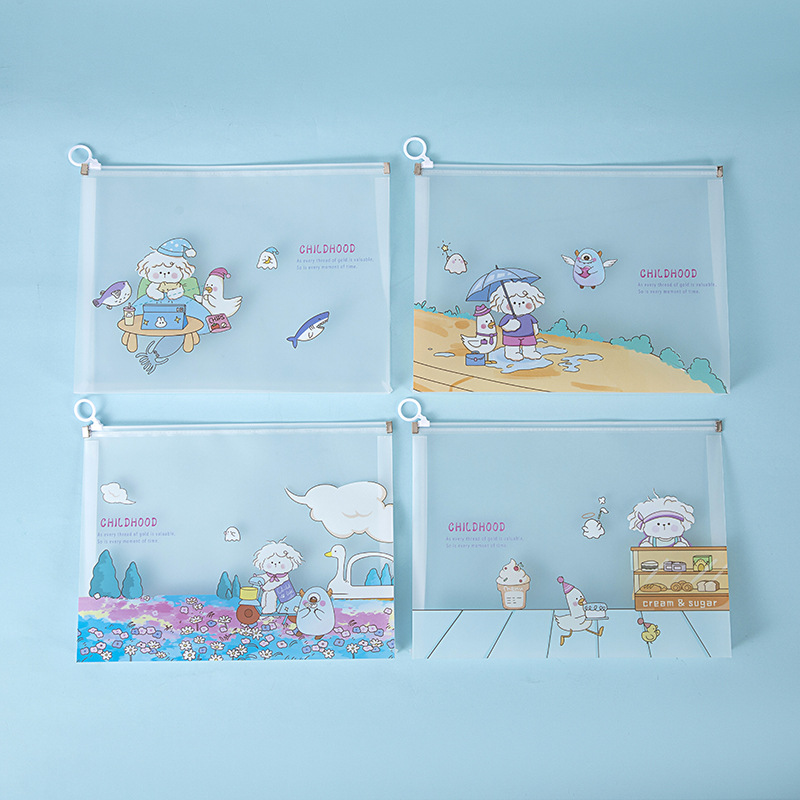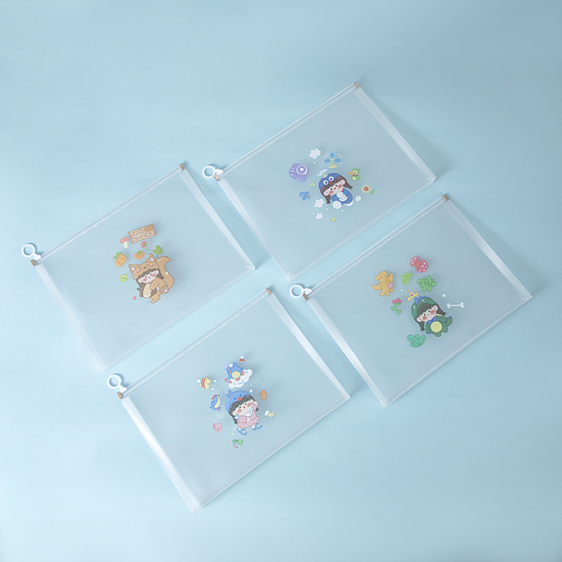透明a4文件袋资料袋塑料pp学生试卷收纳袋可爱卡通图案拉链袋批发