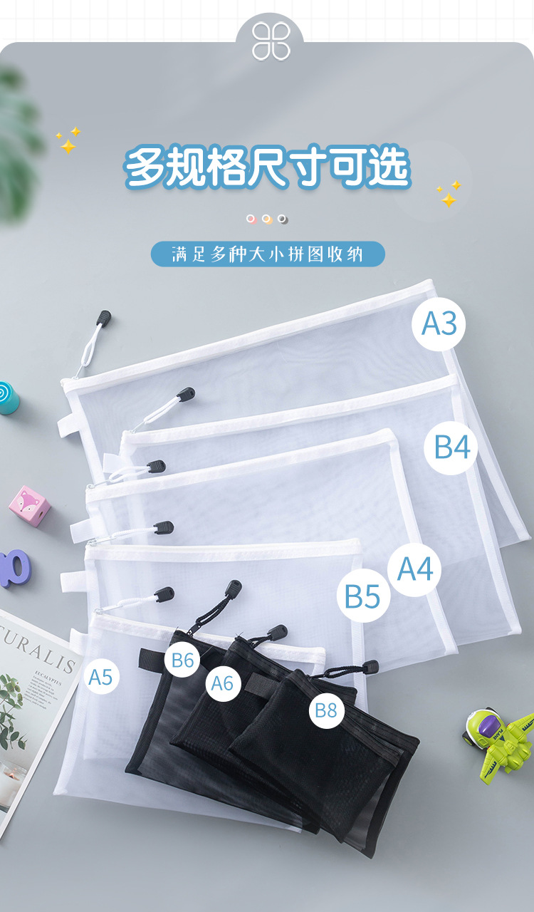 A4文件袋透明尼龙网纱拉链资料袋办公室多功能文件票据档案收纳袋