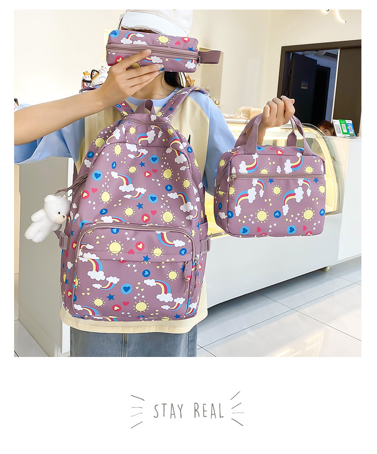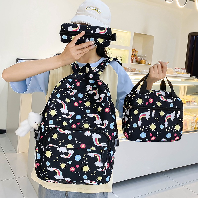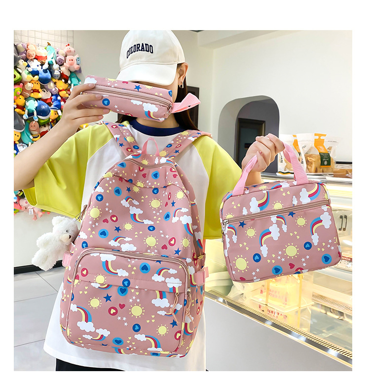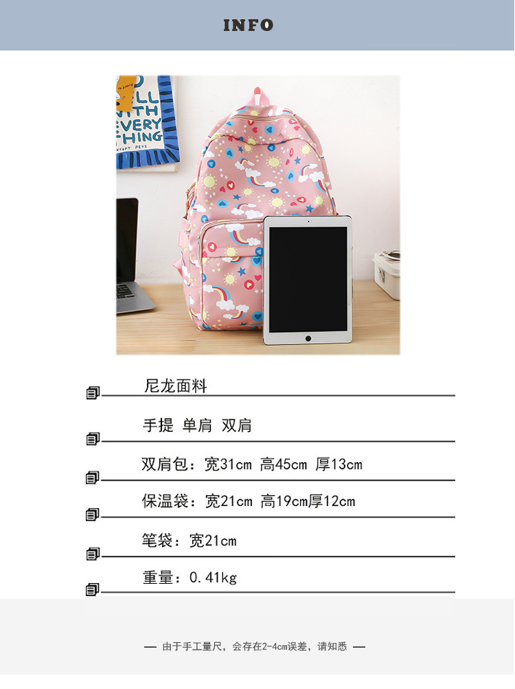 新款可爱初中小学生书包双肩包女高颜值休闲背包三件套