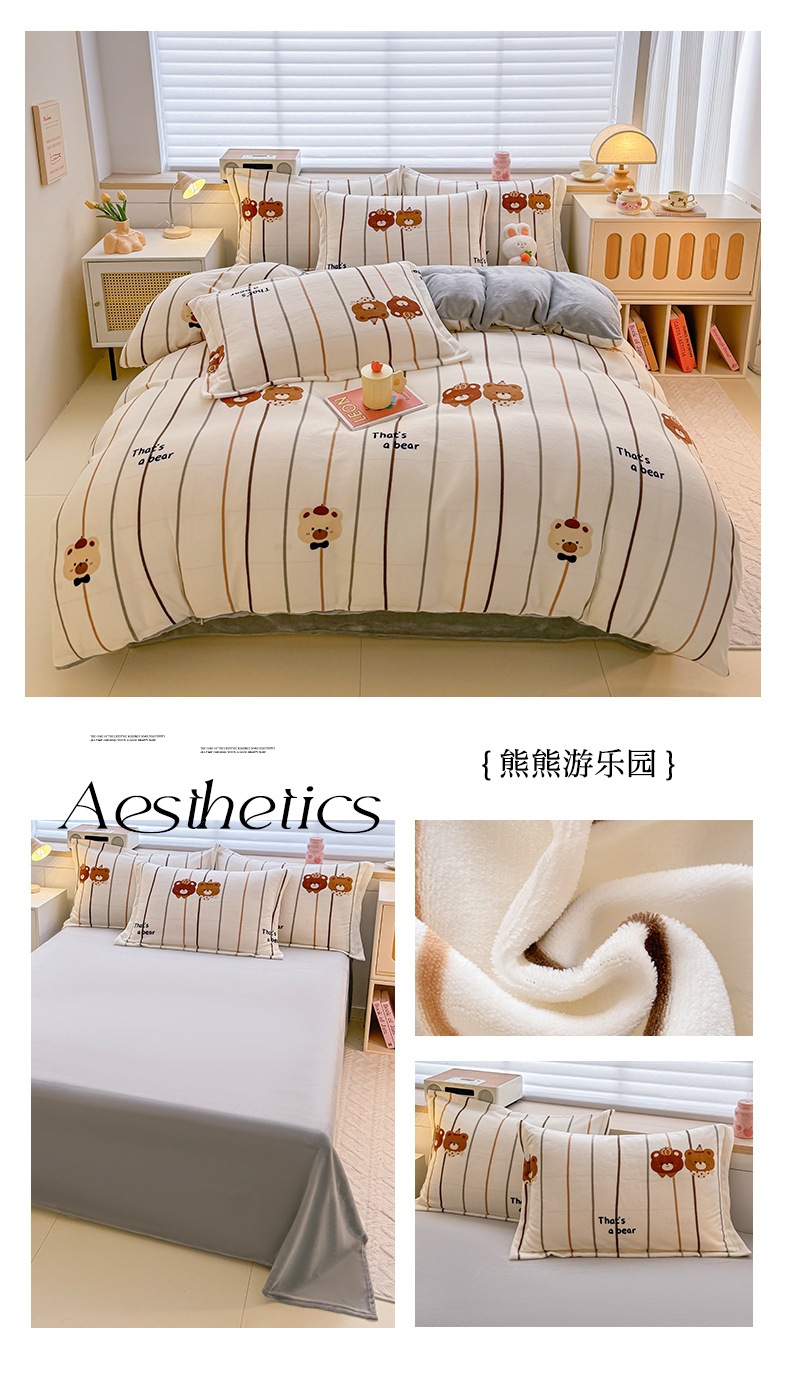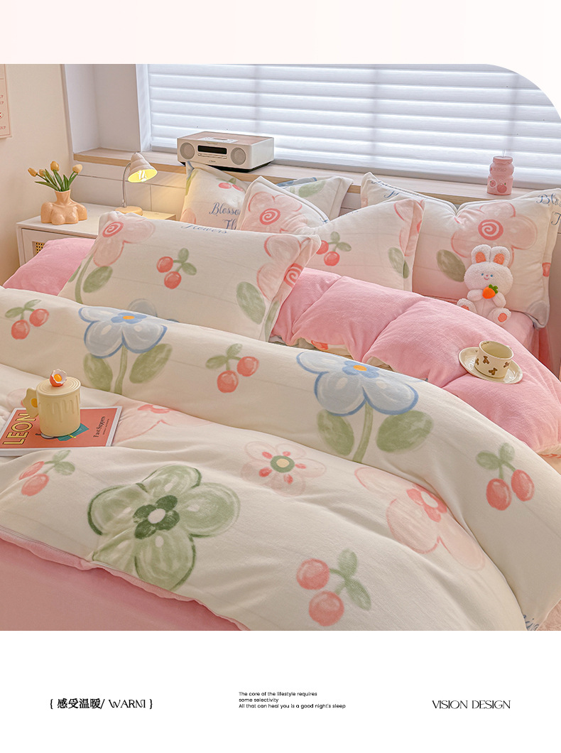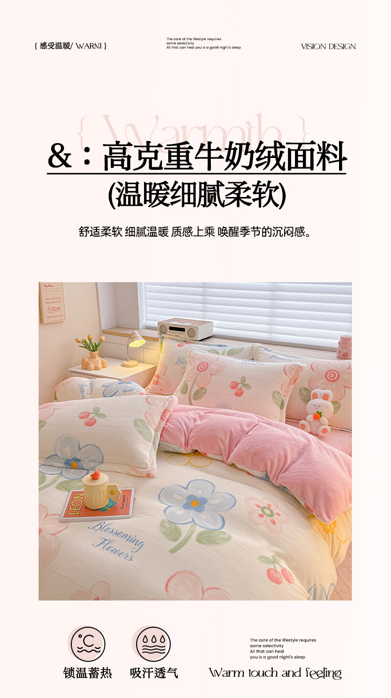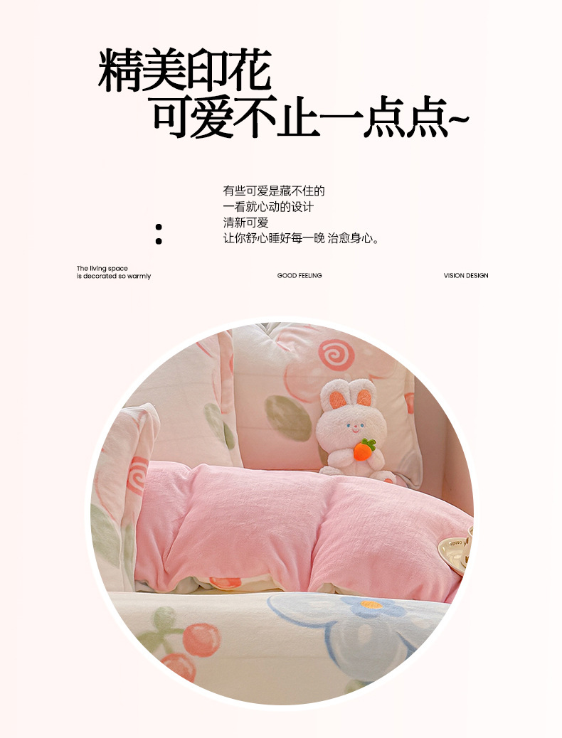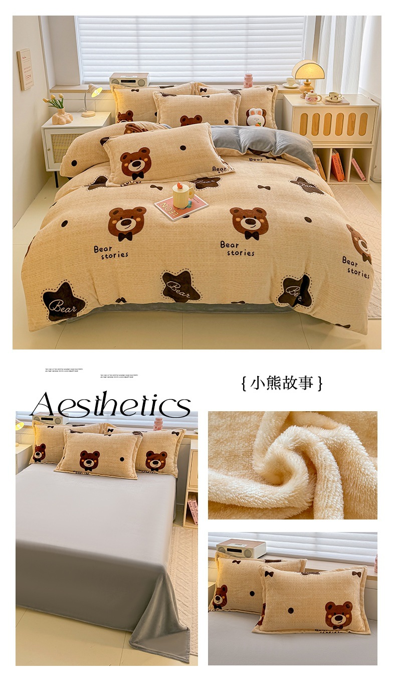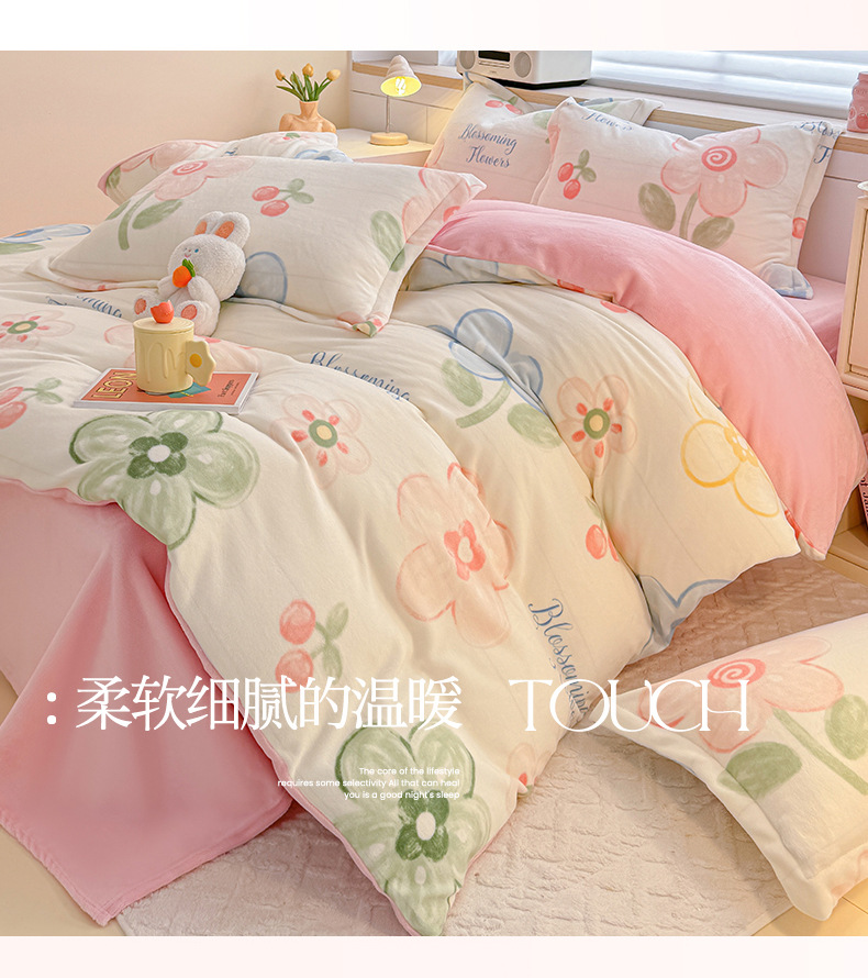 秋冬季加厚牛奶绒床上四件套珊瑚绒被套双面法兰绒加绒床单三件套