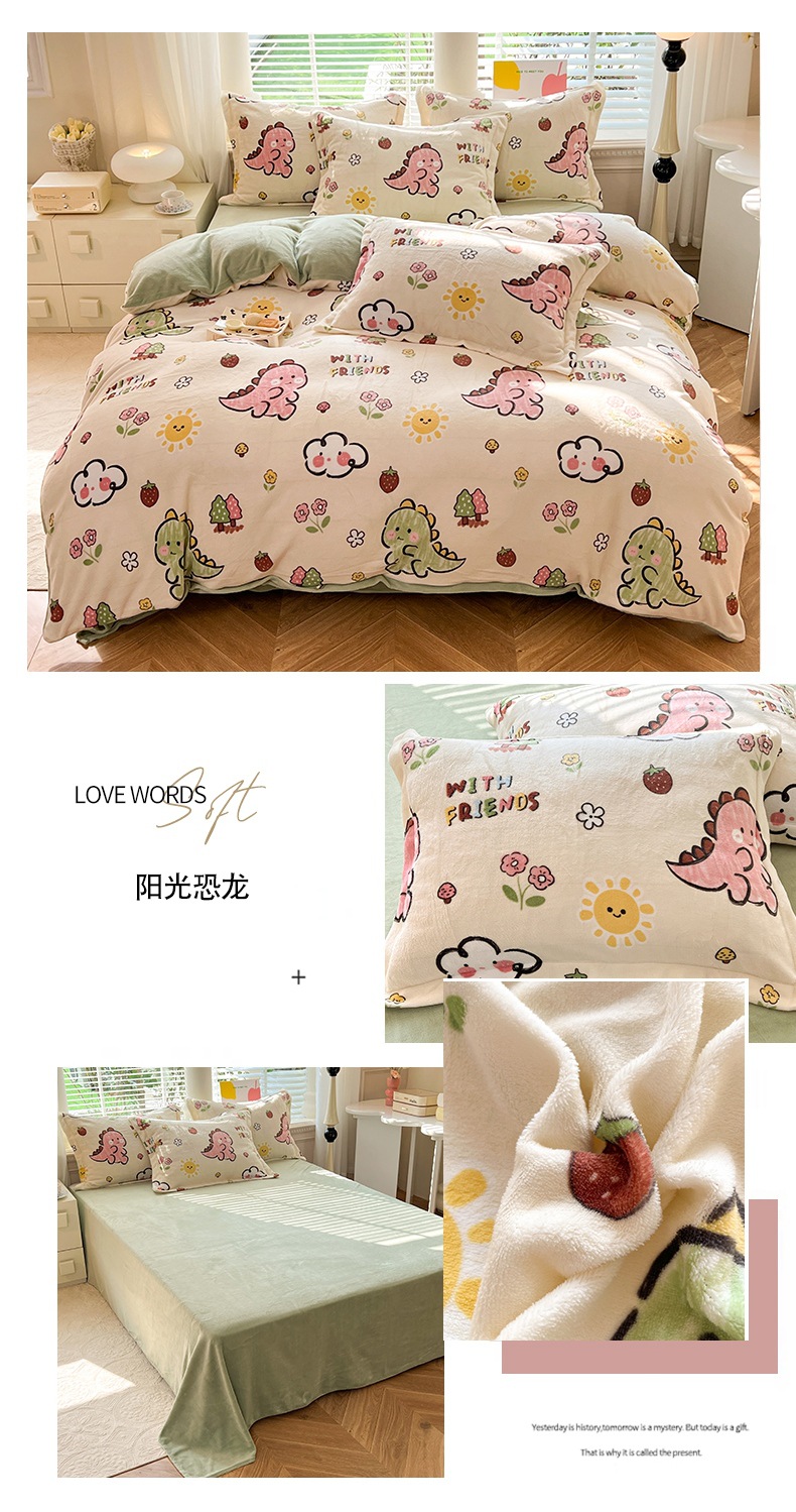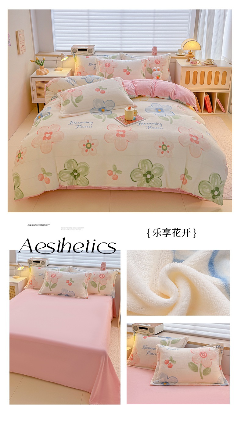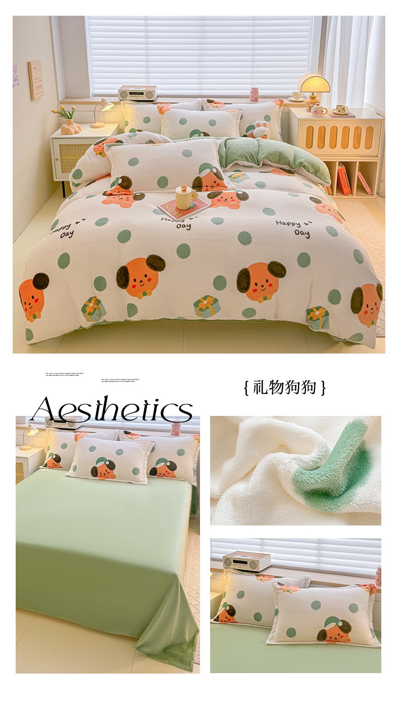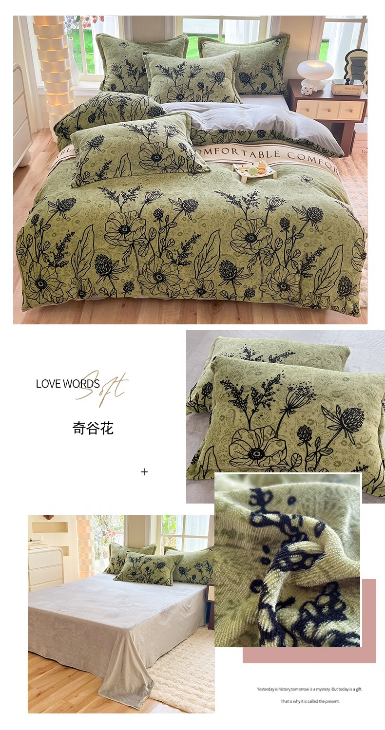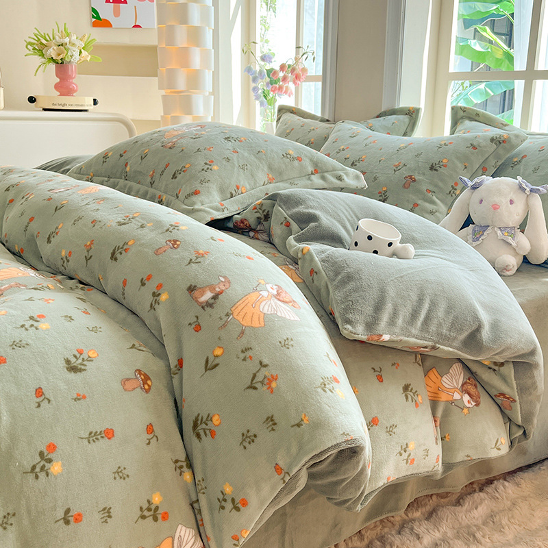 秋冬季加厚牛奶绒床上四件套珊瑚绒被套双面法兰绒加绒床单三件套