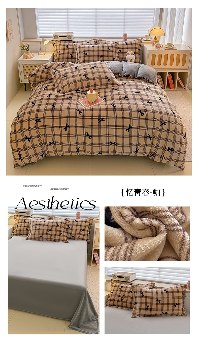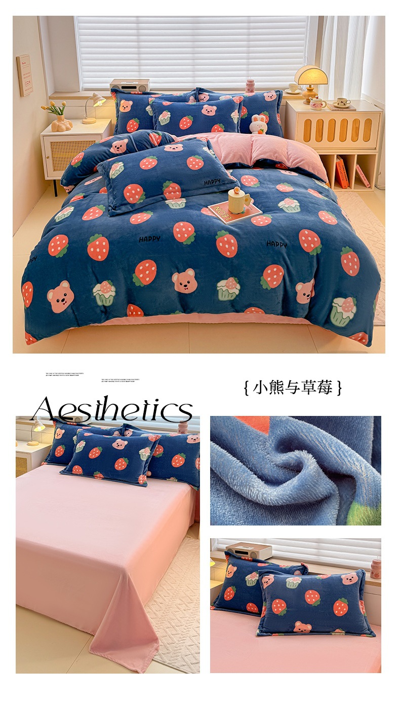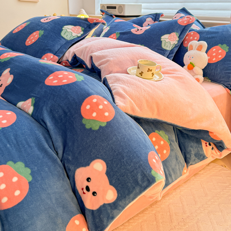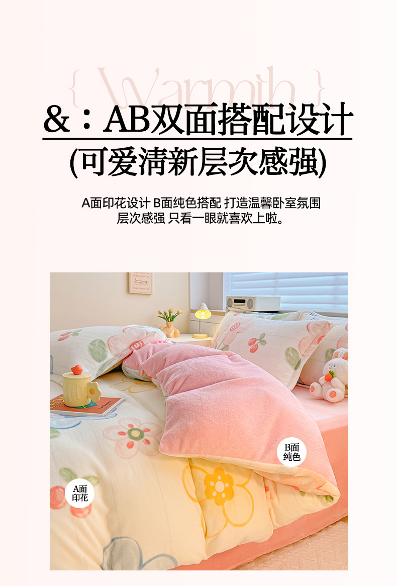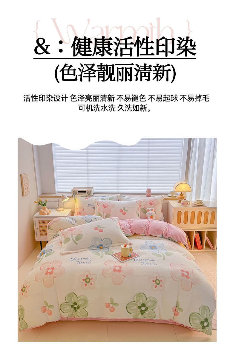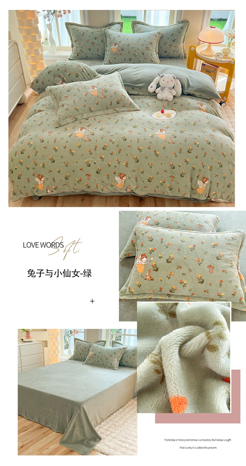 秋冬季加厚牛奶绒床上四件套珊瑚绒被套双面法兰绒加绒床单三件套