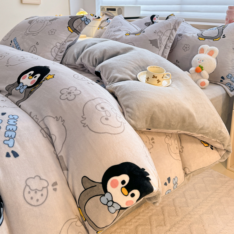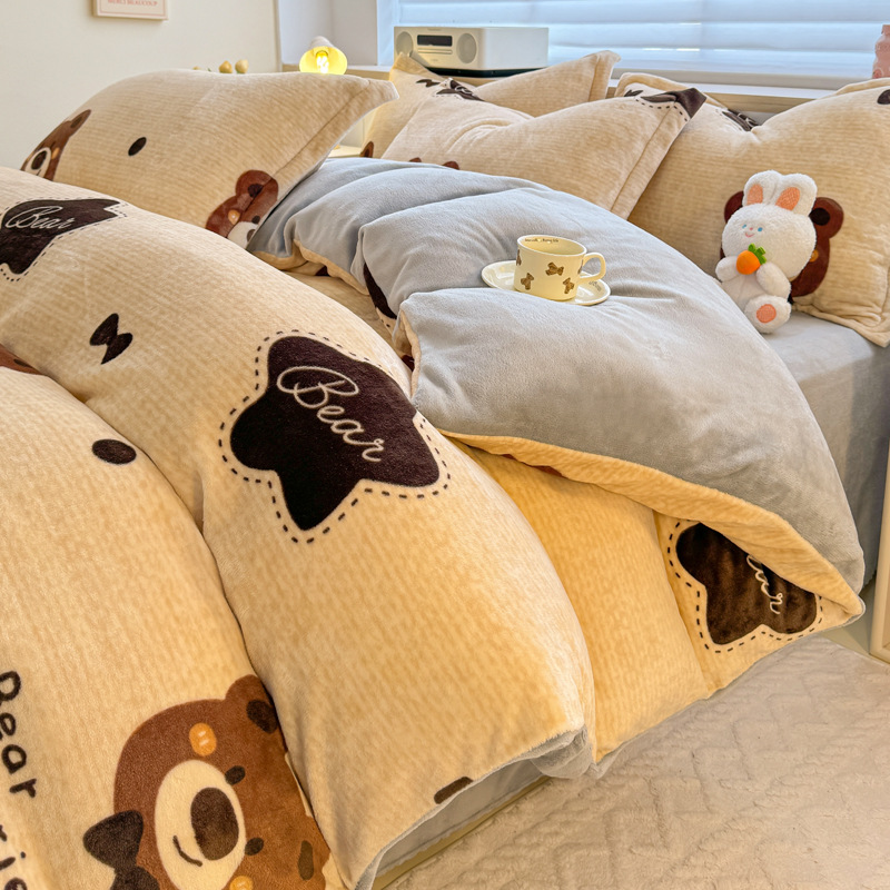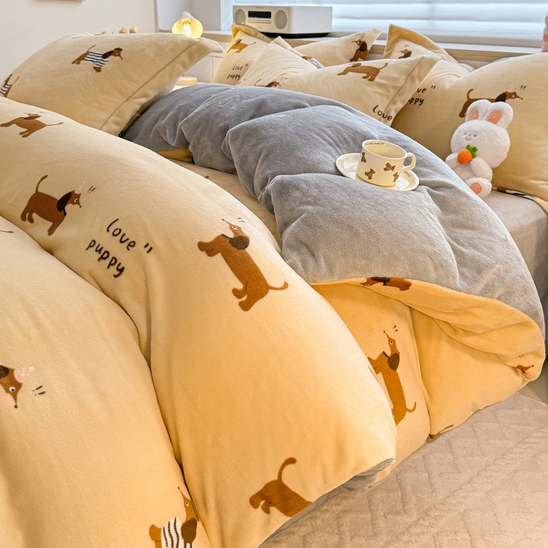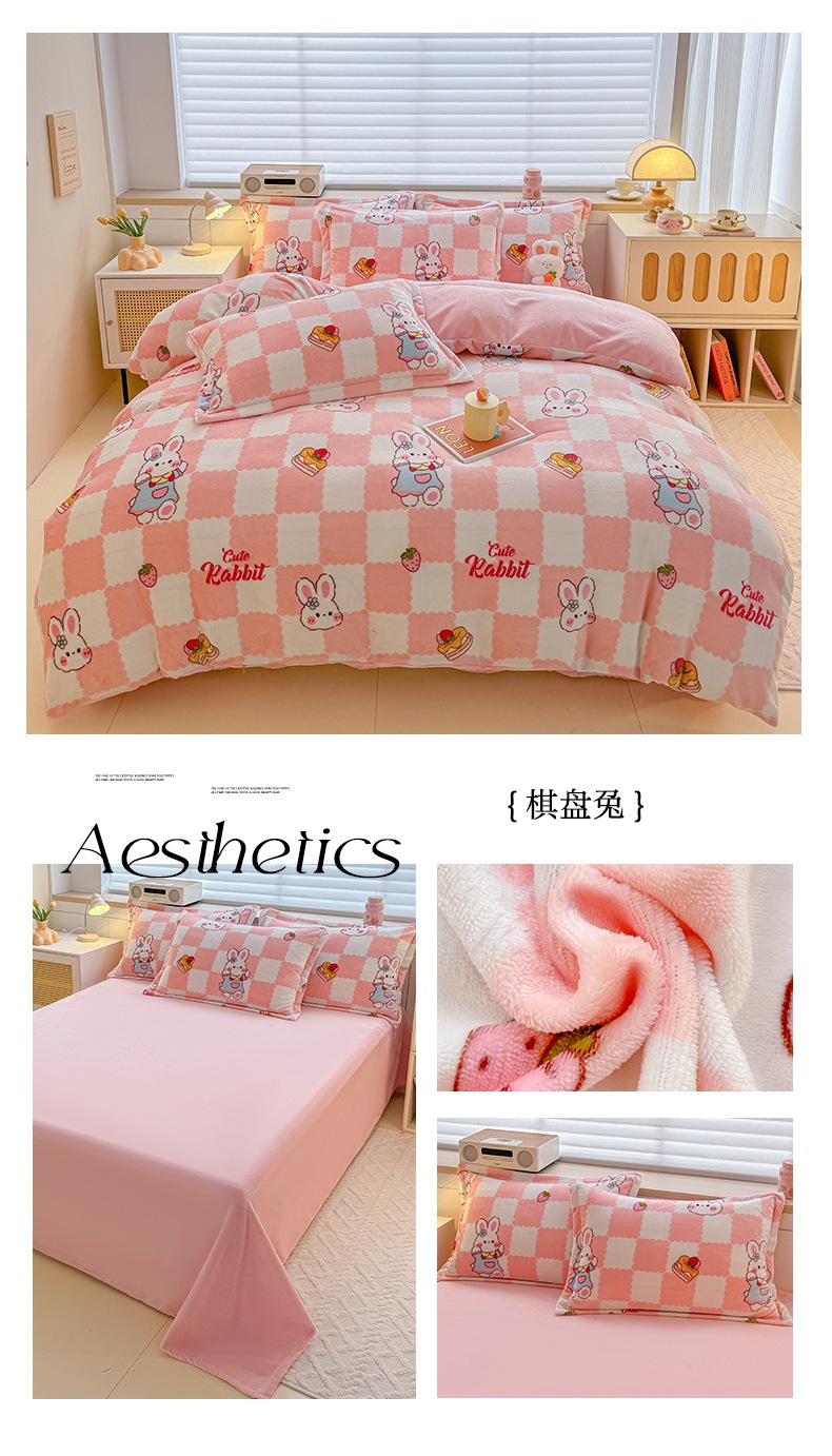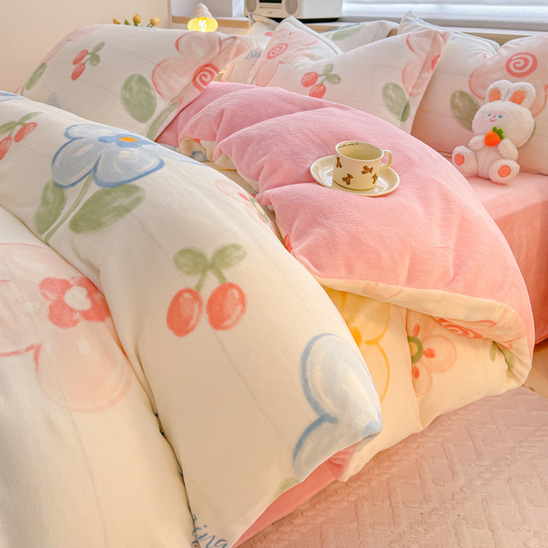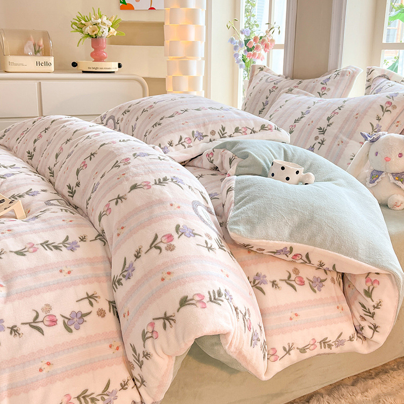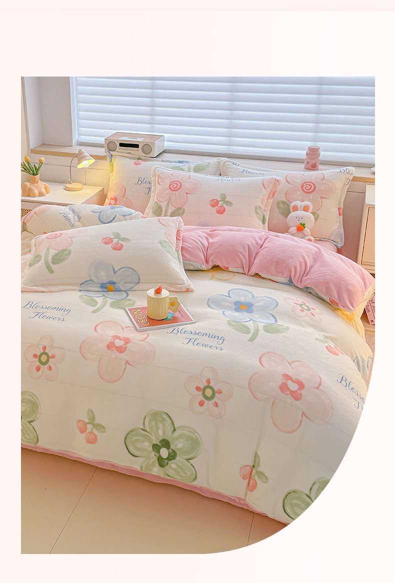 秋冬季加厚牛奶绒床上四件套珊瑚绒被套双面法兰绒加绒床单三件套