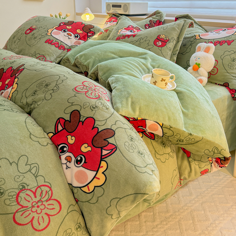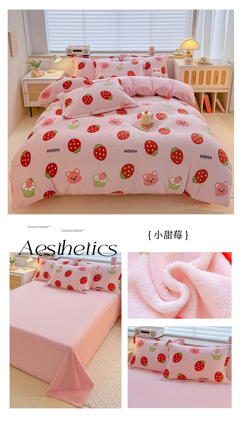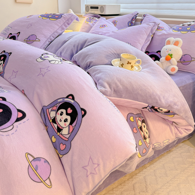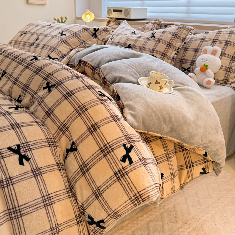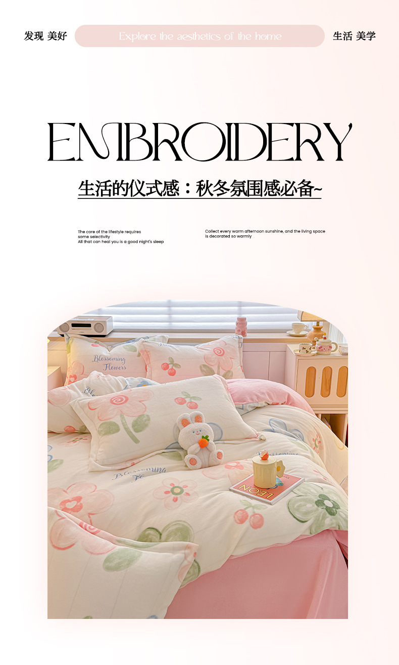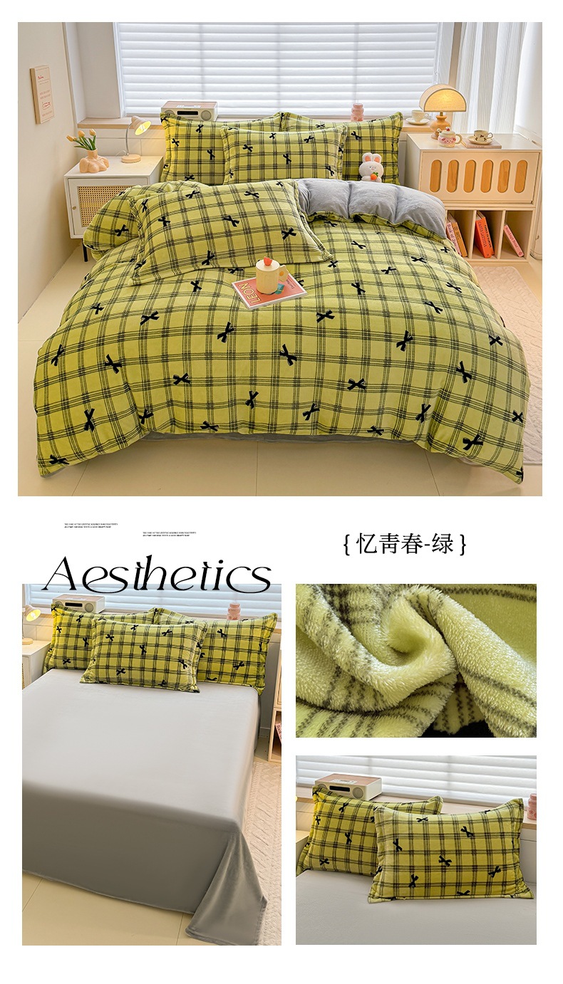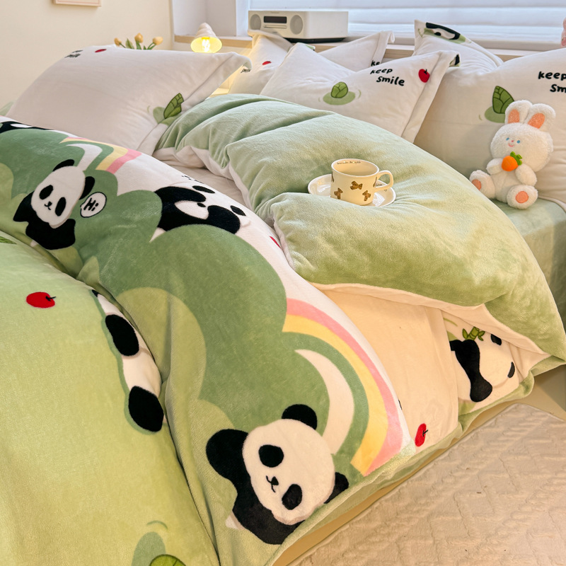 秋冬季加厚牛奶绒床上四件套珊瑚绒被套双面法兰绒加绒床单三件套