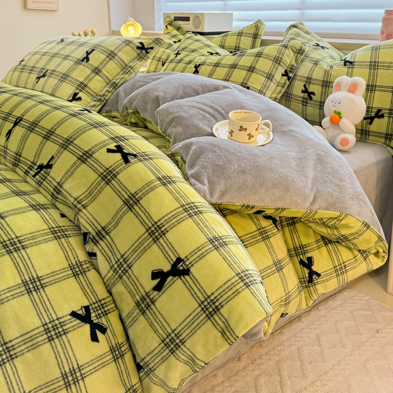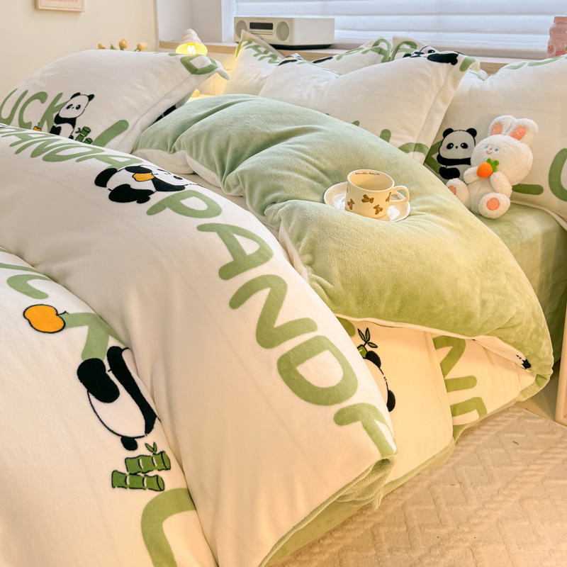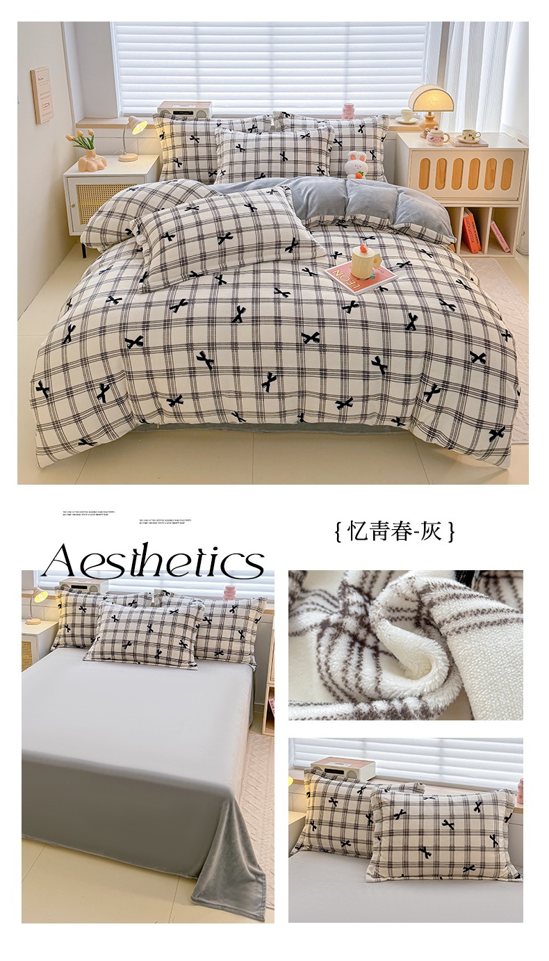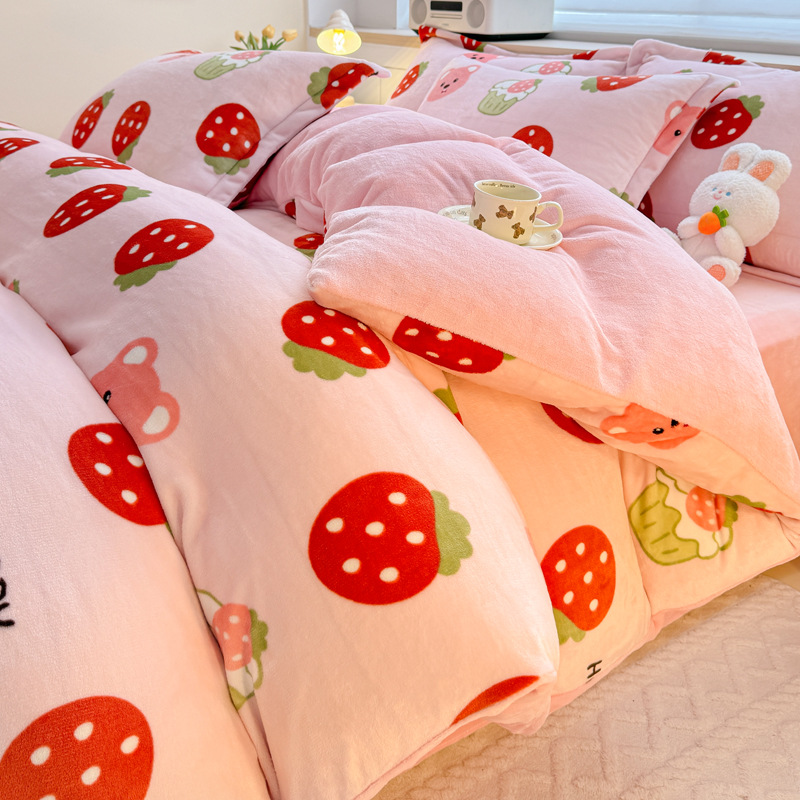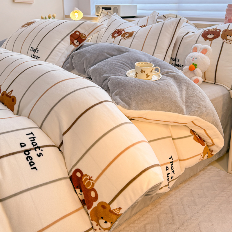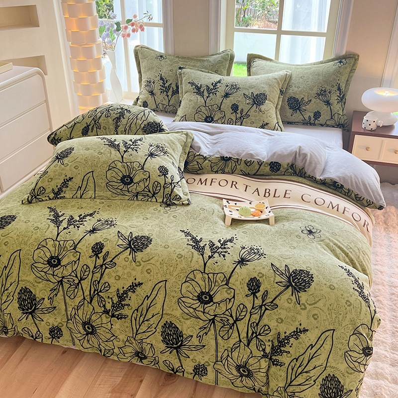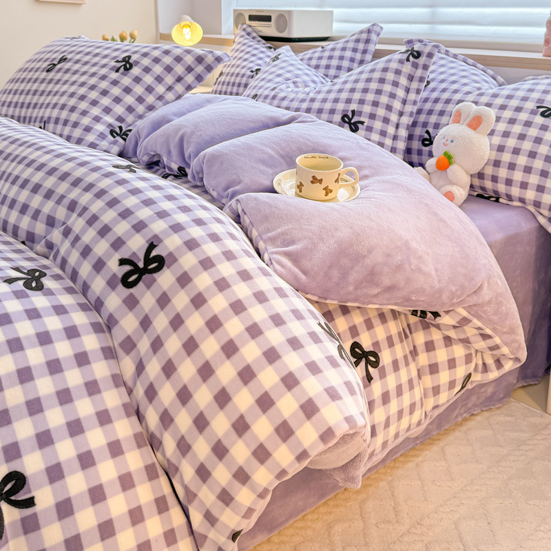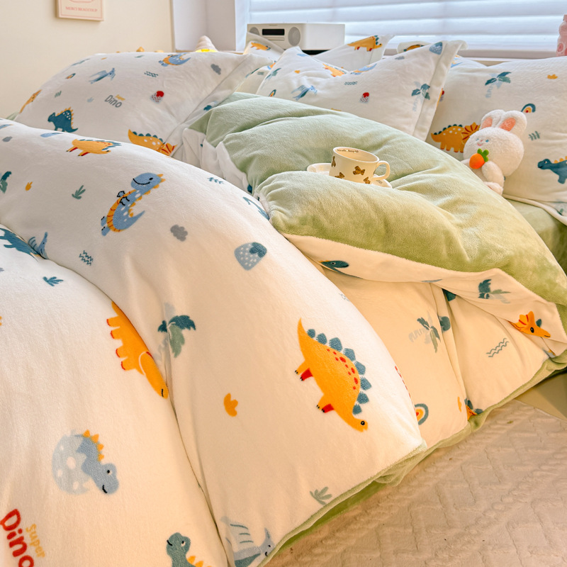 秋冬季加厚牛奶绒床上四件套珊瑚绒被套双面法兰绒加绒床单三件套