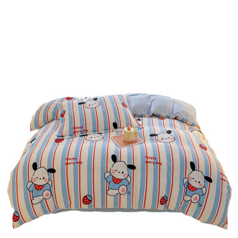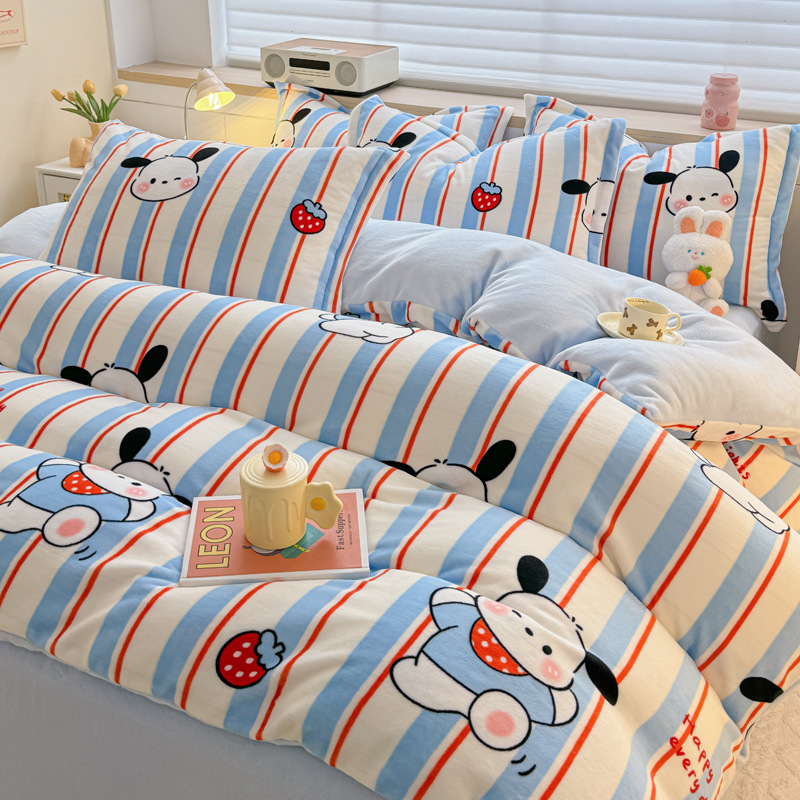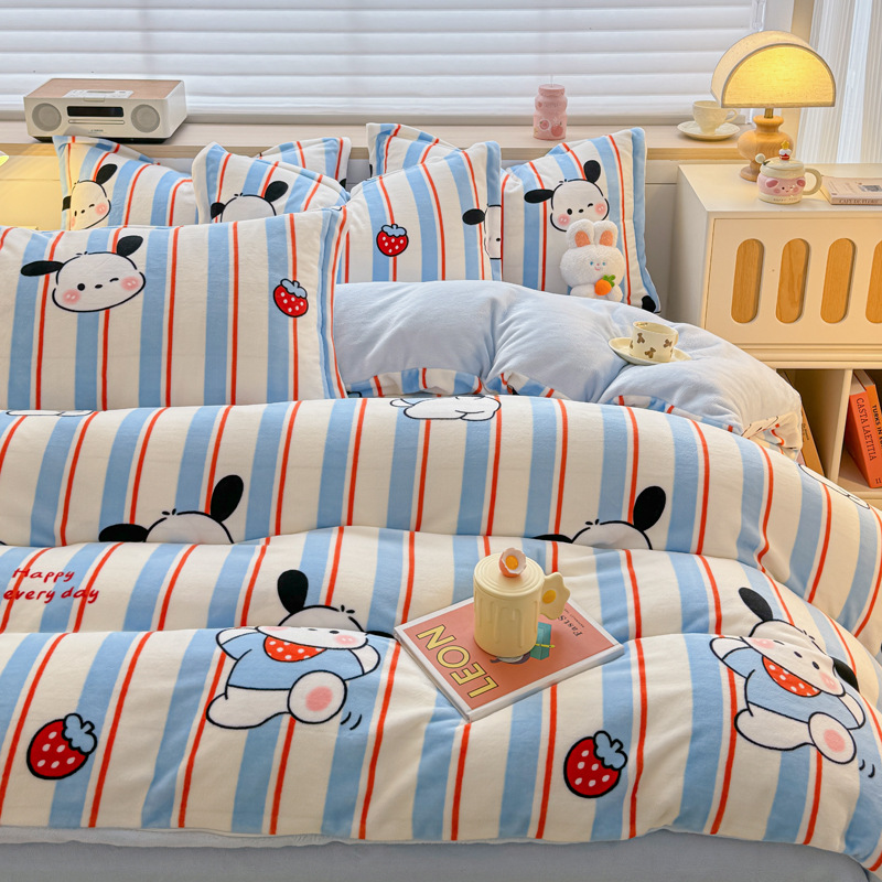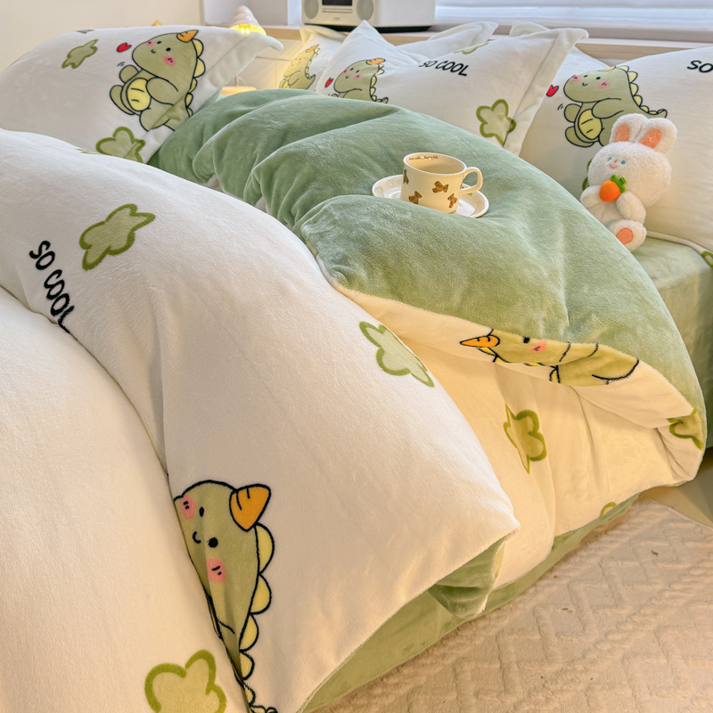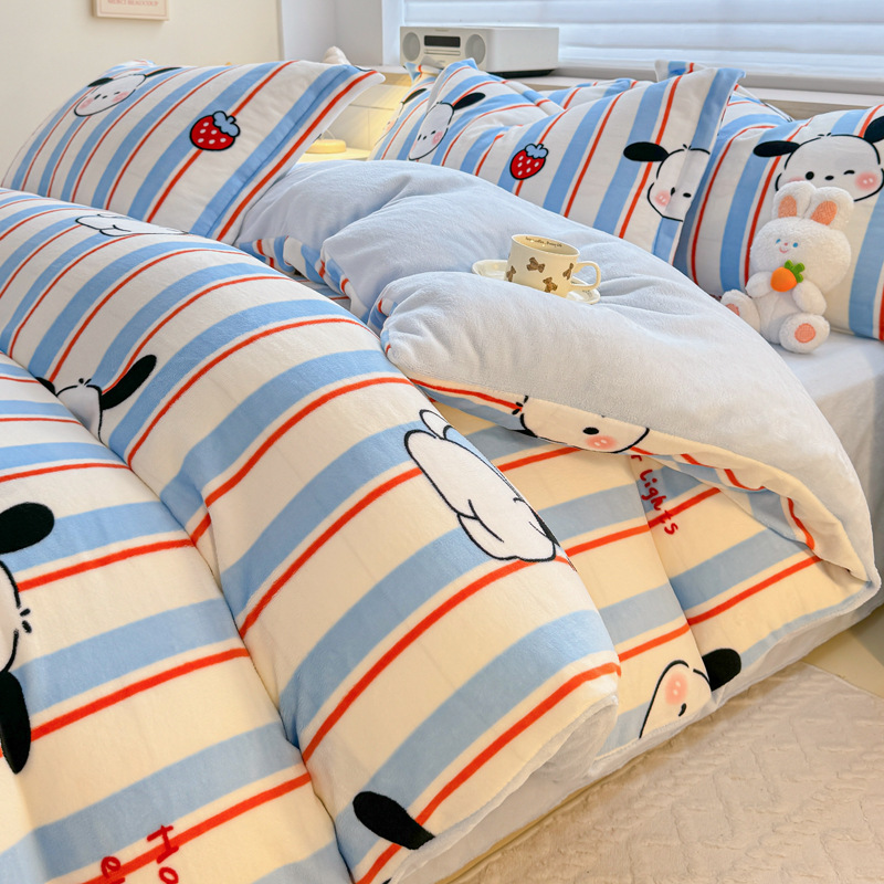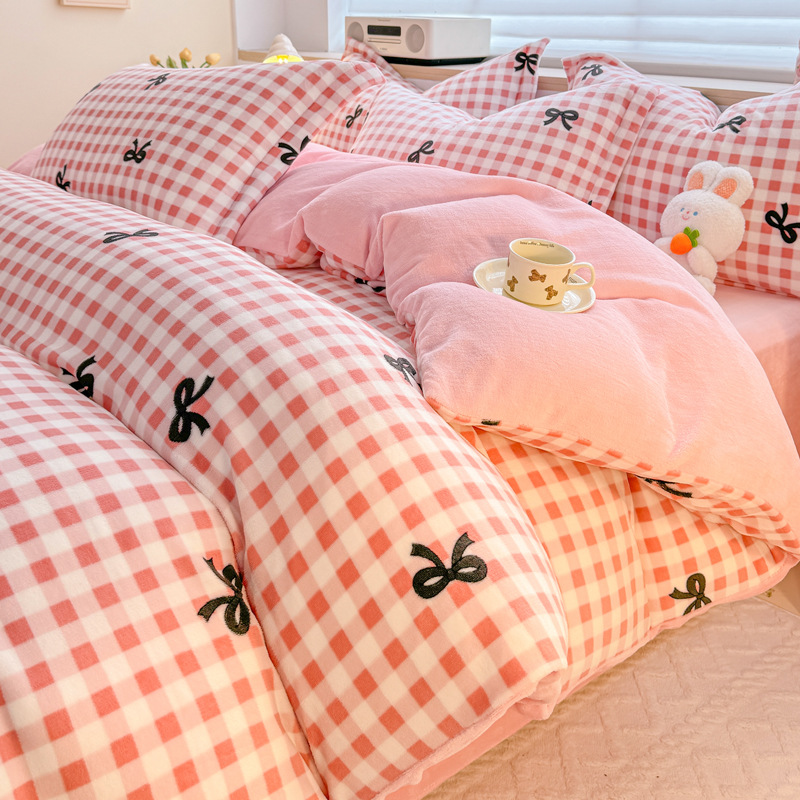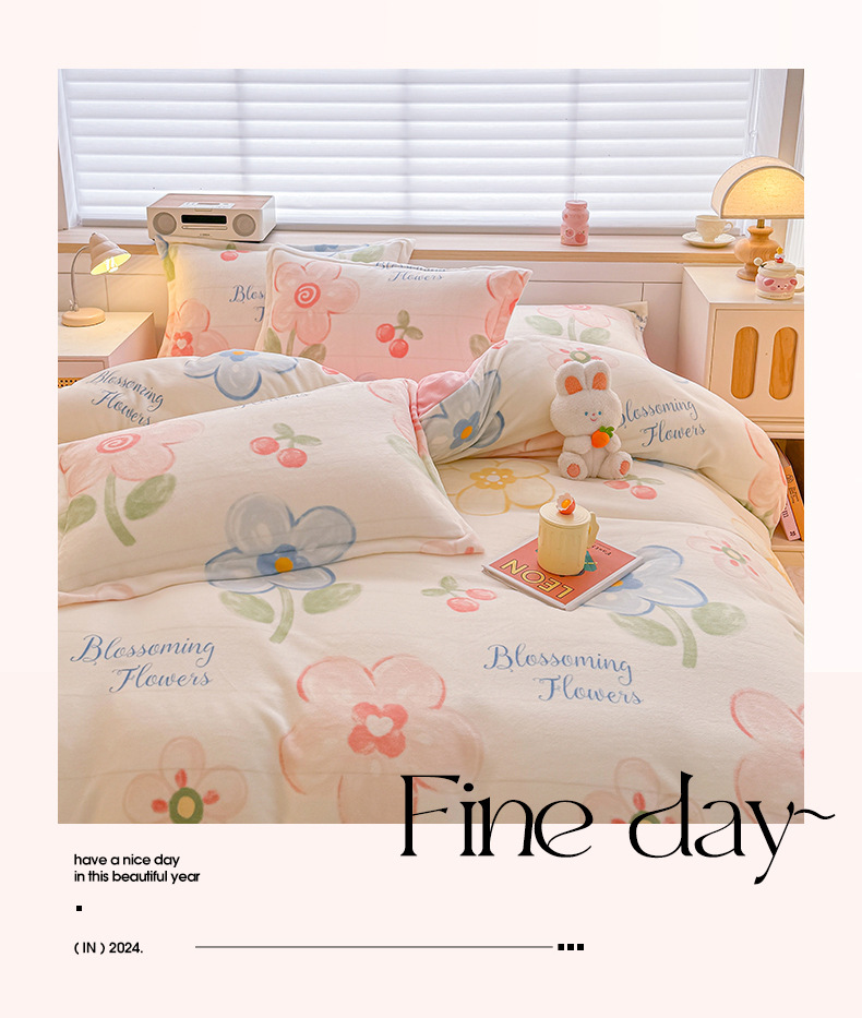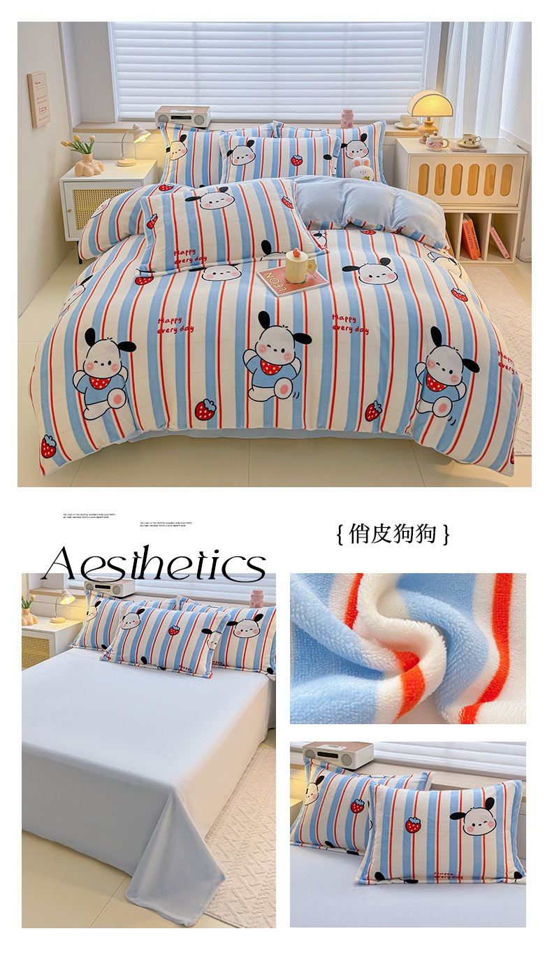 秋冬季加厚牛奶绒床上四件套珊瑚绒被套双面法兰绒加绒床单三件套