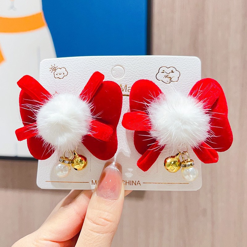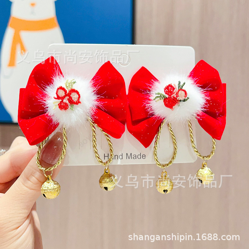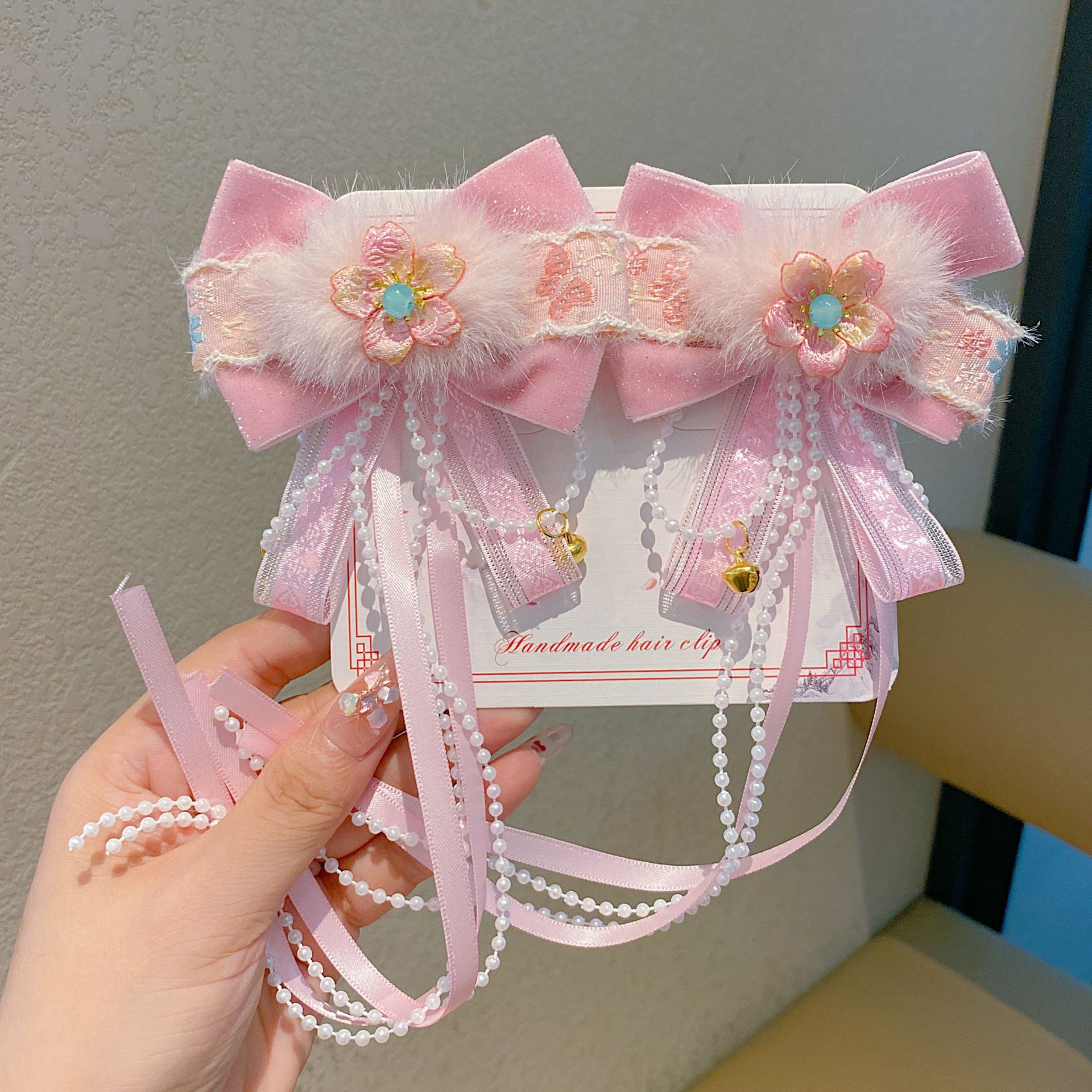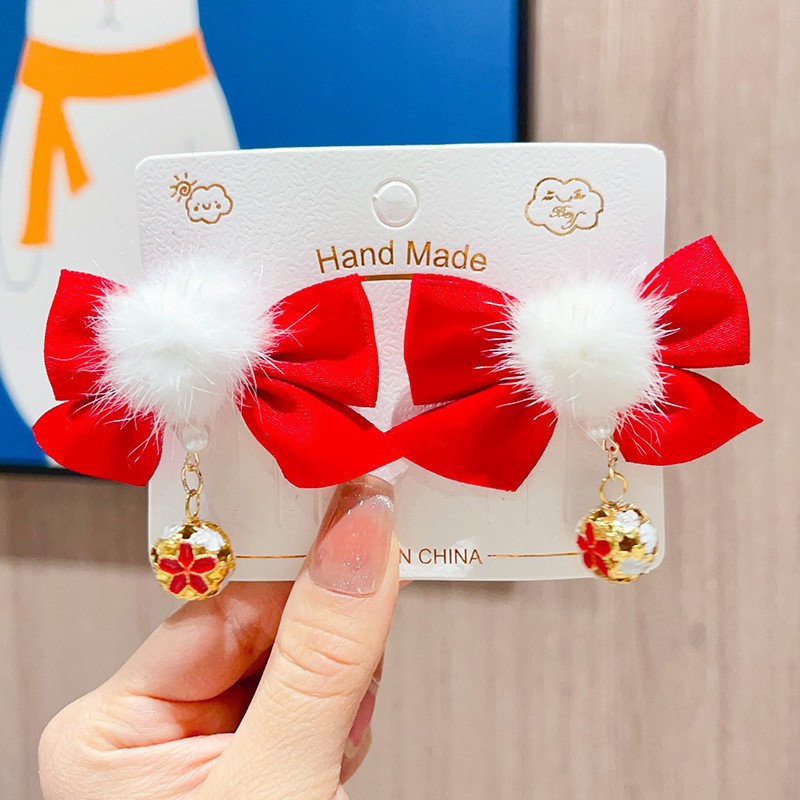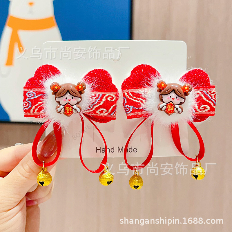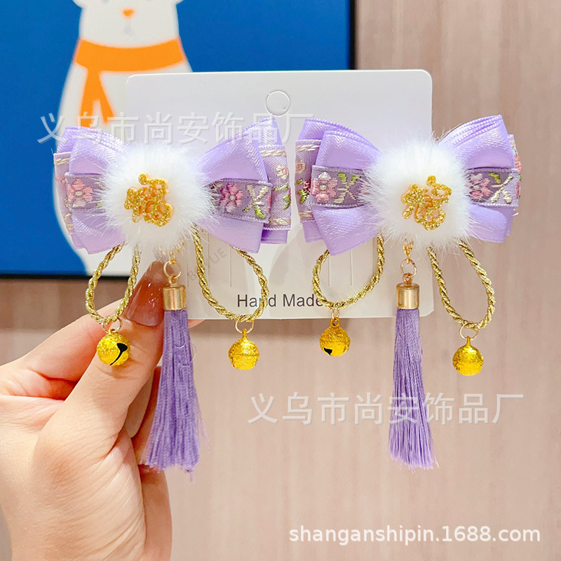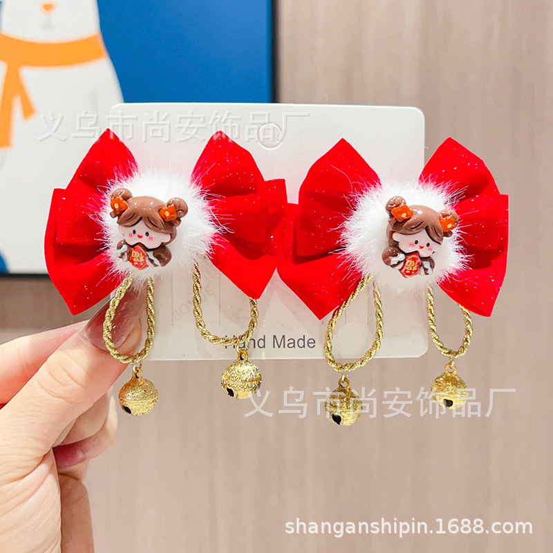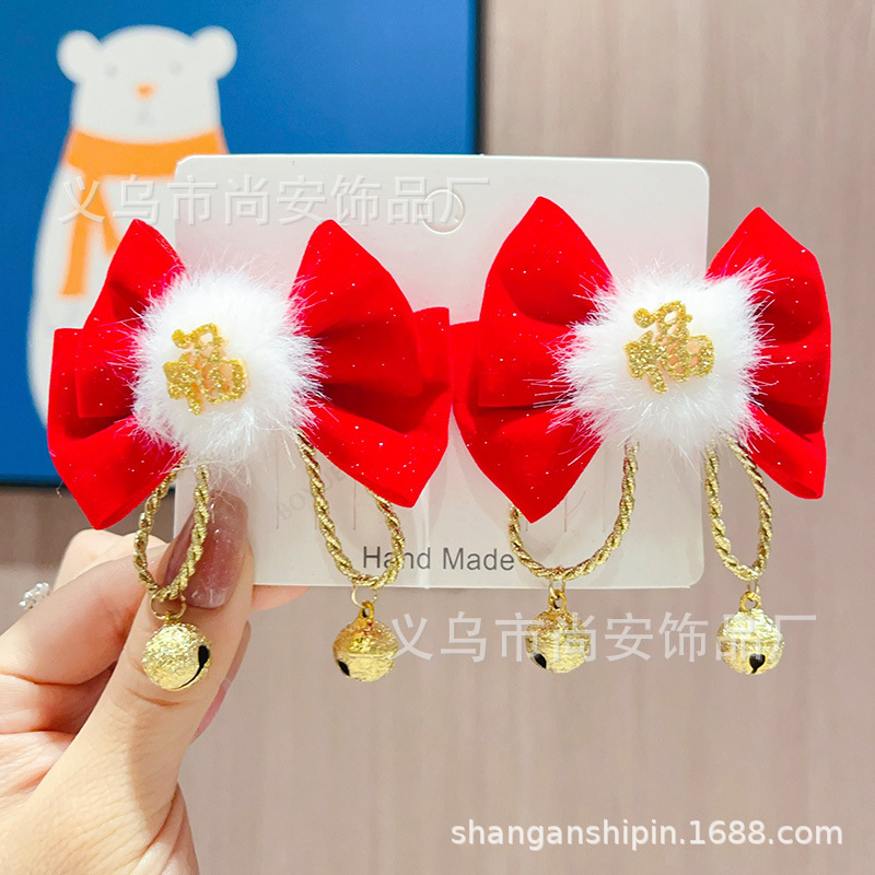 2025女童红色喜庆新年发饰汉服头饰儿童中国风公主蝴蝶结流苏对夹