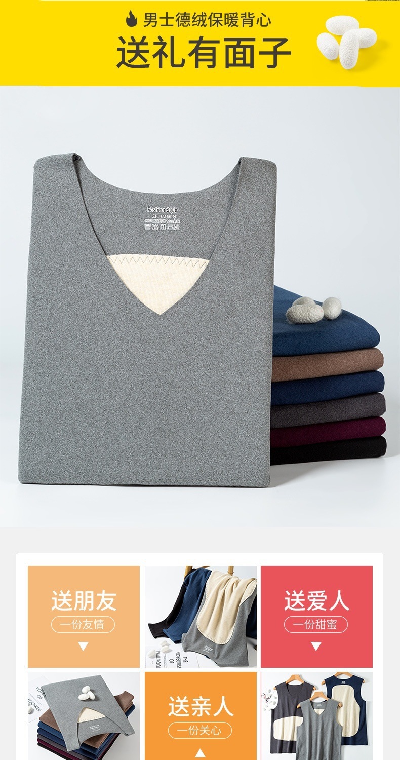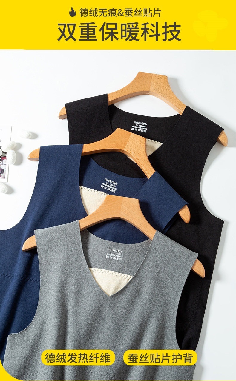 双面磨毛无痕德绒高品质背心男加厚内搭打底衣贴片发热防寒保暖衫