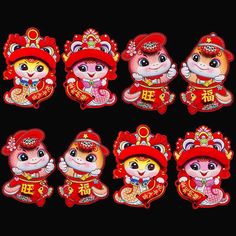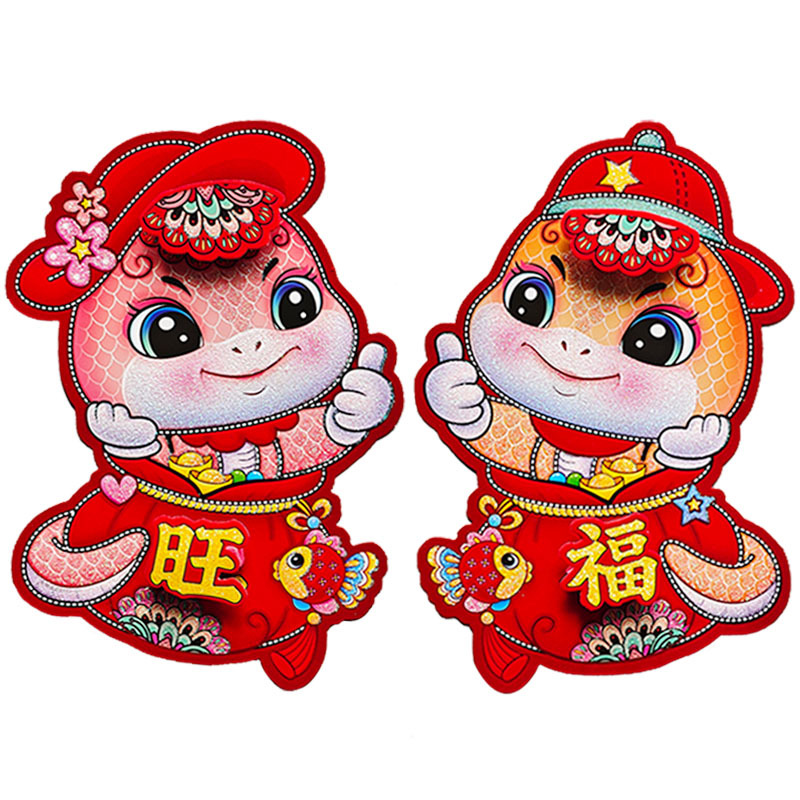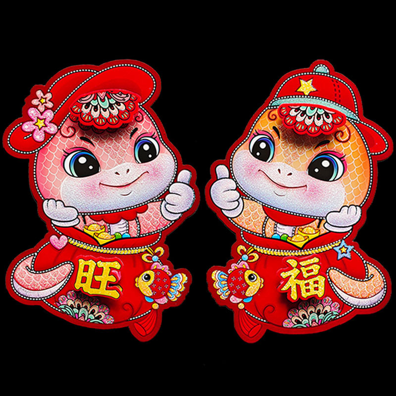 蛇年卡通生肖门贴植绒撒金粉立体生肖对贴春节装饰品门贴年画批发
