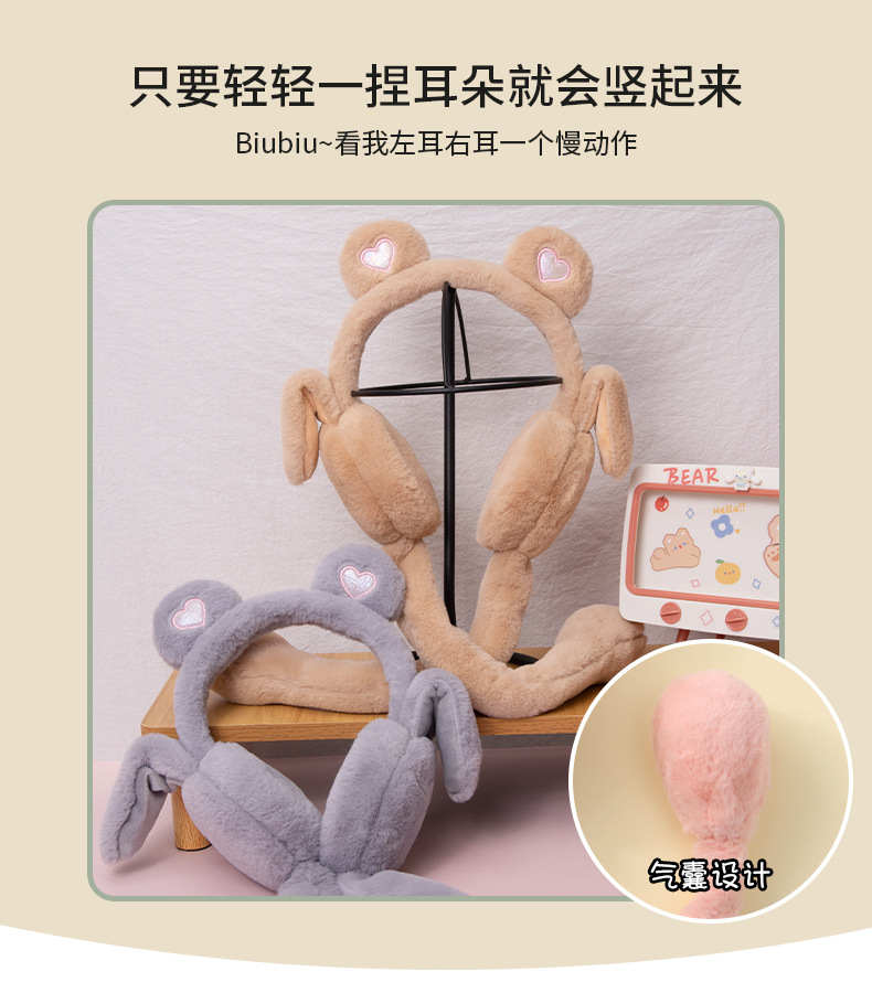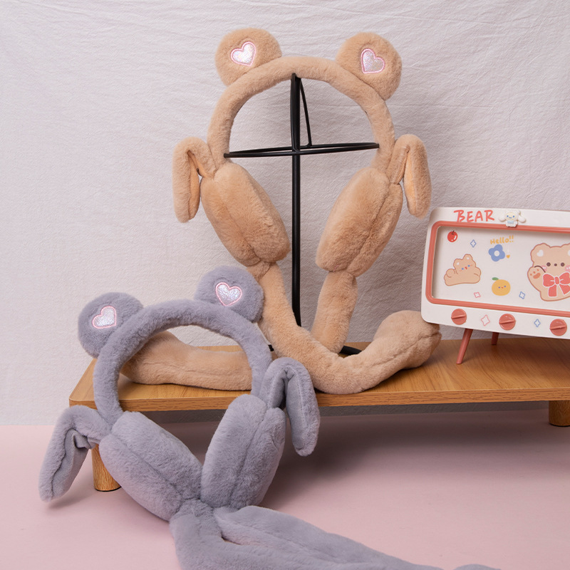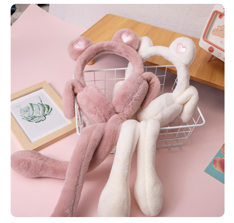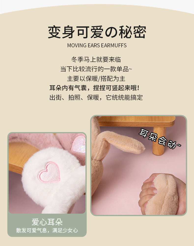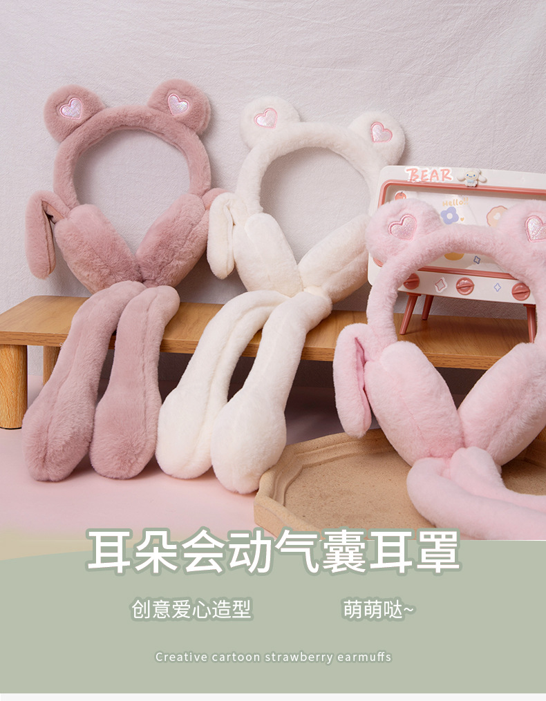 韩版气囊会动兔子耳朵可爱少女头套秋冬保暖耳罩耳捂毛绒耳套发箍