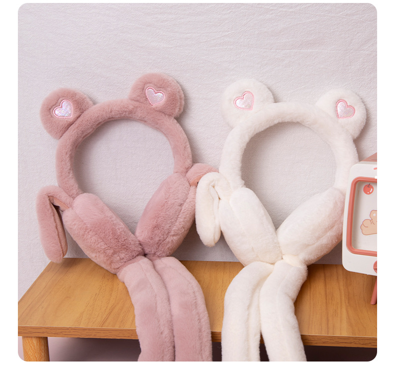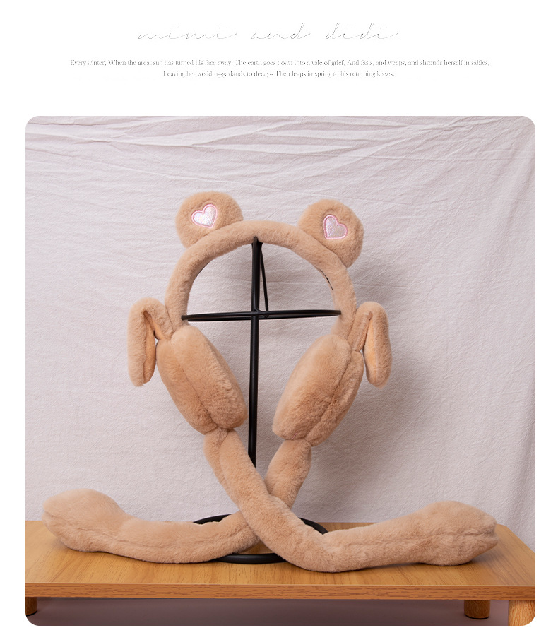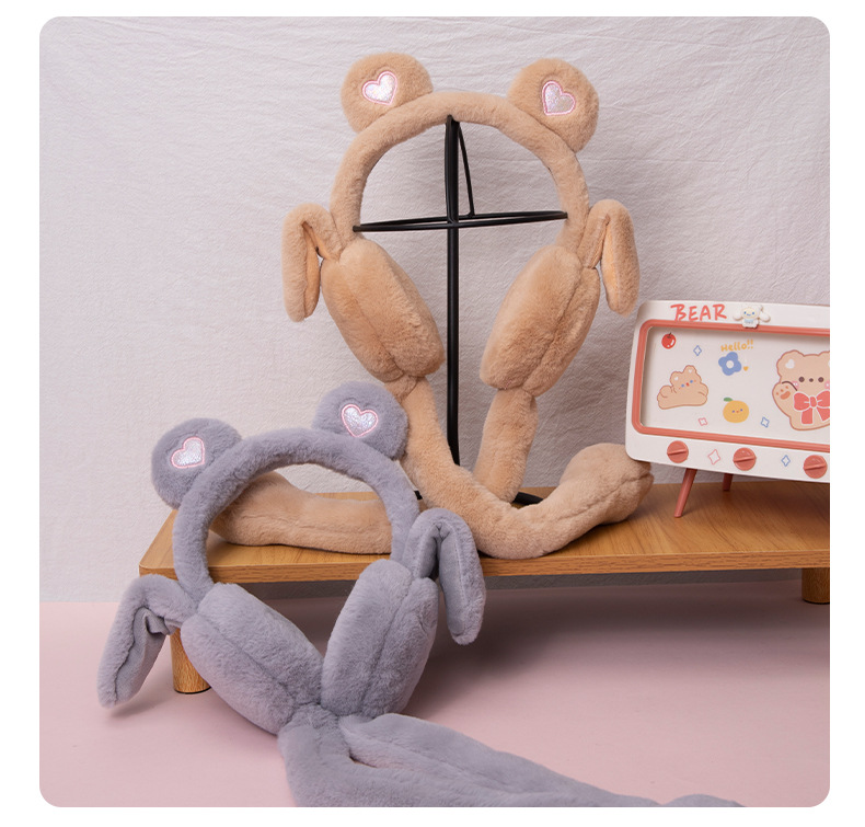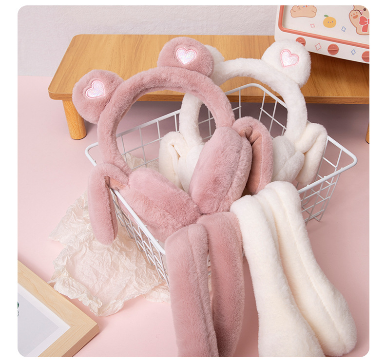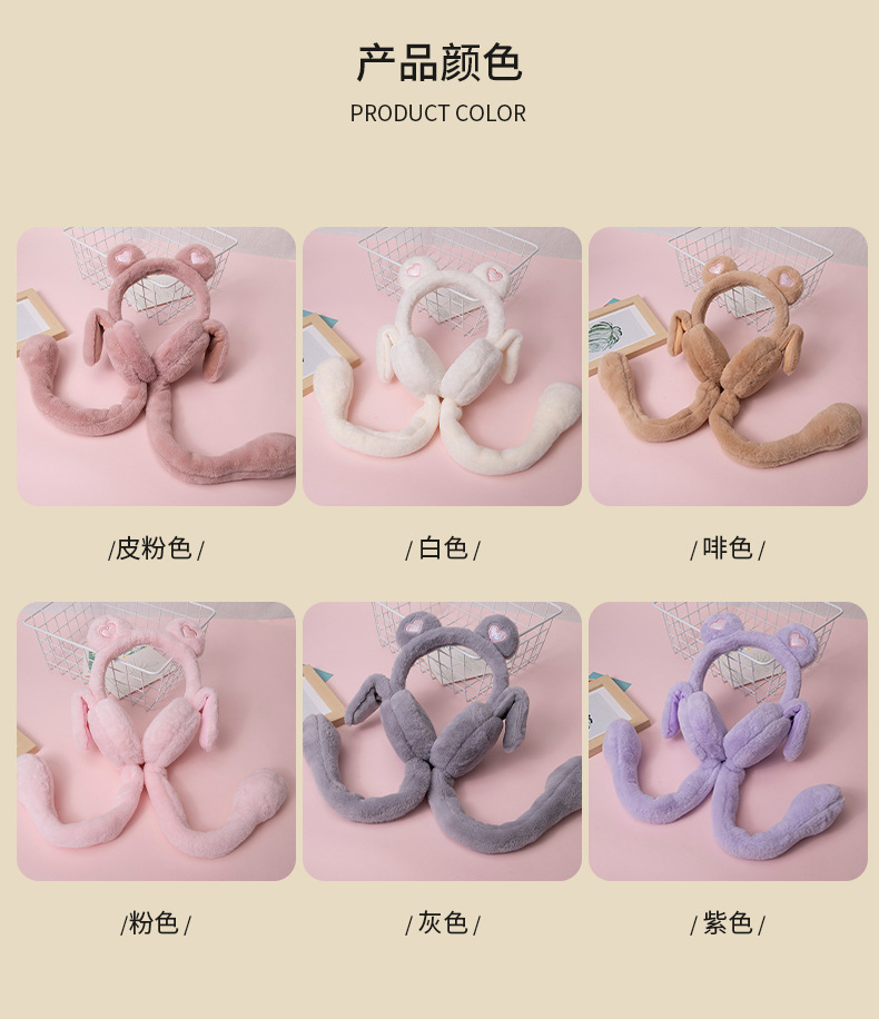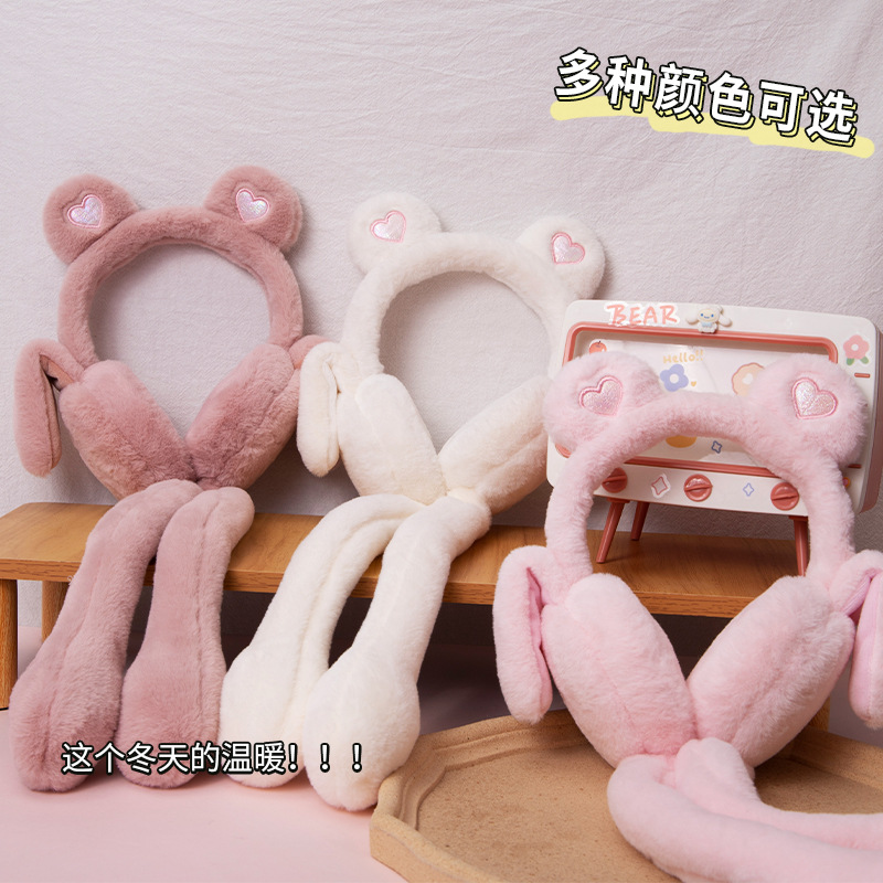 韩版气囊会动兔子耳朵可爱少女头套秋冬保暖耳罩耳捂毛绒耳套发箍