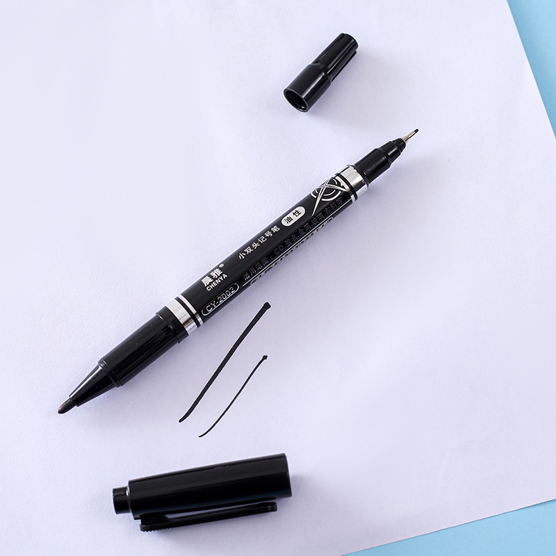 小双头记号笔油性120黑色速干马克笔大容量美术绘画勾线笔批发