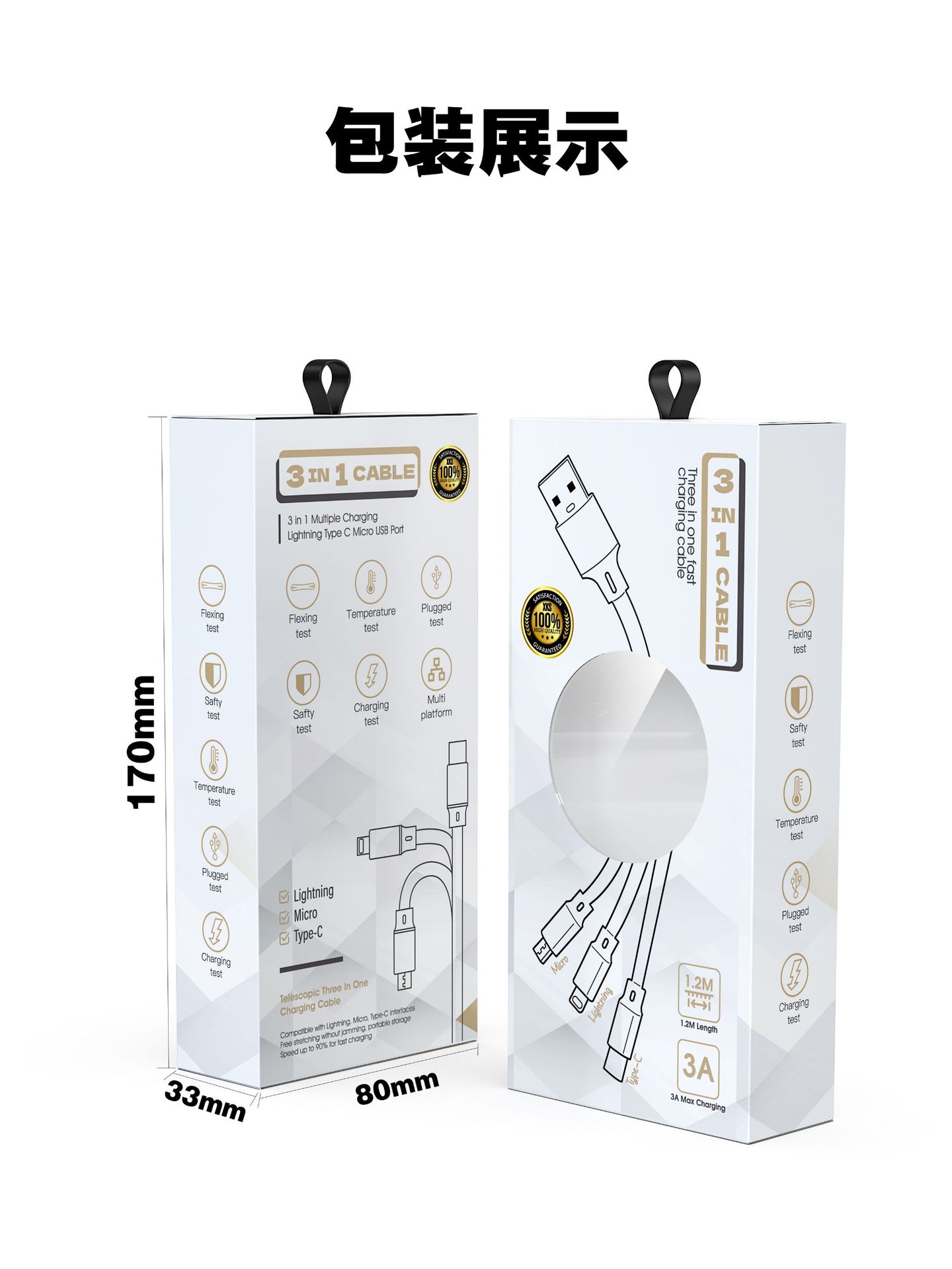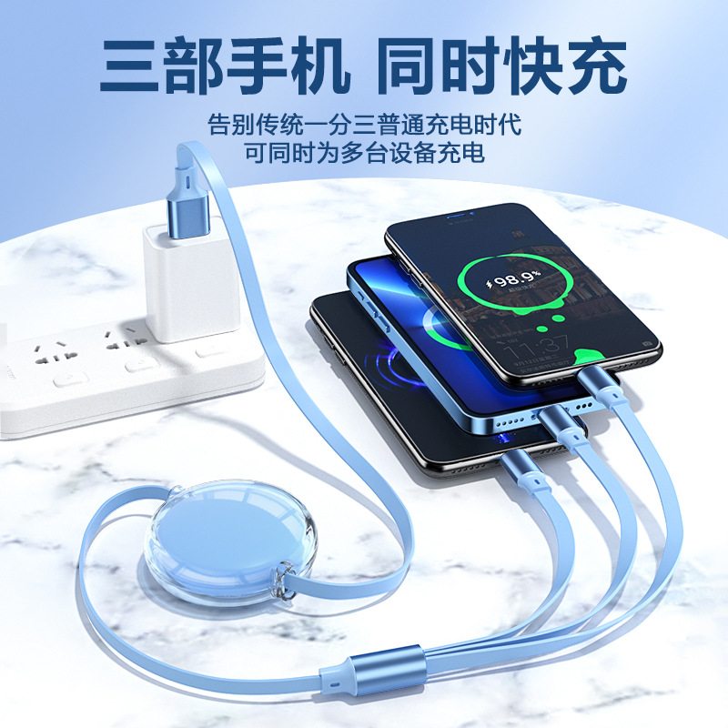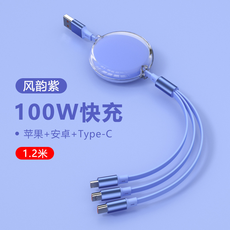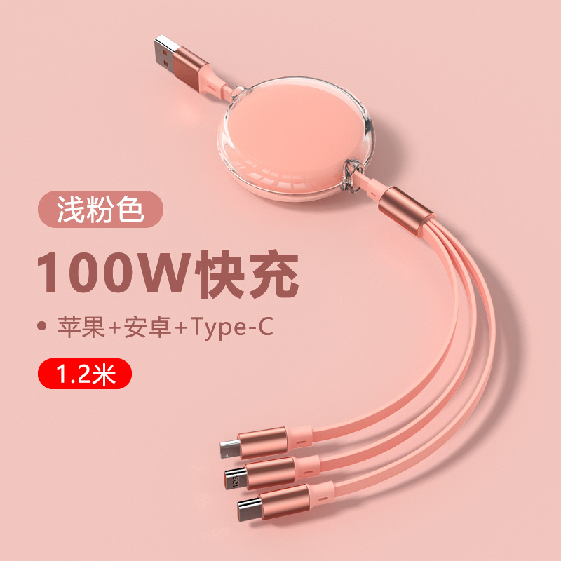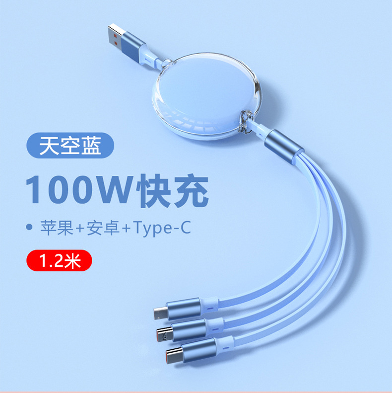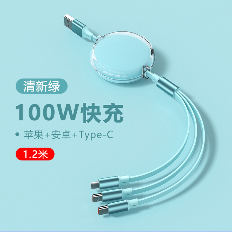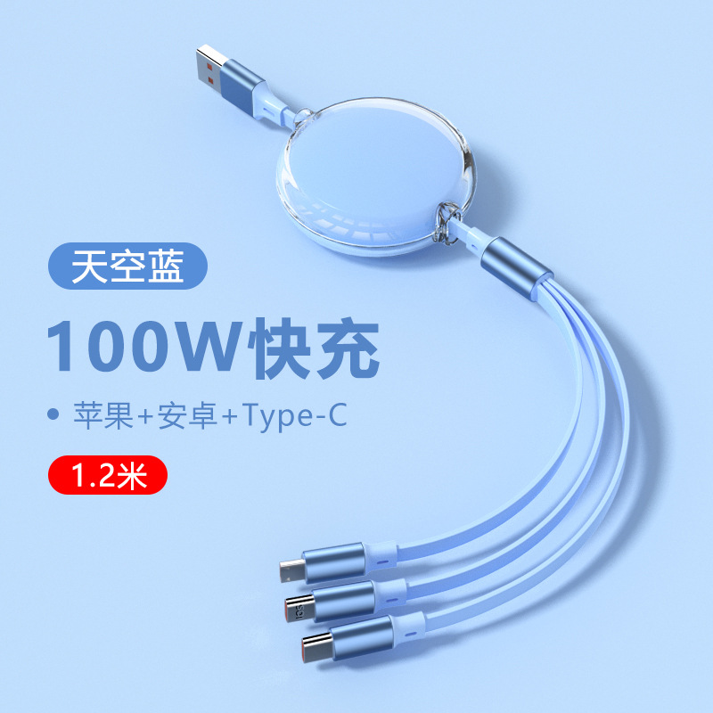 100W透明壳伸缩一拖三 适用于华为苹果安卓 三合一6A快充数据线
