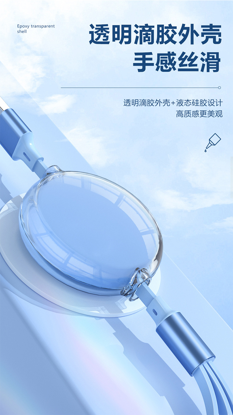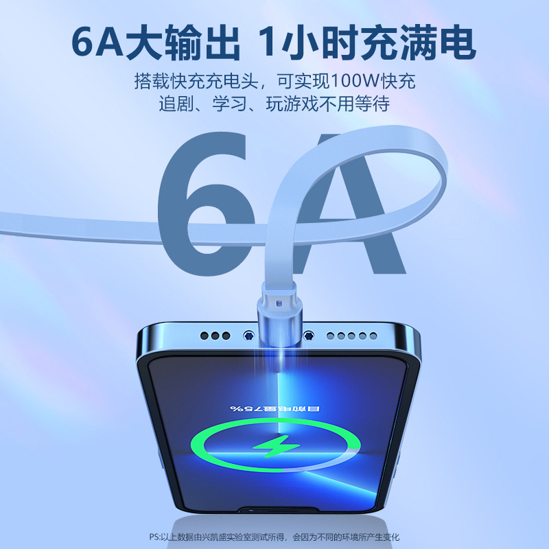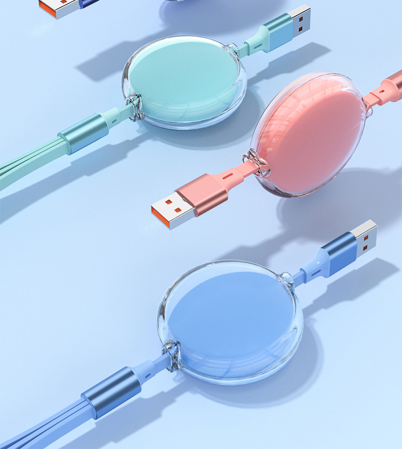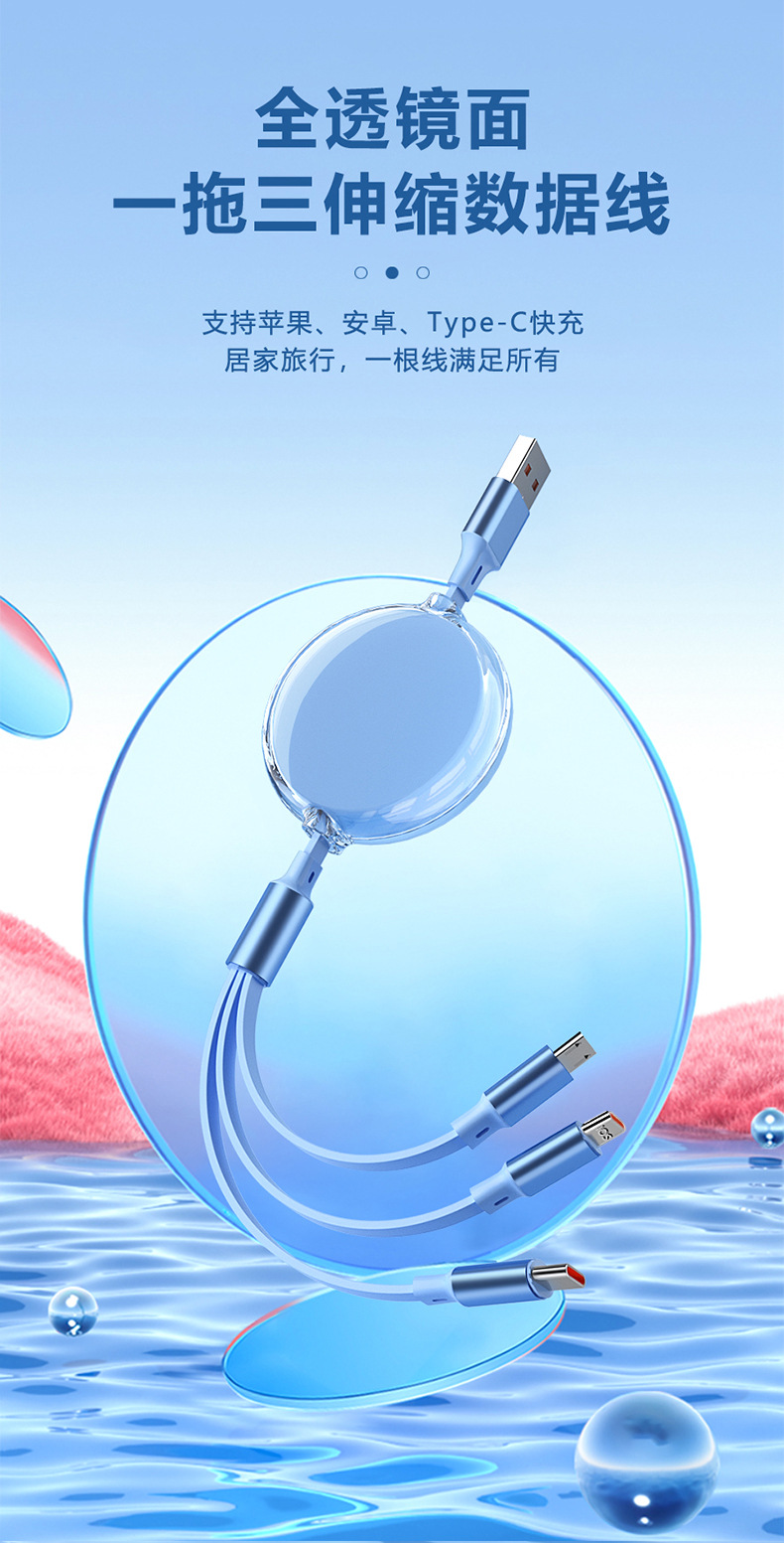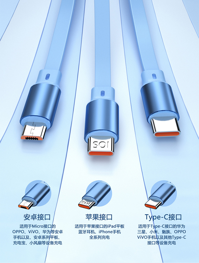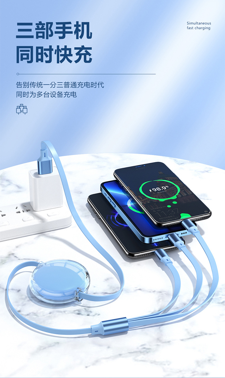 100W透明壳伸缩一拖三 适用于华为苹果安卓 三合一6A快充数据线