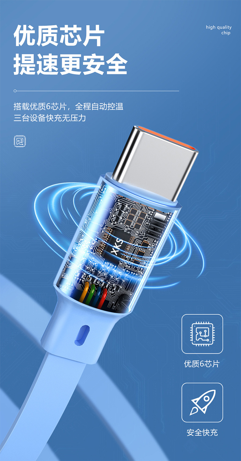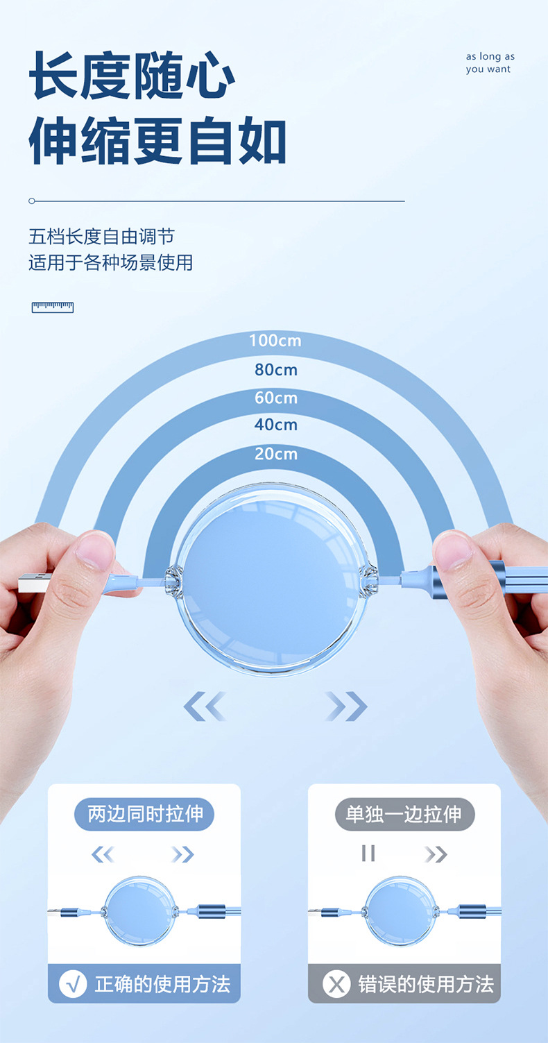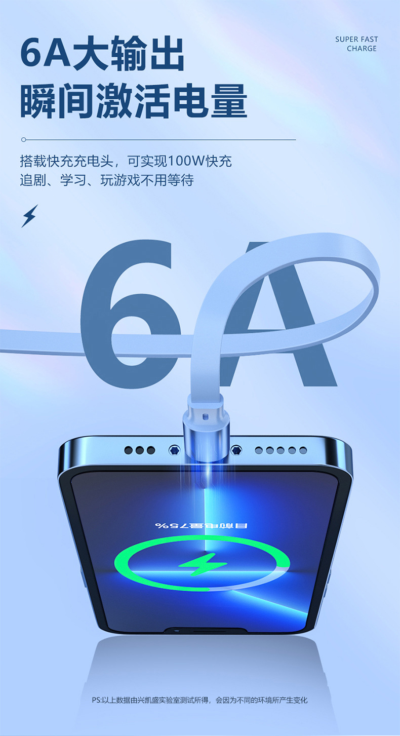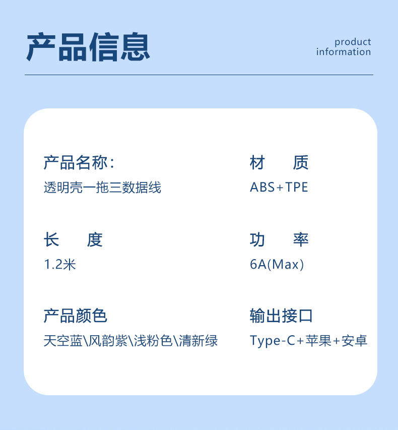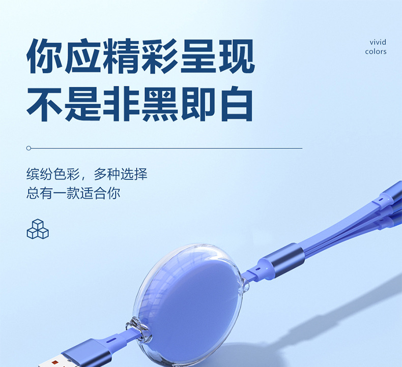 100W透明壳伸缩一拖三 适用于华为苹果安卓 三合一6A快充数据线
