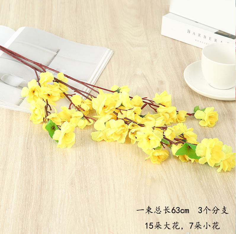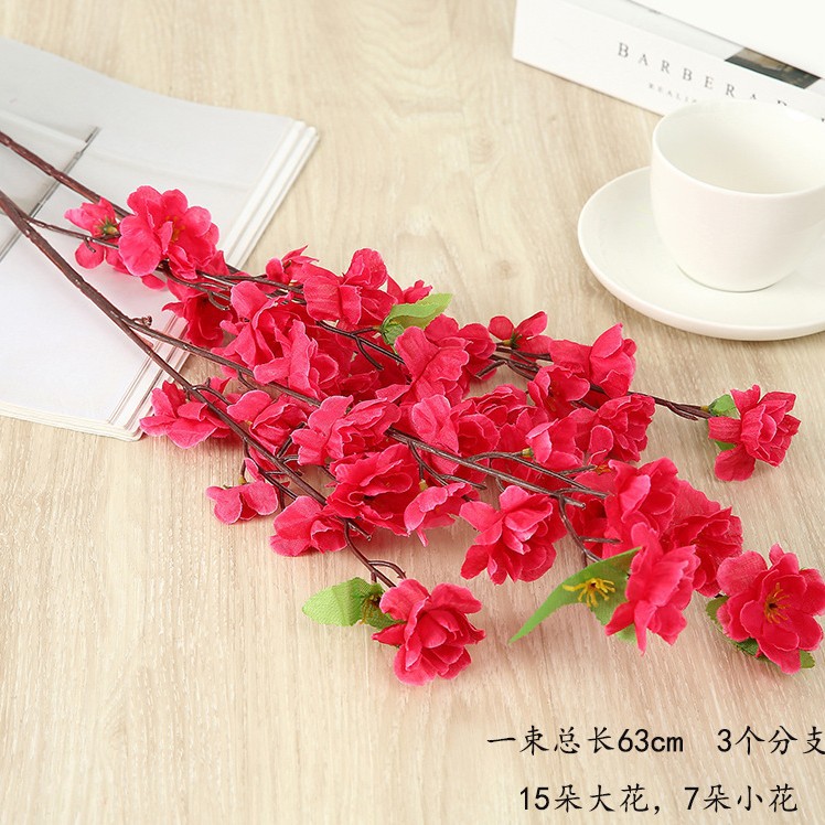 仿真花桃花园林景观桃花枝仿真梅花枝婚庆家居装饰假花绢花批发