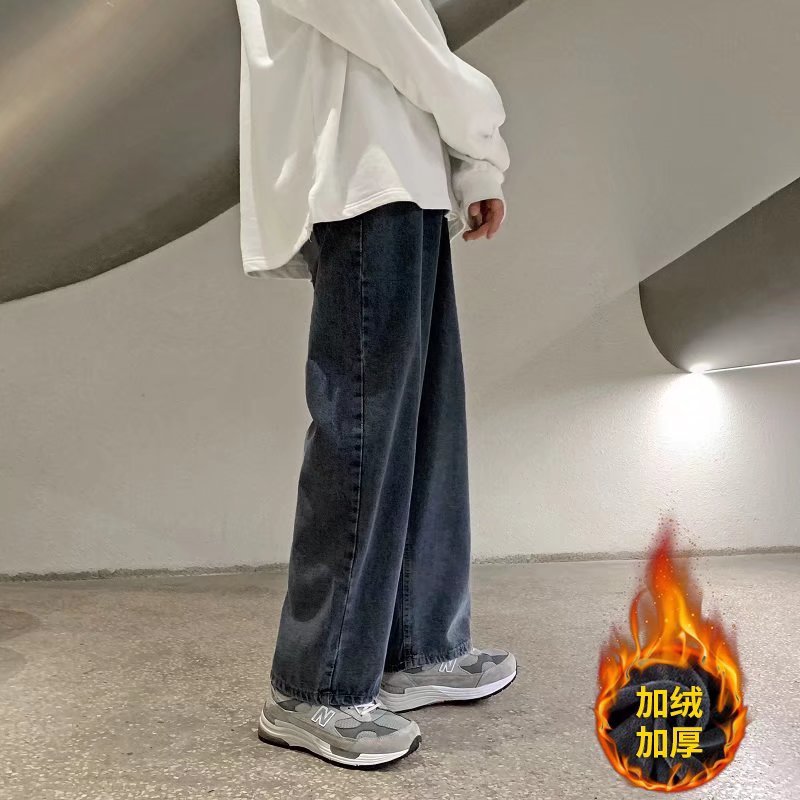 港风复古牛仔裤男宽松直简阔腿裤ins青年韩版潮流水洗拖地长裤子