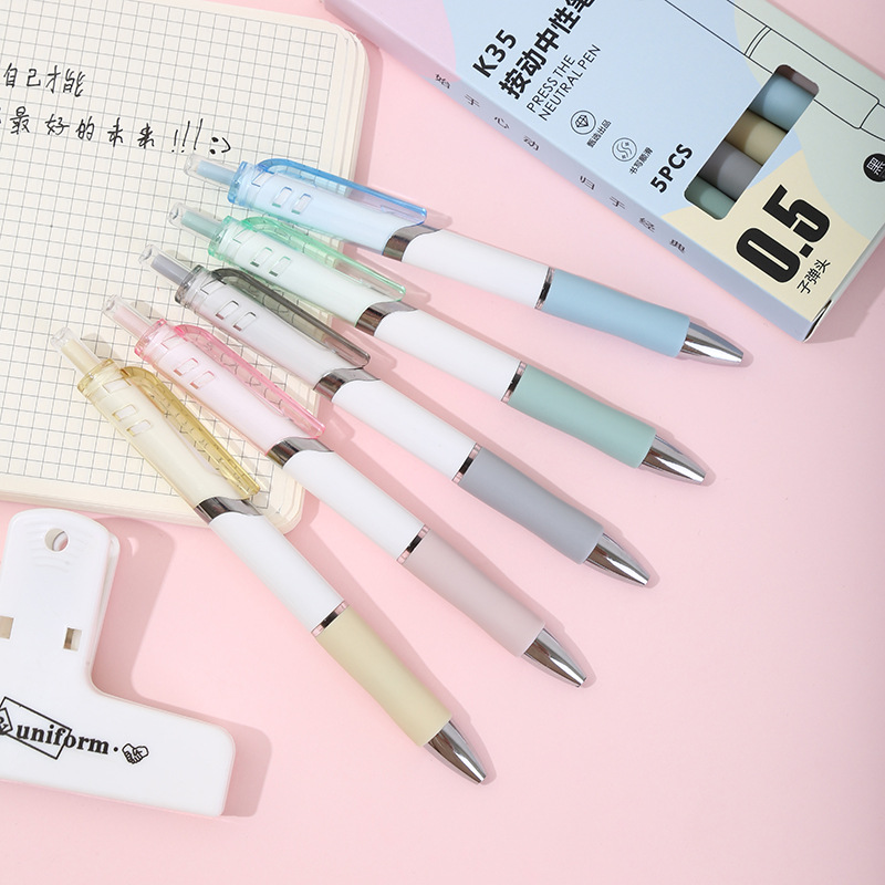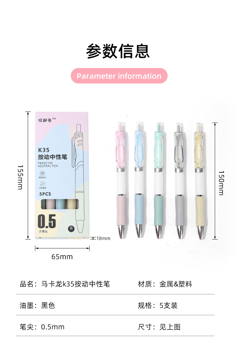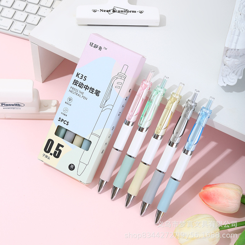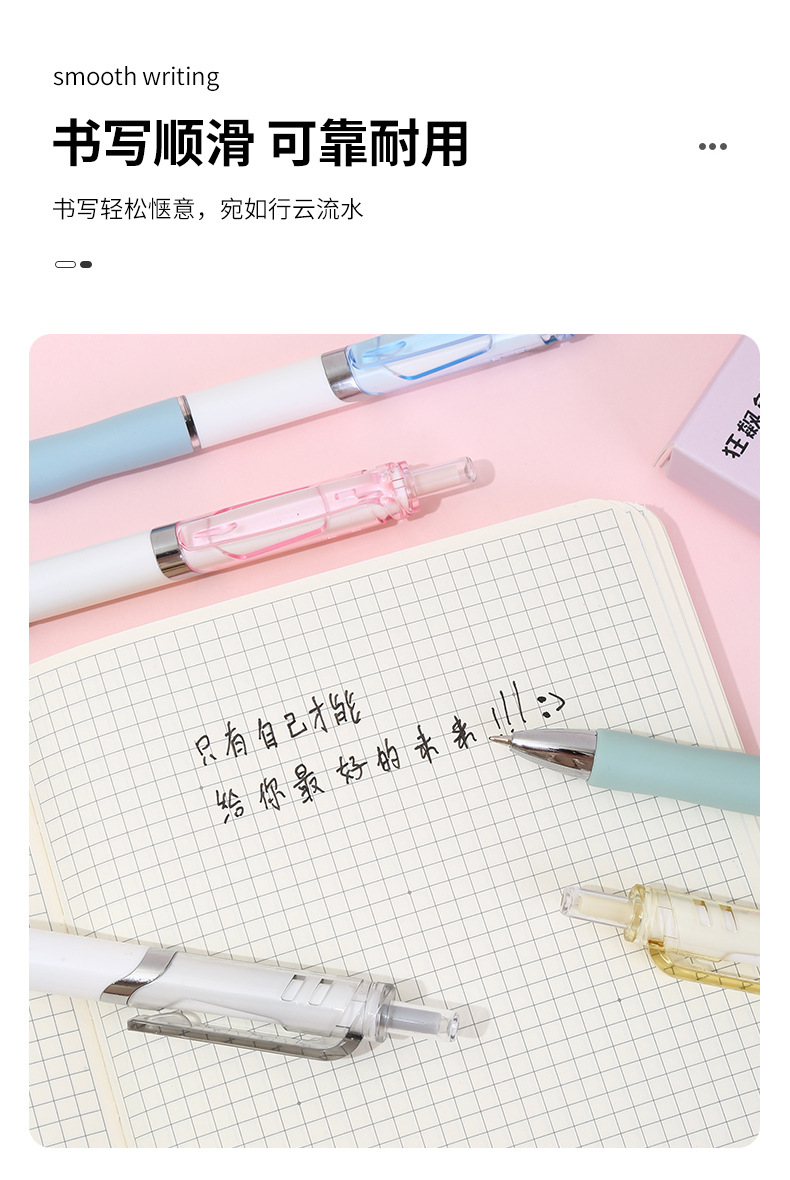 K35大容量刷题笔莫兰迪限定-速干按动中性笔子弹头学生黑色盒装笔