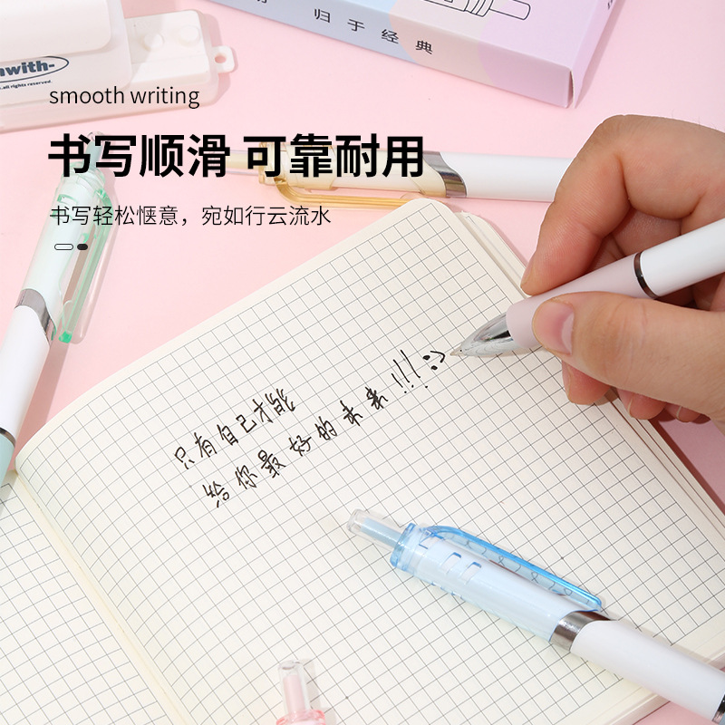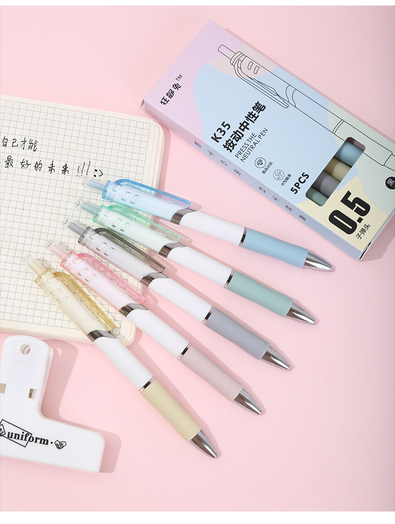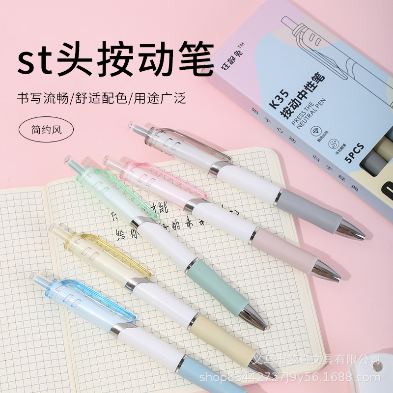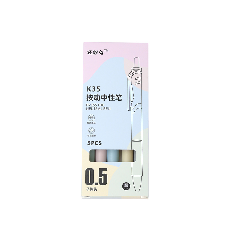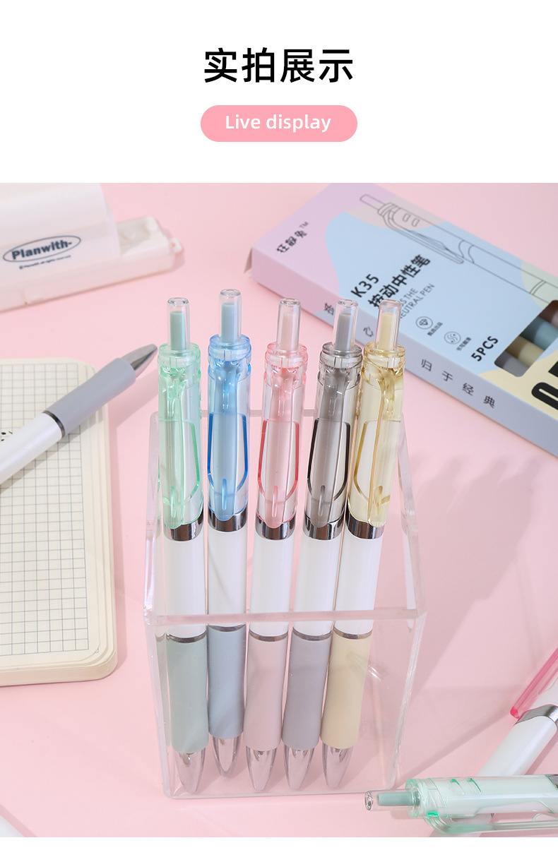 K35大容量刷题笔莫兰迪限定-速干按动中性笔子弹头学生黑色盒装笔