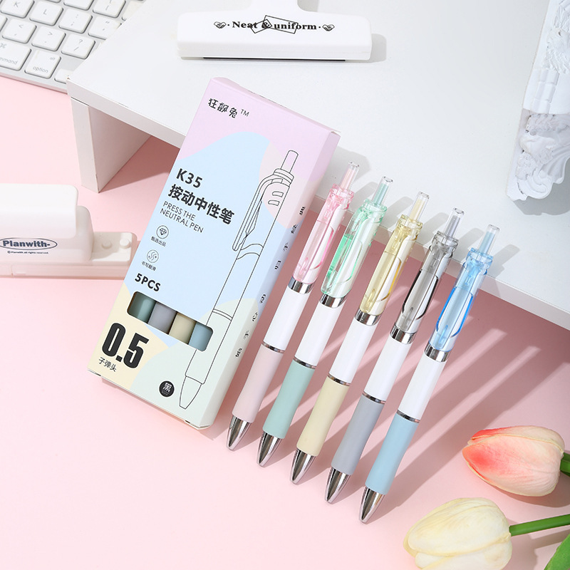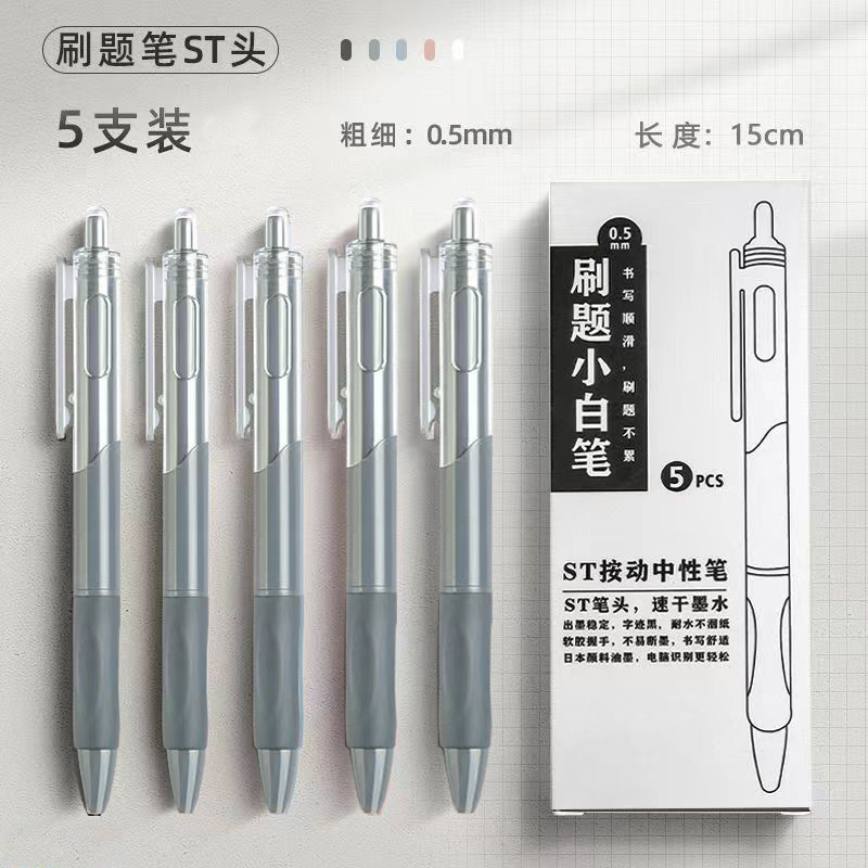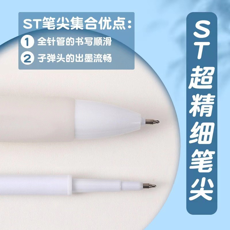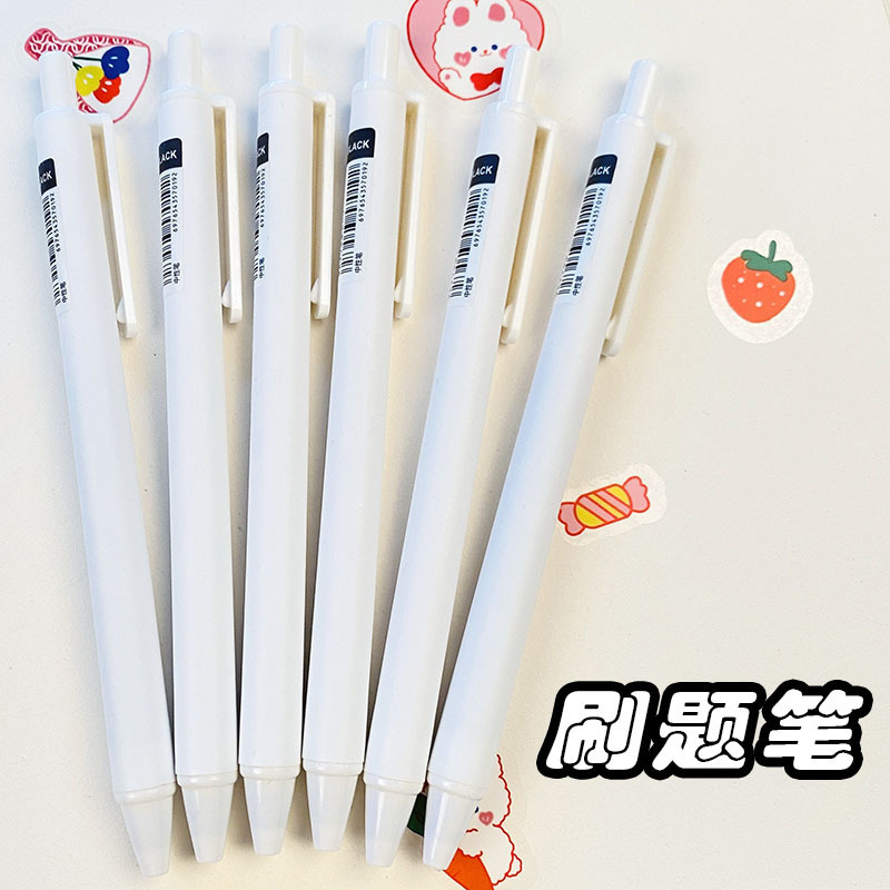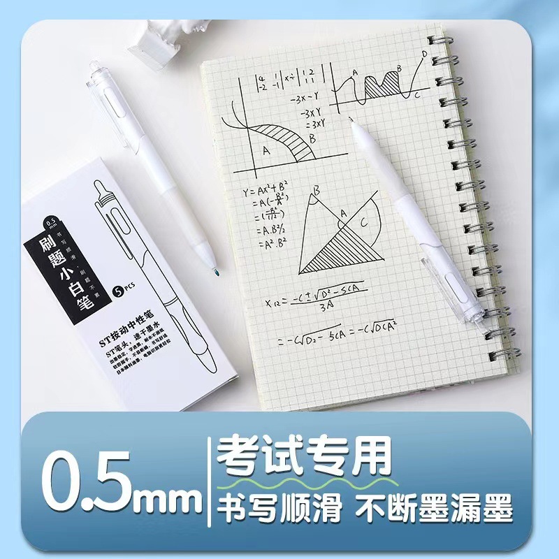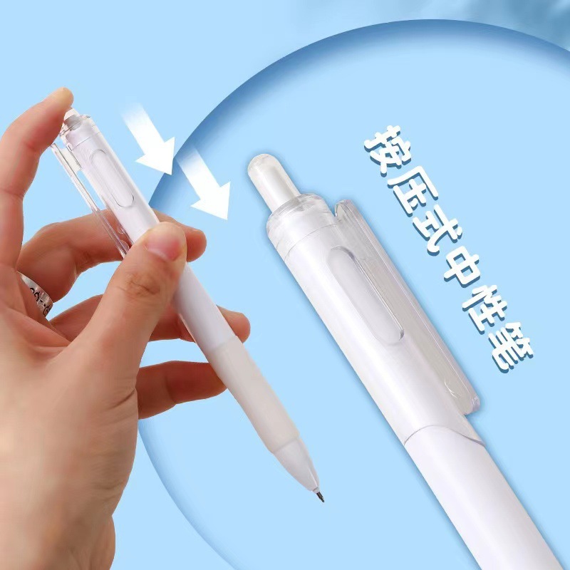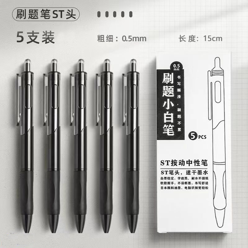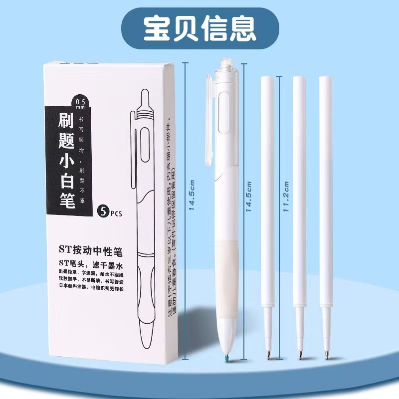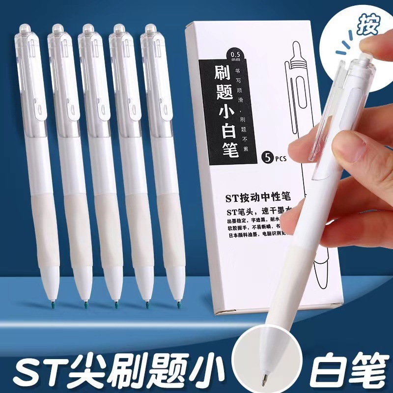 简约小白笔ST头速干墨水按动中性笔刷题笔水性笔黑色碳素水笔批发