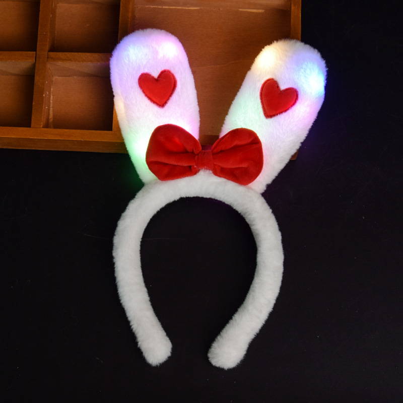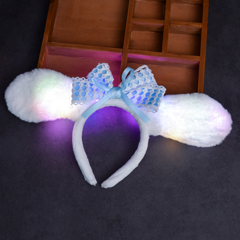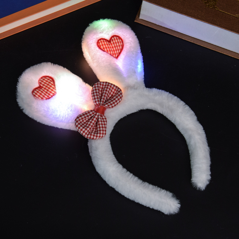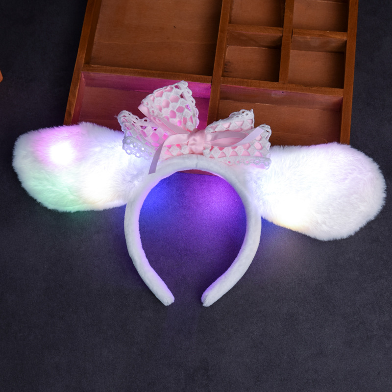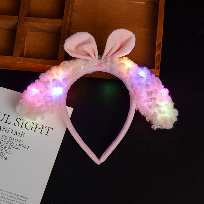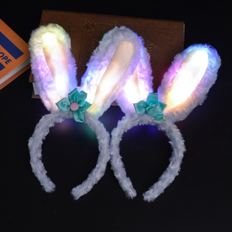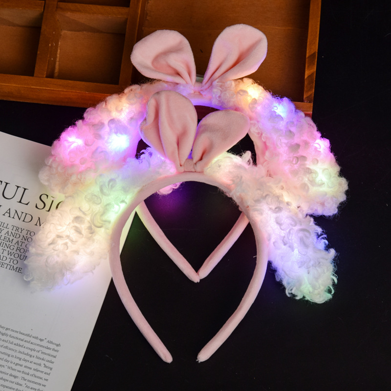 网红可爱毛绒闪光兔耳朵发箍刺绣彩灯超萌地摊发饰游乐园发光头饰