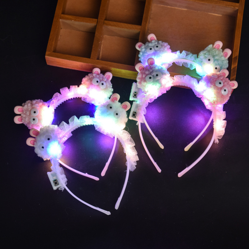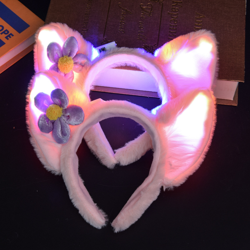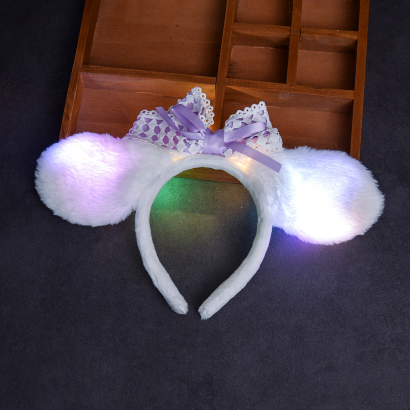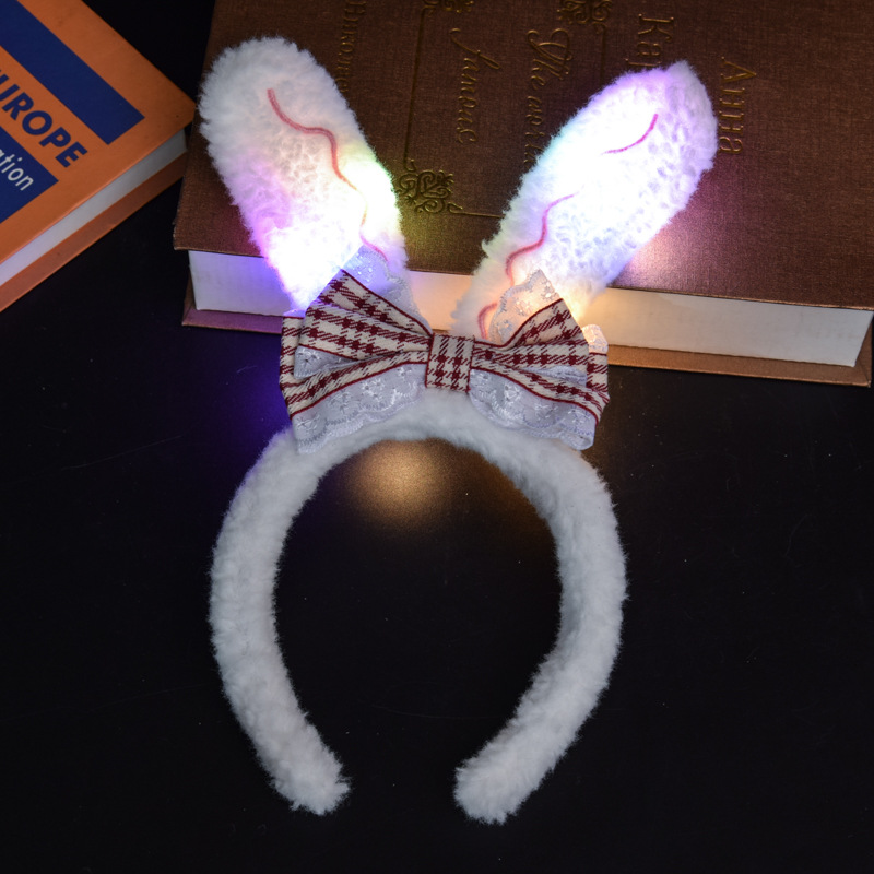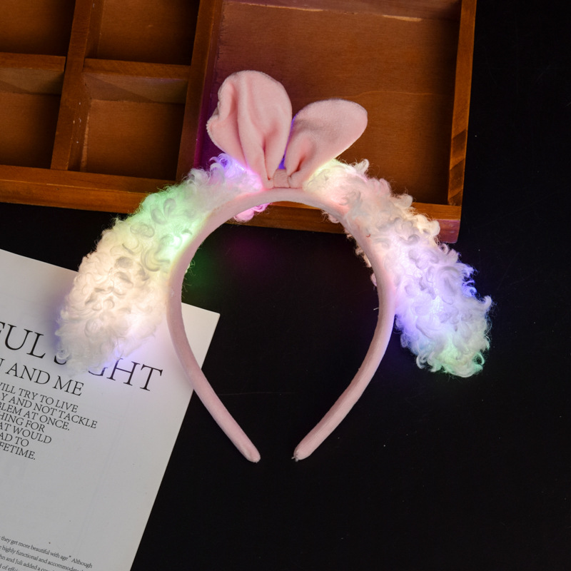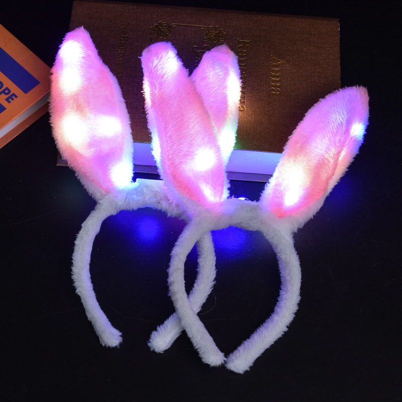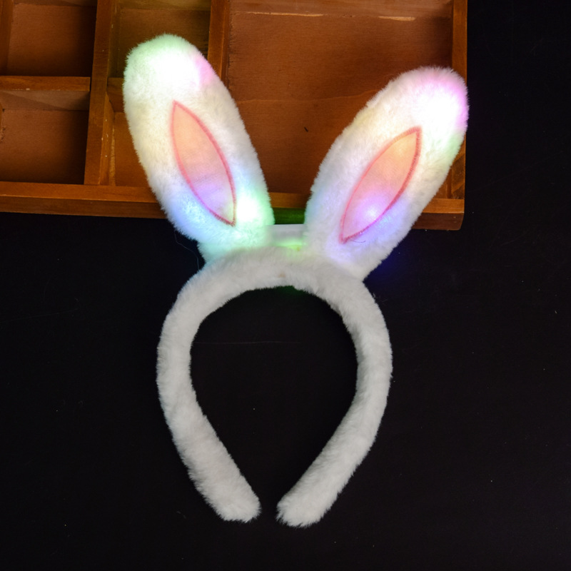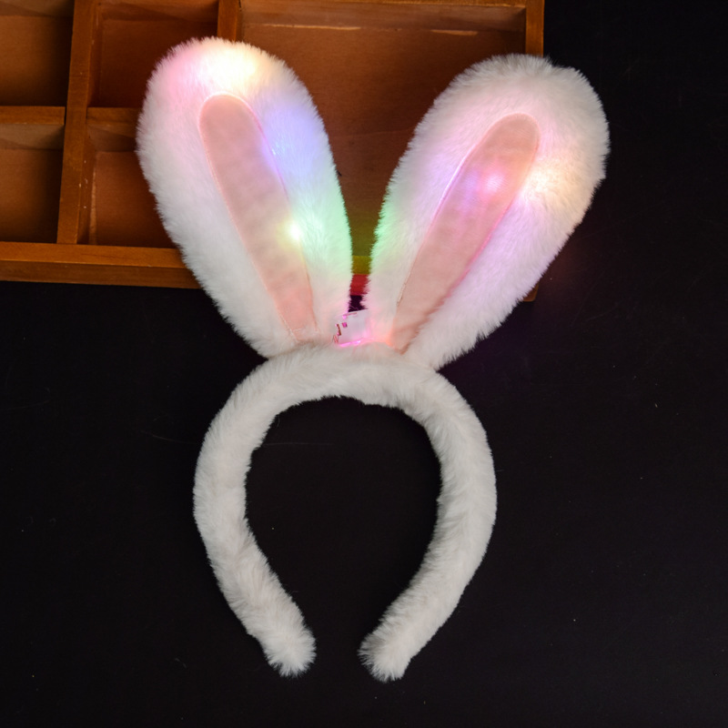 网红可爱毛绒闪光兔耳朵发箍刺绣彩灯超萌地摊发饰游乐园发光头饰