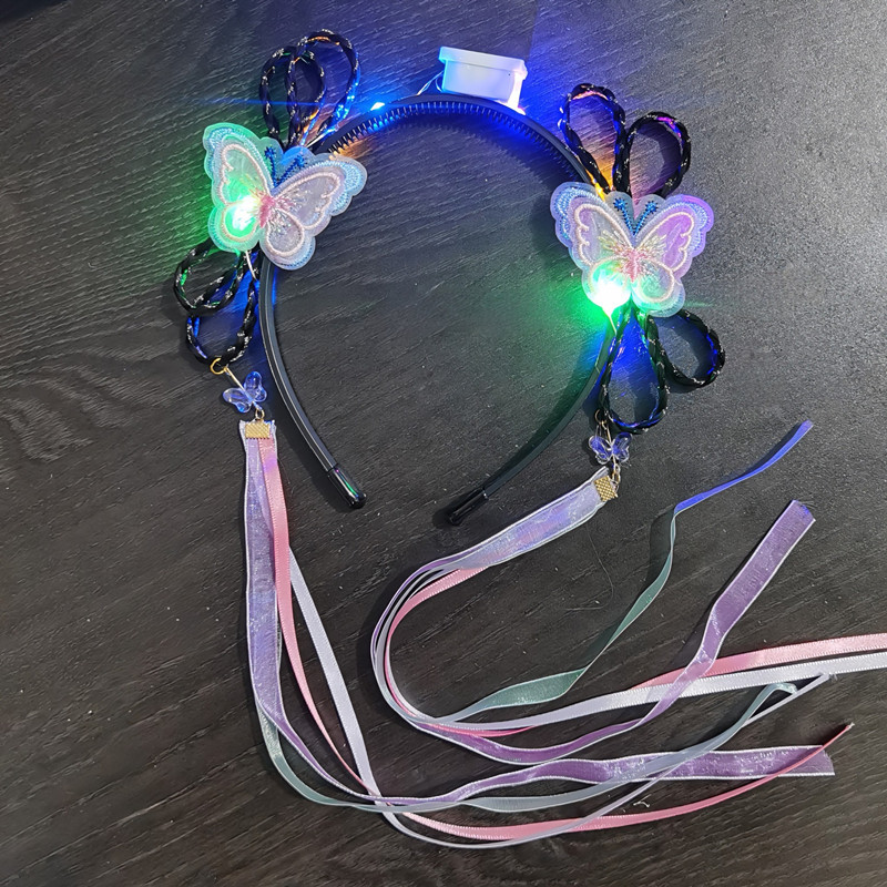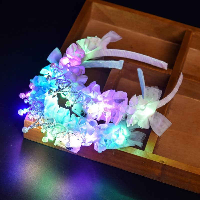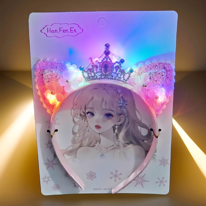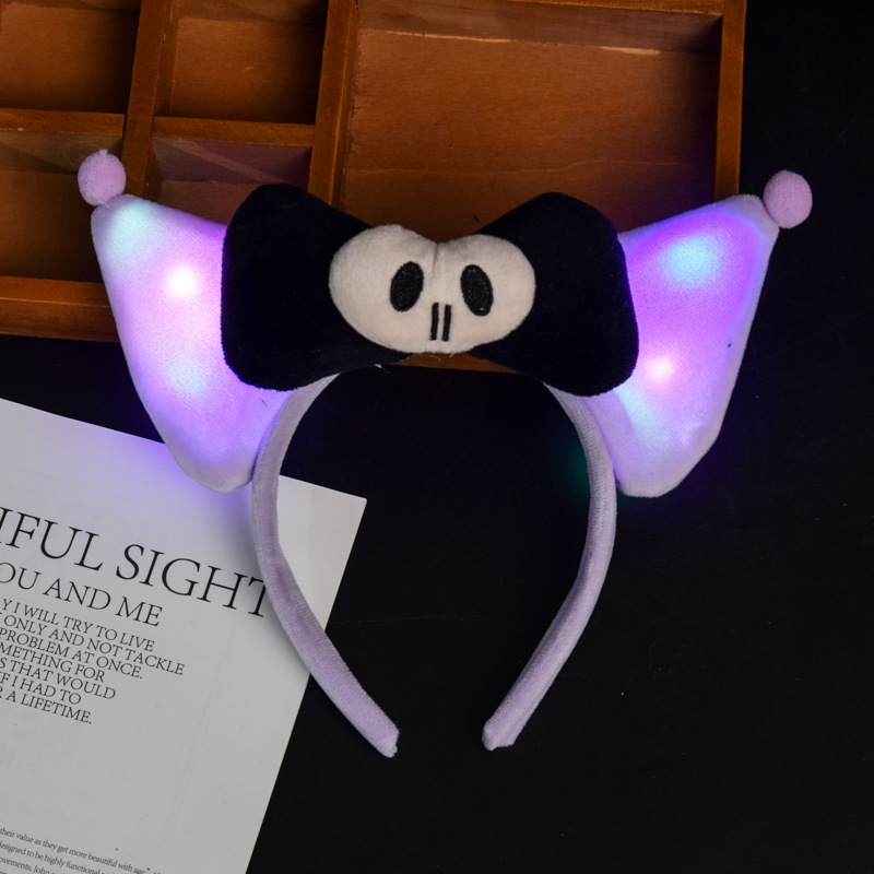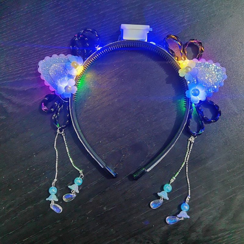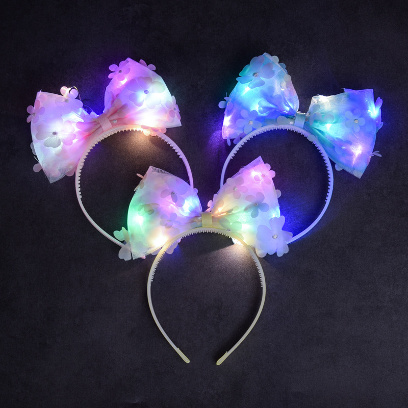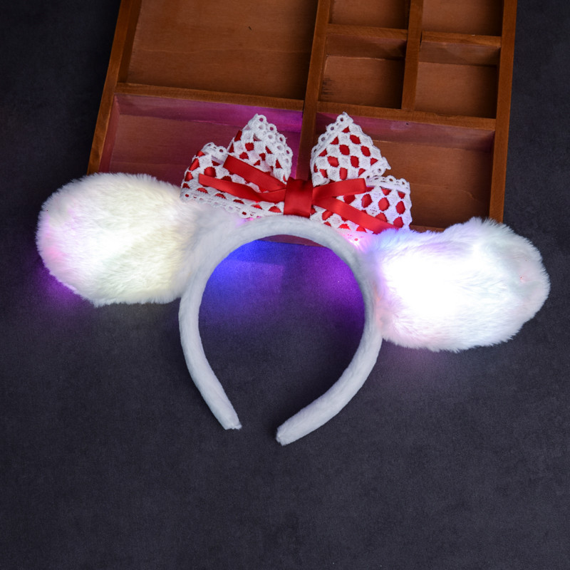 网红可爱毛绒闪光兔耳朵发箍刺绣彩灯超萌地摊发饰游乐园发光头饰
