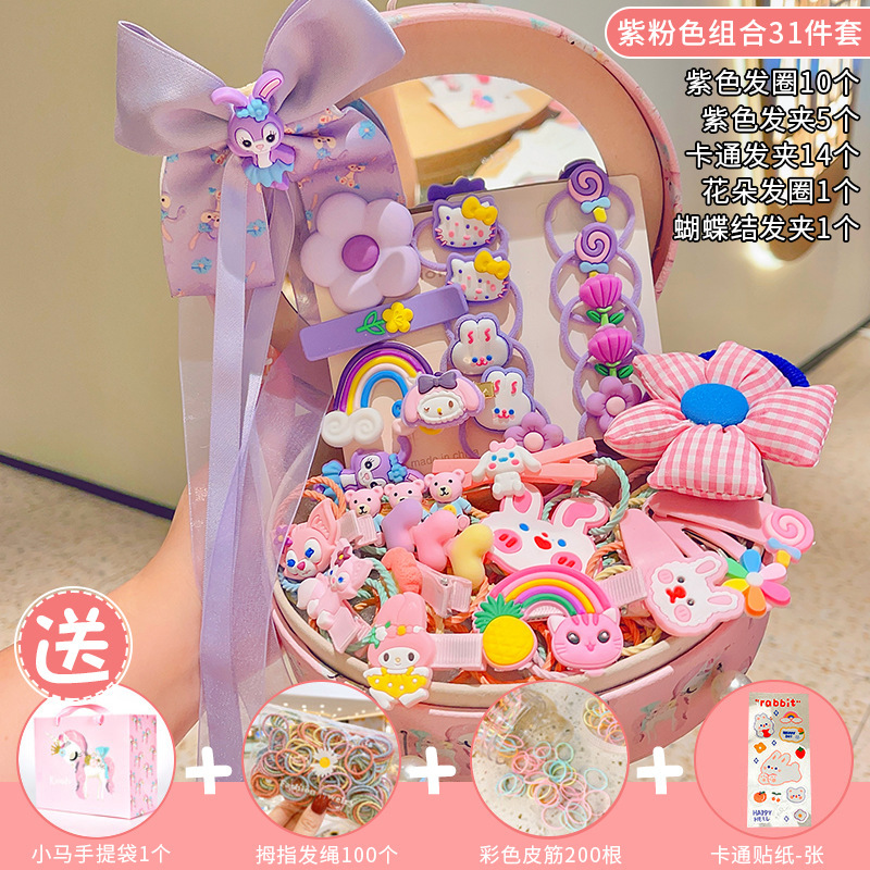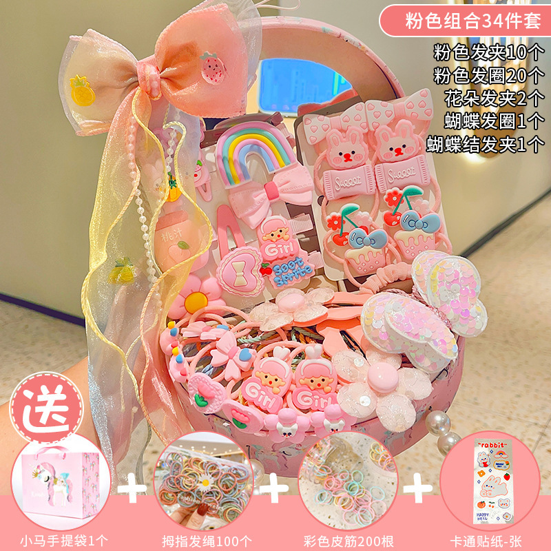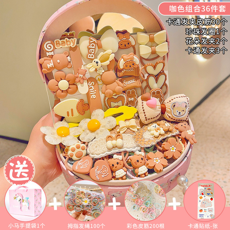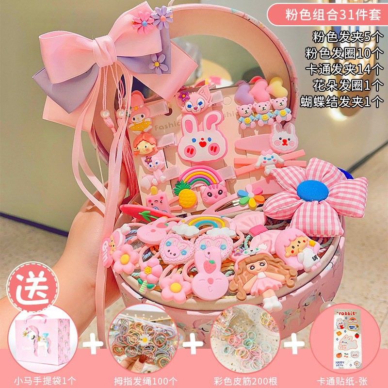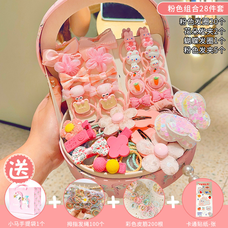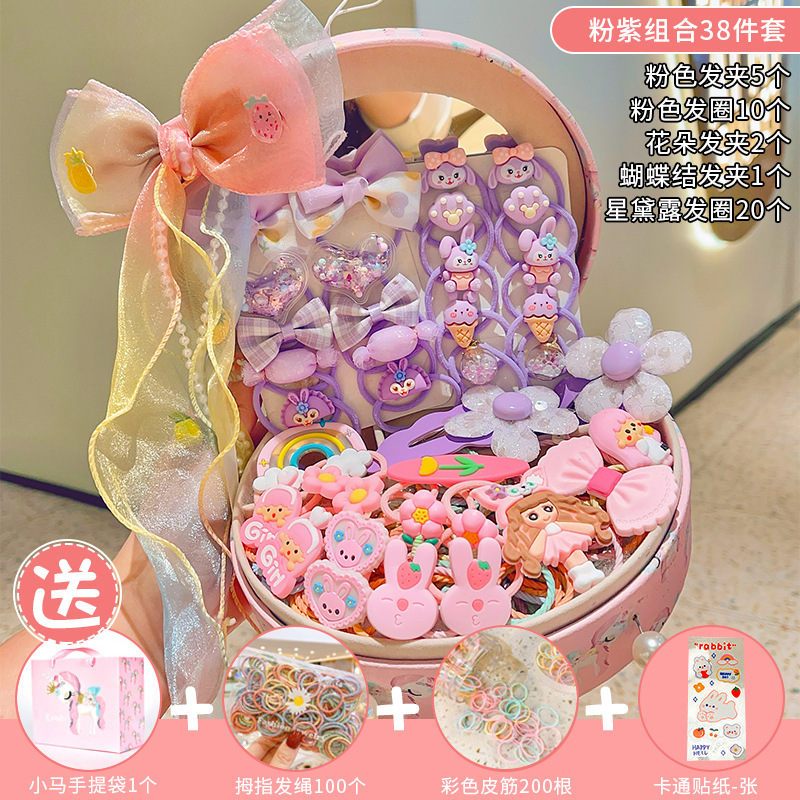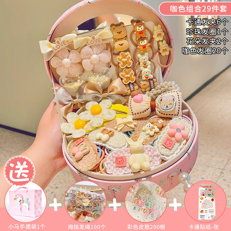 韩式儿童发饰礼盒套装宝宝发夹可爱小公主首饰盒生日发卡皮筋头饰