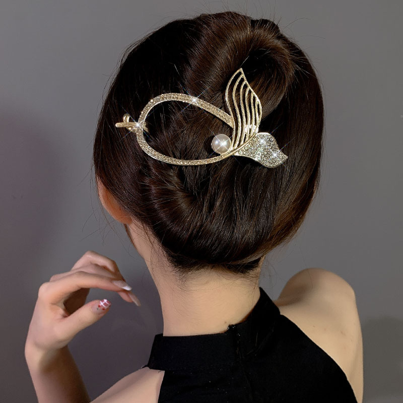 高级感鱼尾发夹女后脑勺盘发抓夹气质一字夹青蛙扣扭扭夹发卡头饰