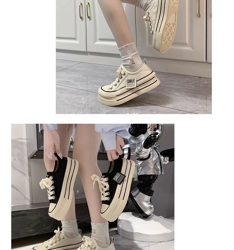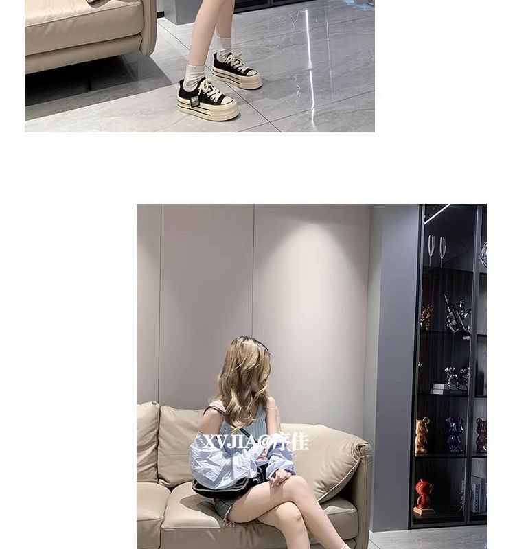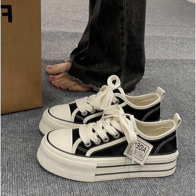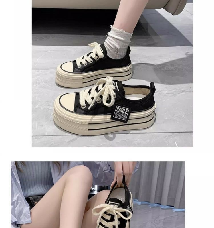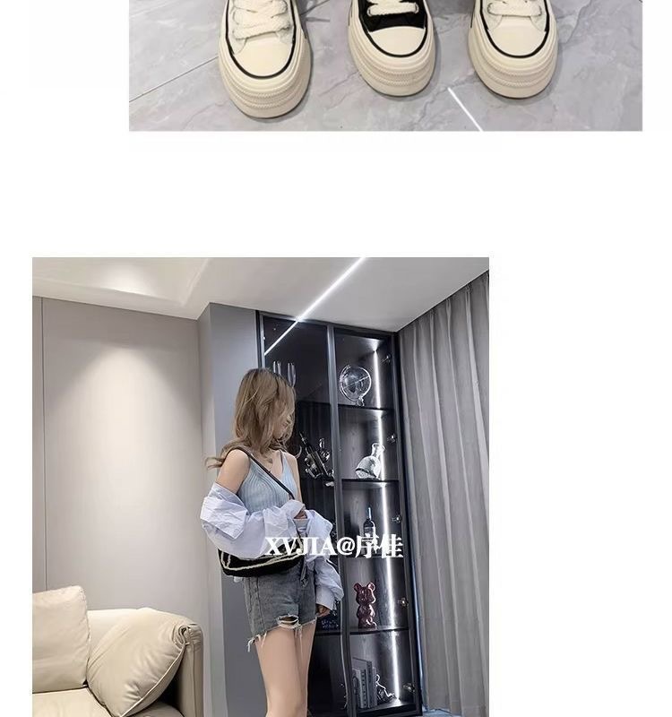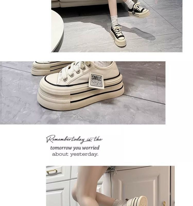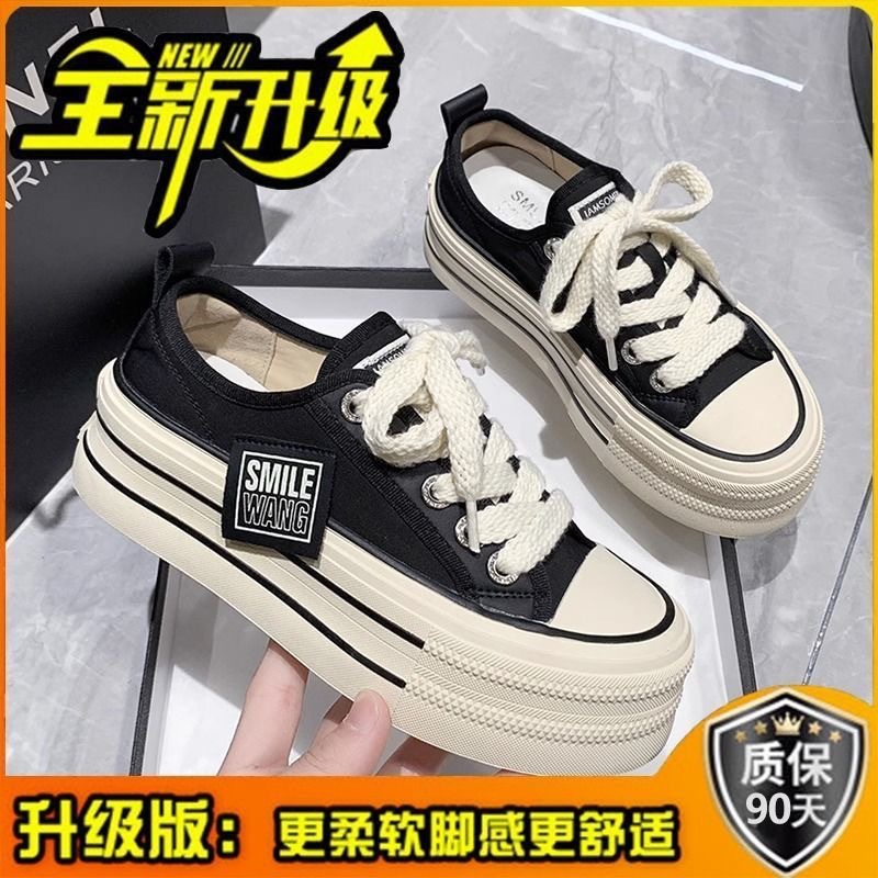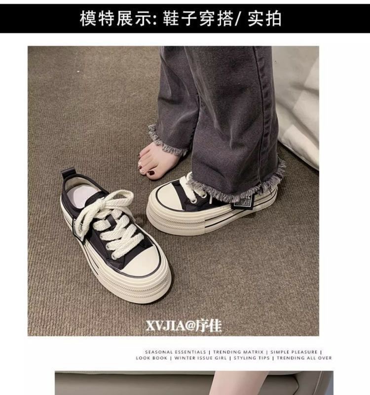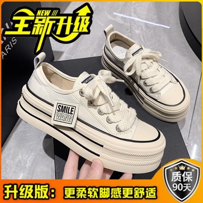 经典帆布鞋女2024新款春秋韩版松糕厚底小白鞋女ins潮小众板鞋子