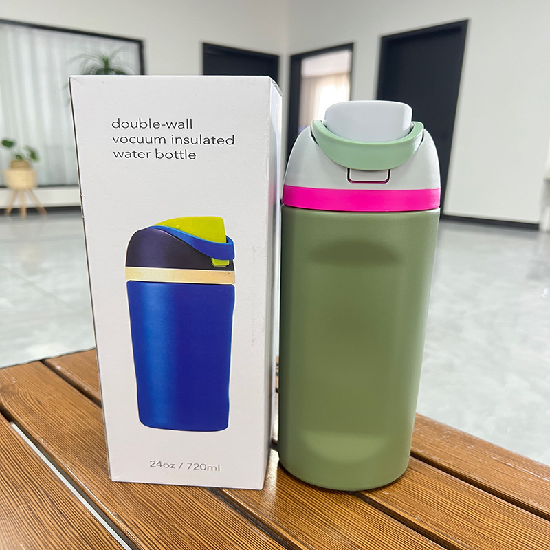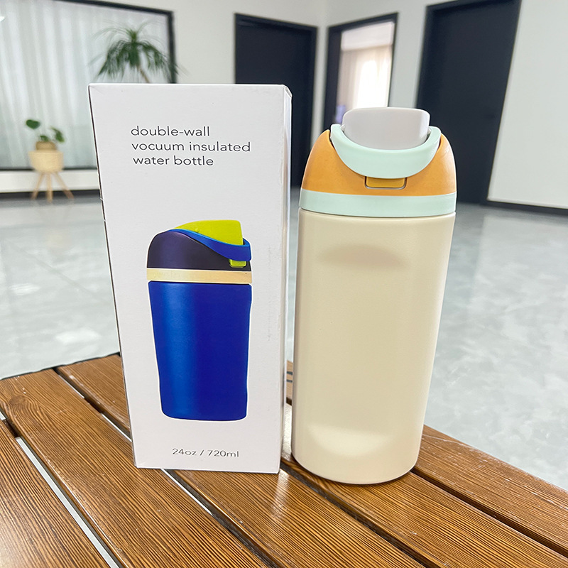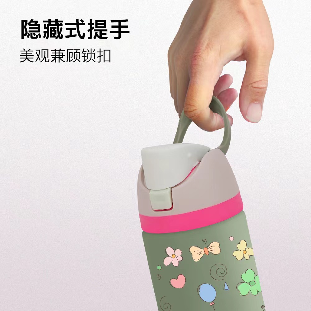 304不锈钢马卡龙色保温杯带提手运动水杯大容量吸管水果杯批发