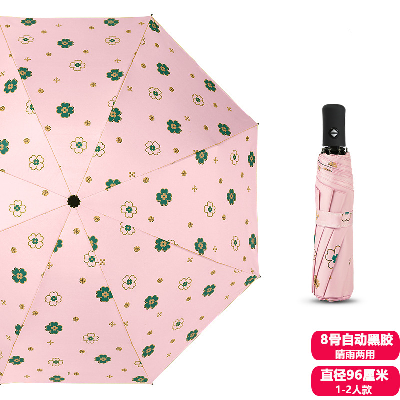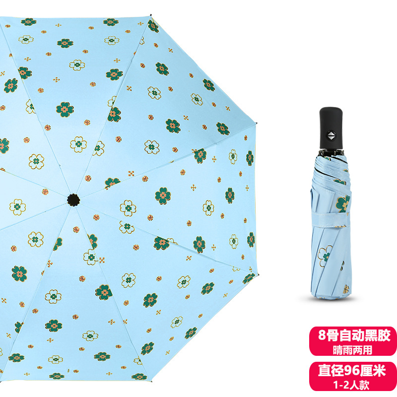 全自动UV三折伞黑胶防晒防紫外线遮阳伞定广告伞自动伞LOGO雨伞女