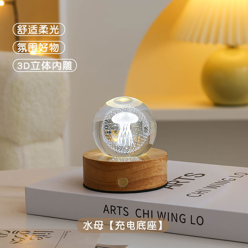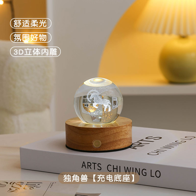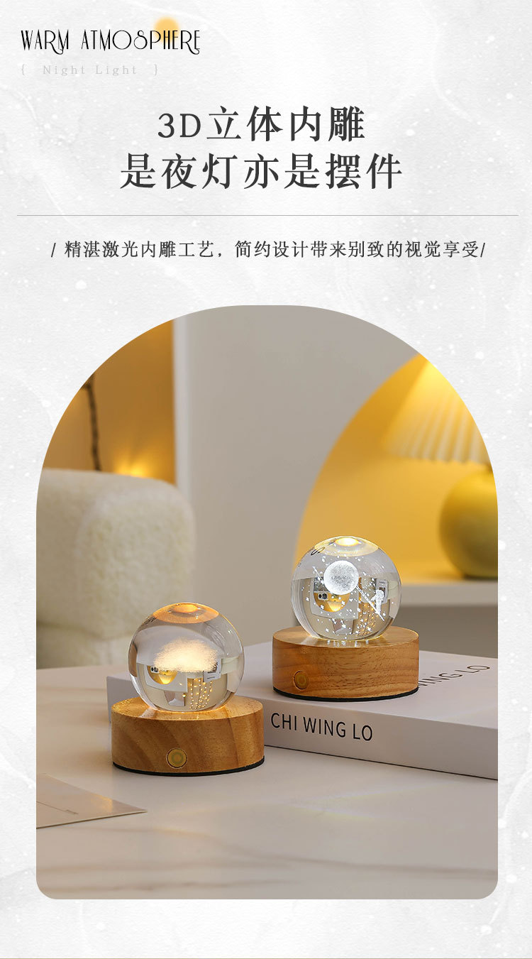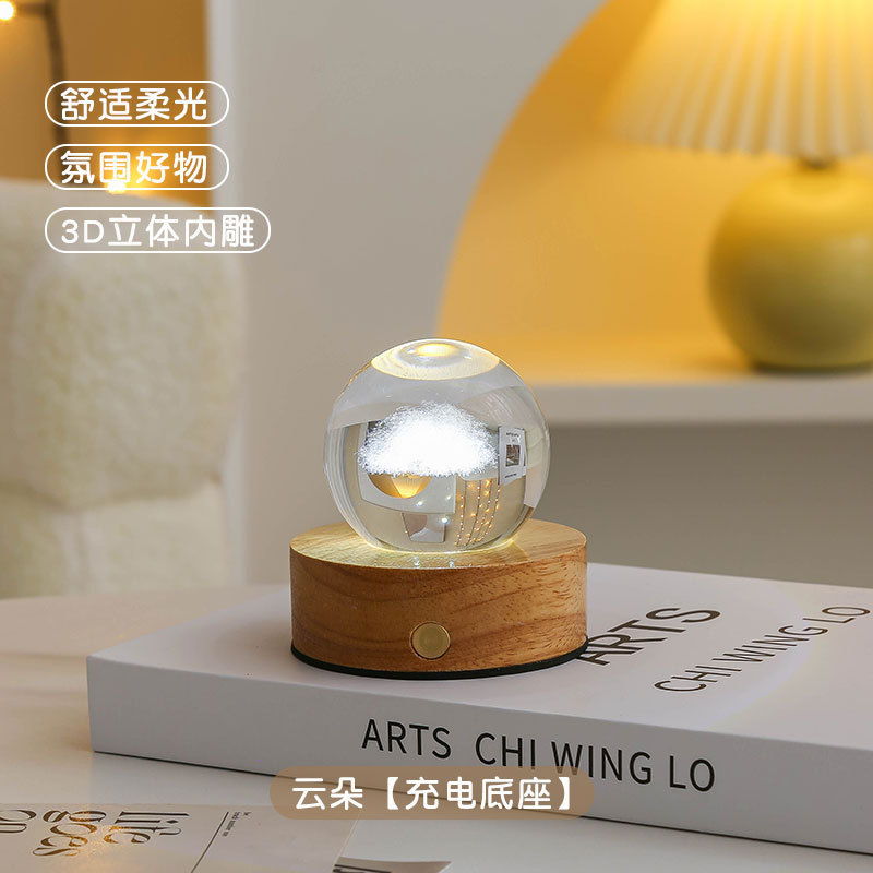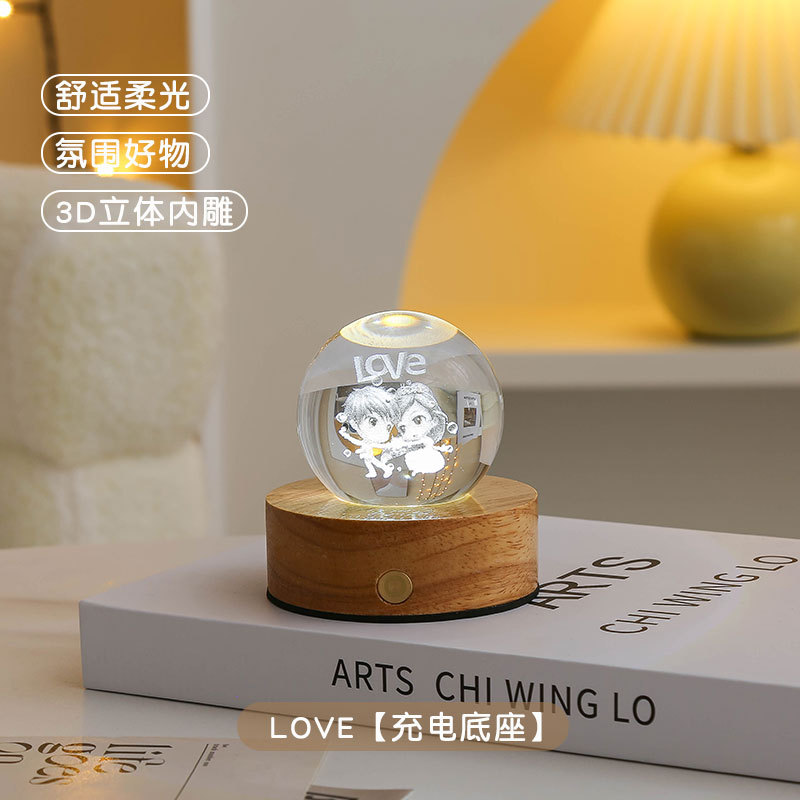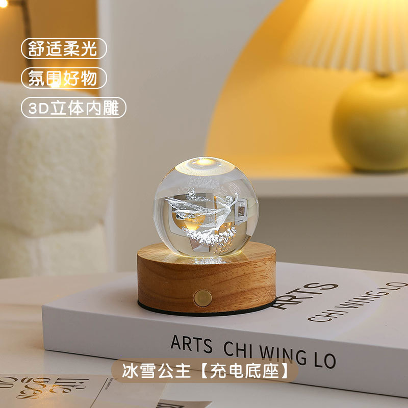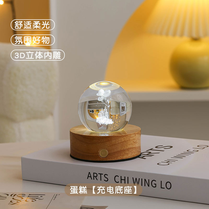 创意水晶球小夜灯立方体情侣氛围灯圆球高级感卧室床头灯摆件礼物