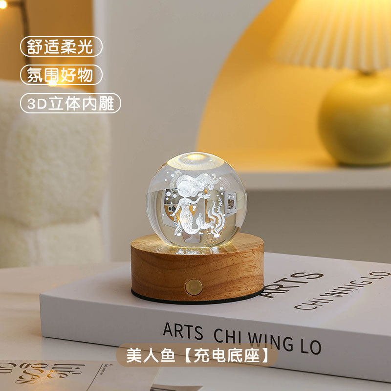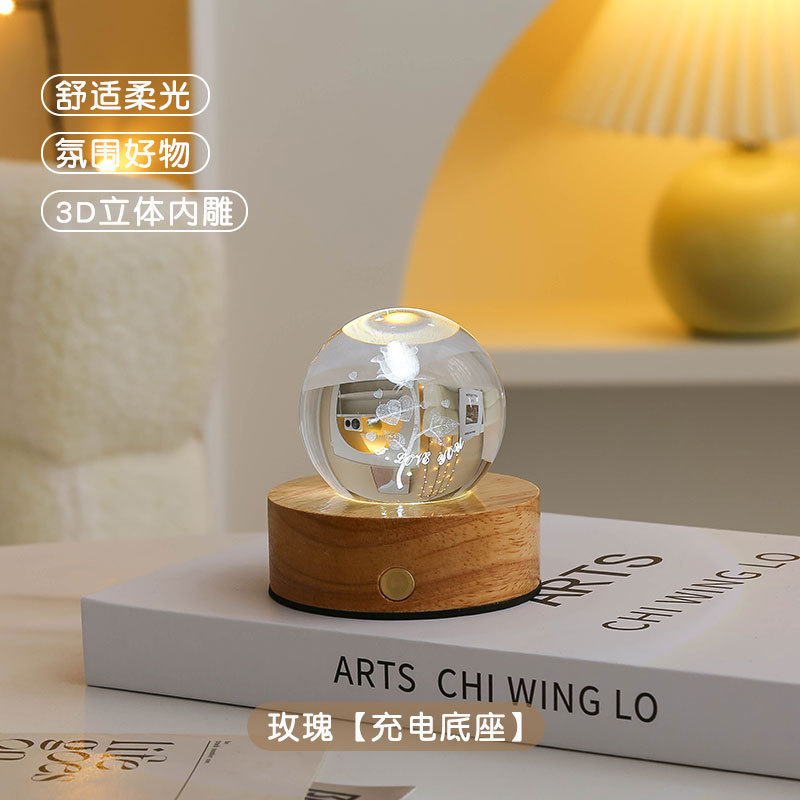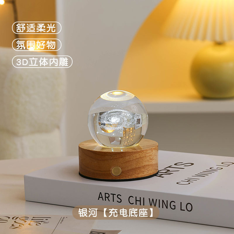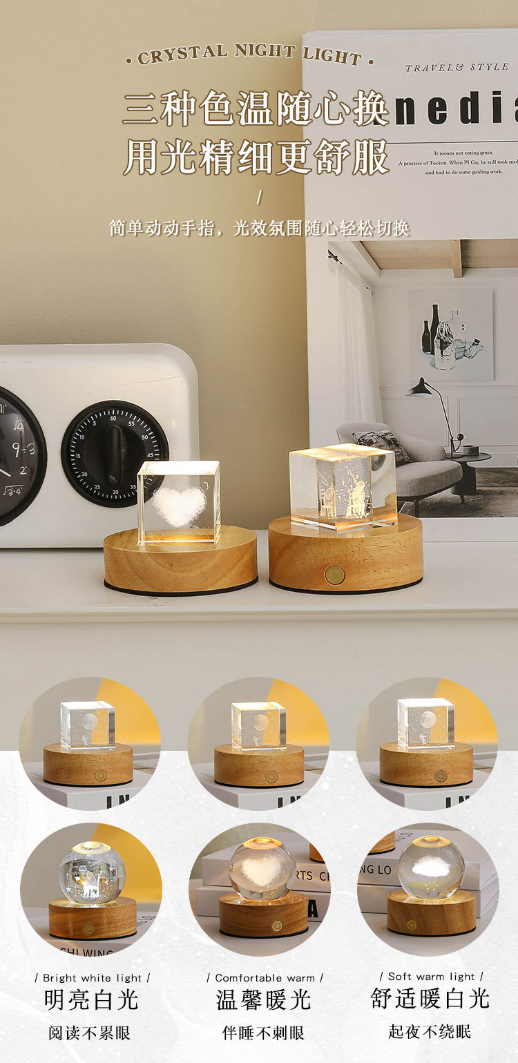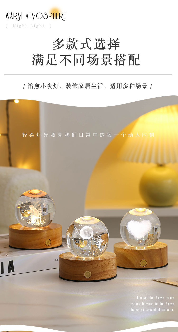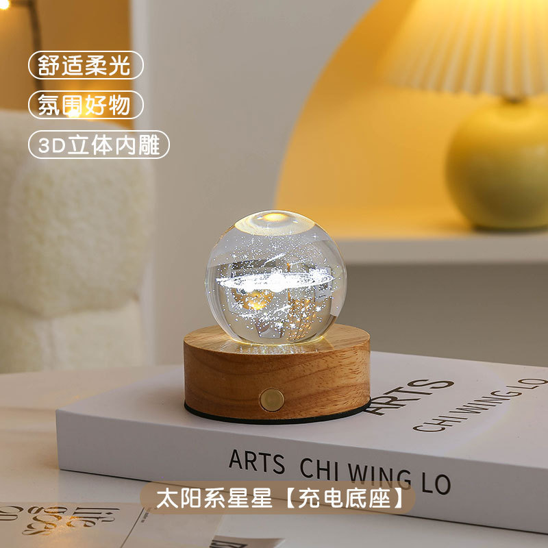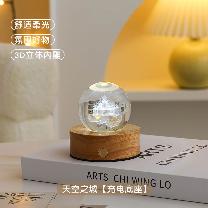 创意水晶球小夜灯立方体情侣氛围灯圆球高级感卧室床头灯摆件礼物