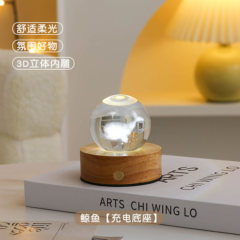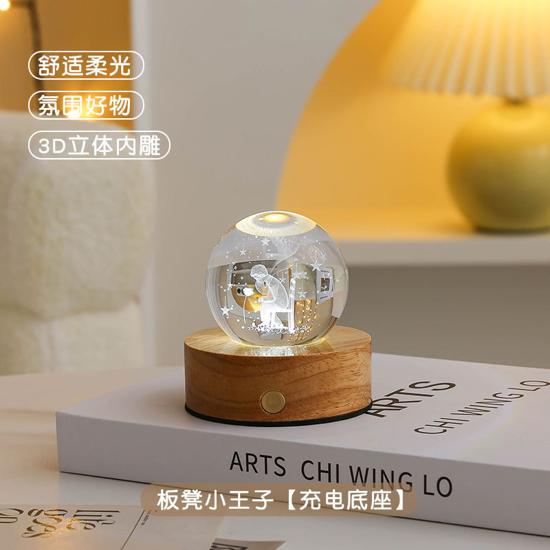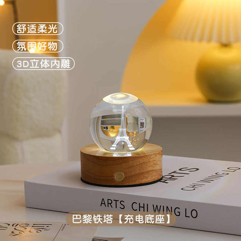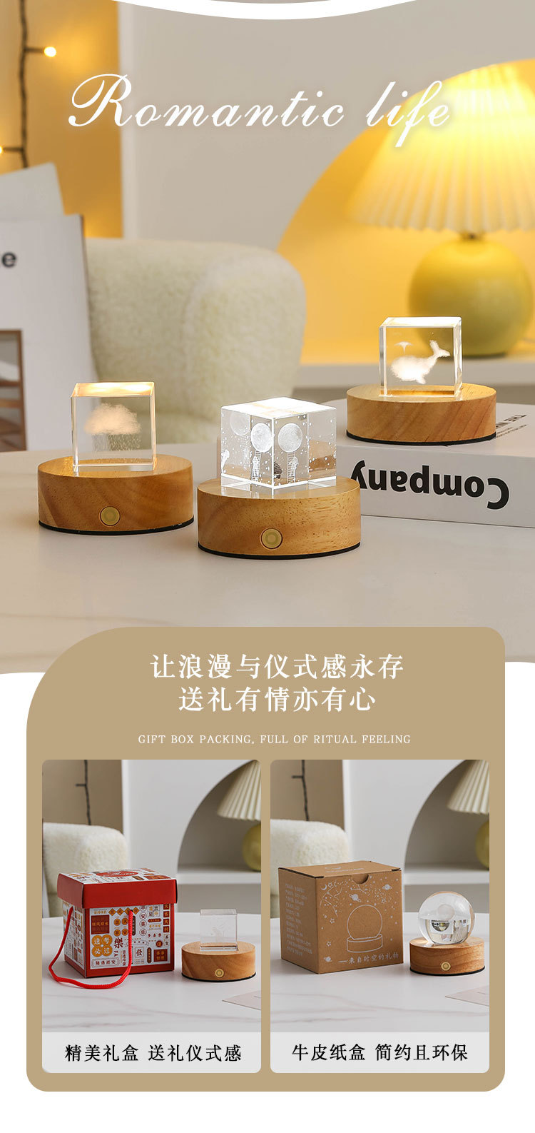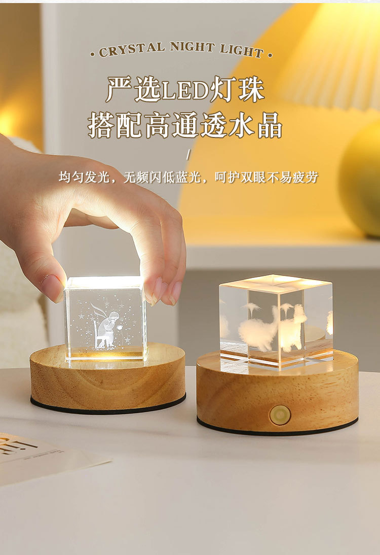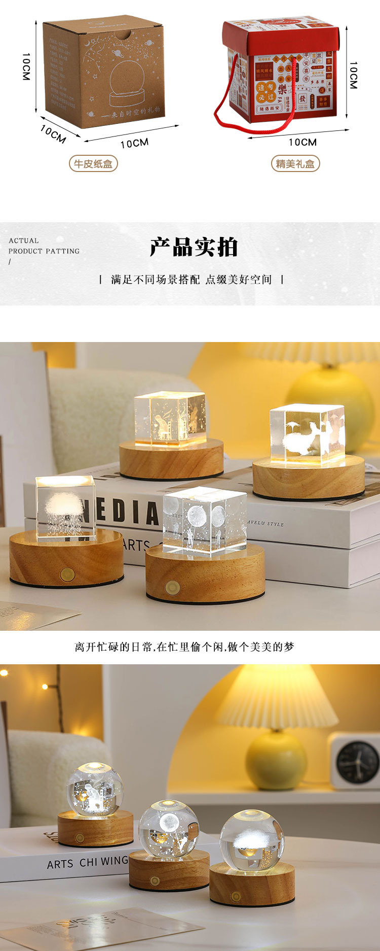 创意水晶球小夜灯立方体情侣氛围灯圆球高级感卧室床头灯摆件礼物
