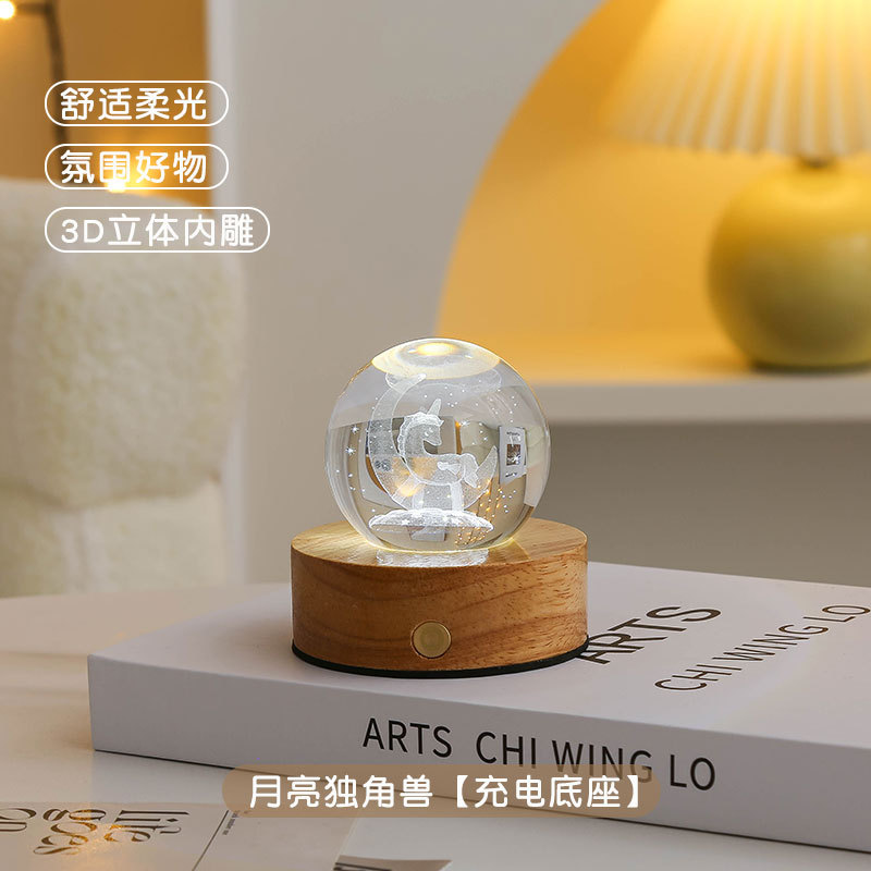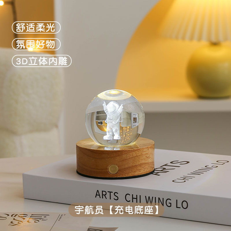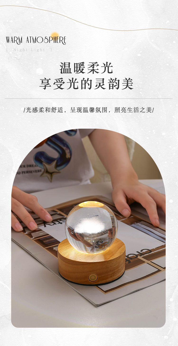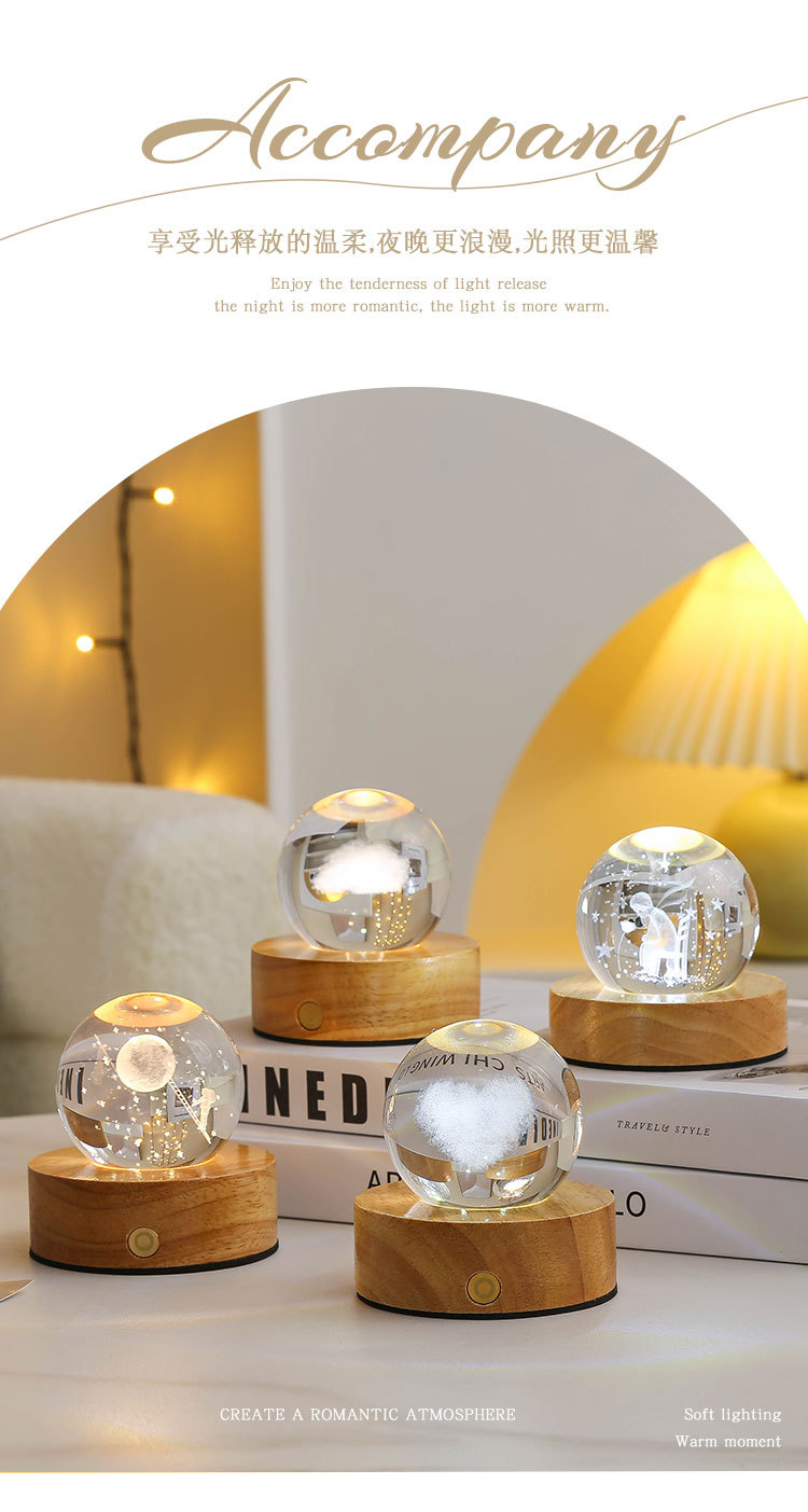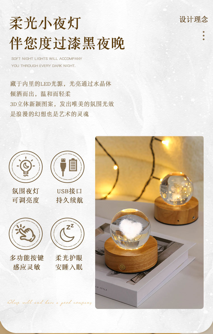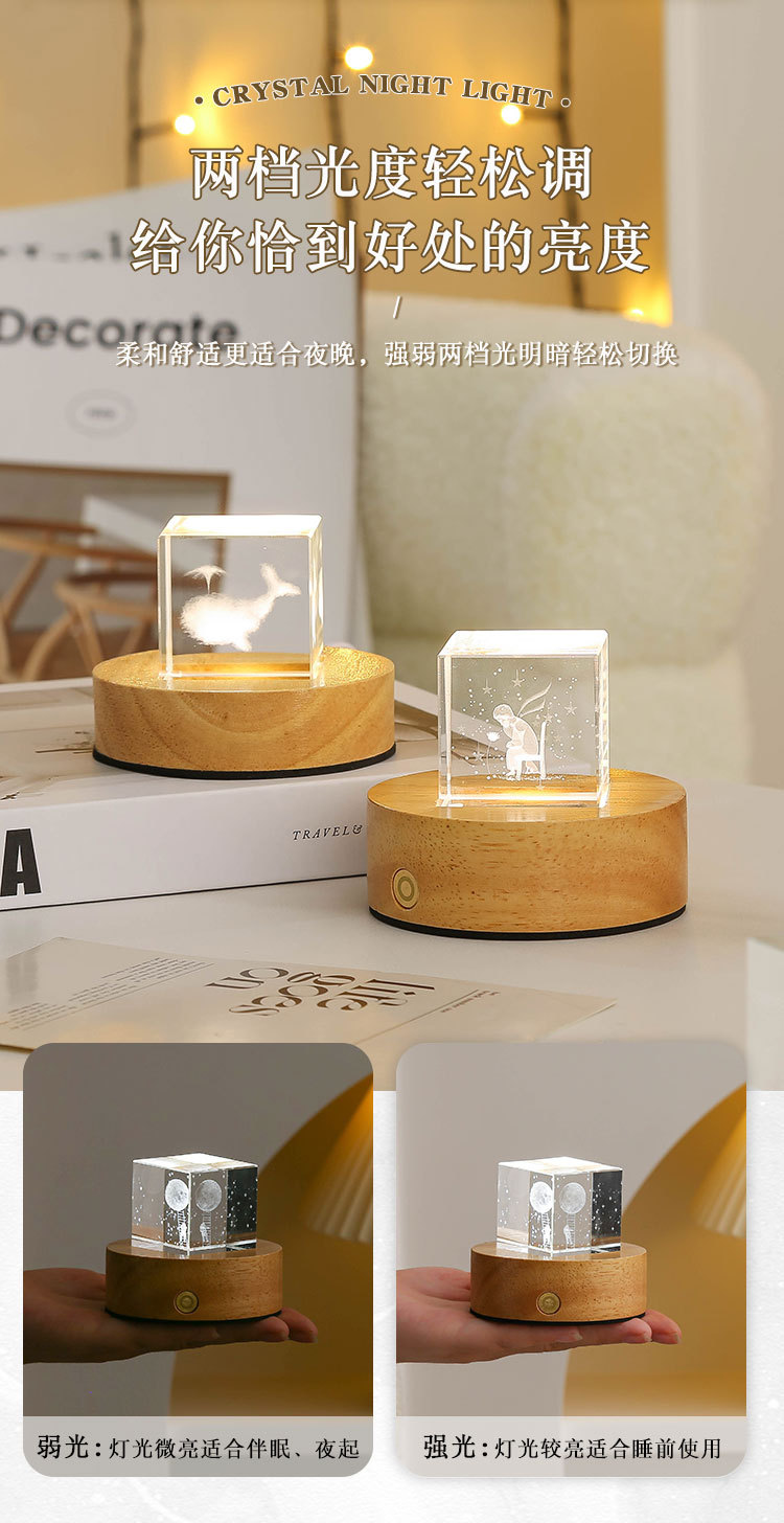 创意水晶球小夜灯立方体情侣氛围灯圆球高级感卧室床头灯摆件礼物
