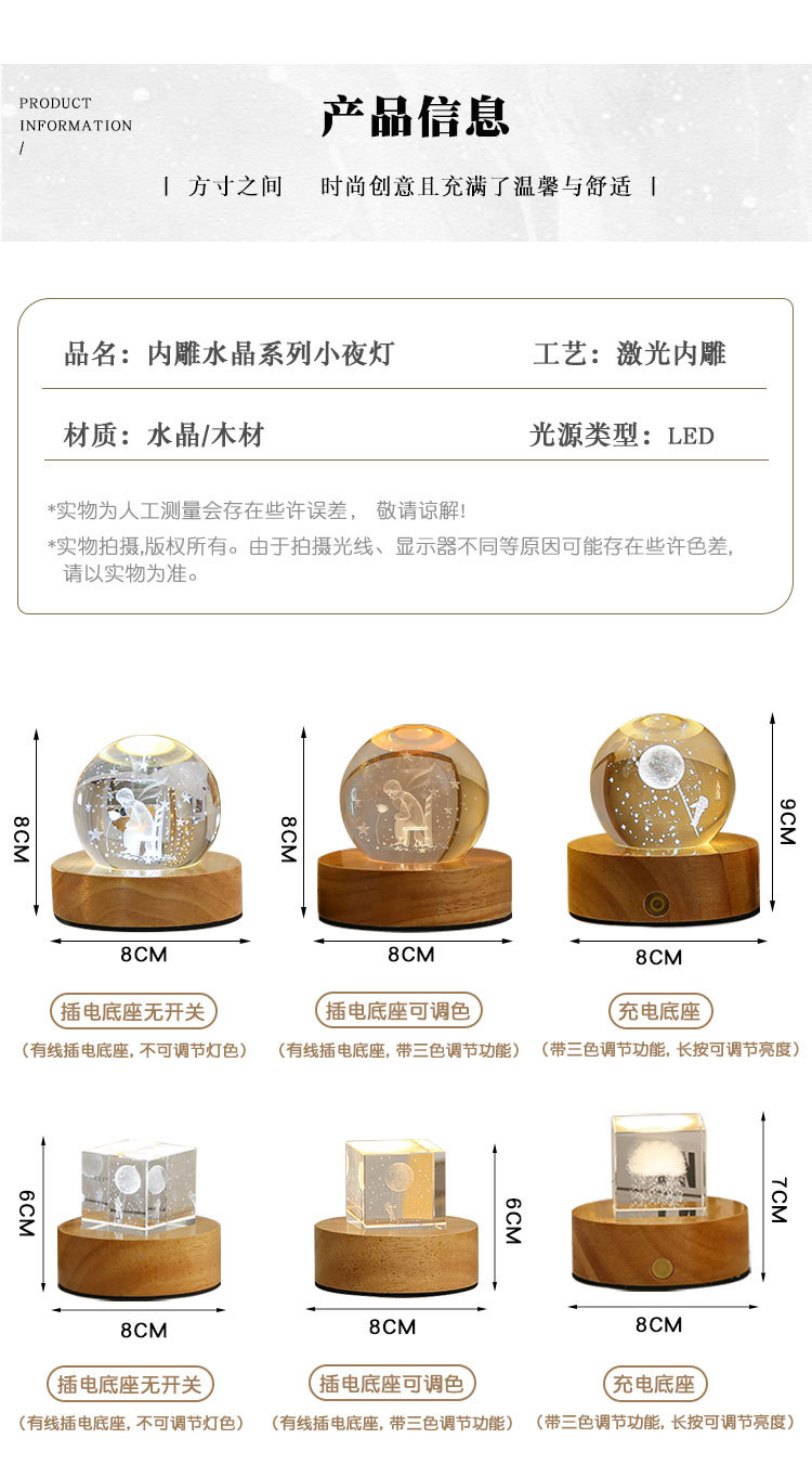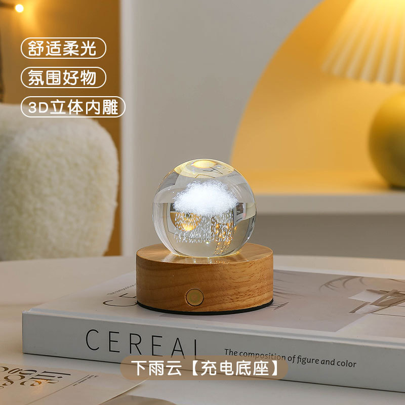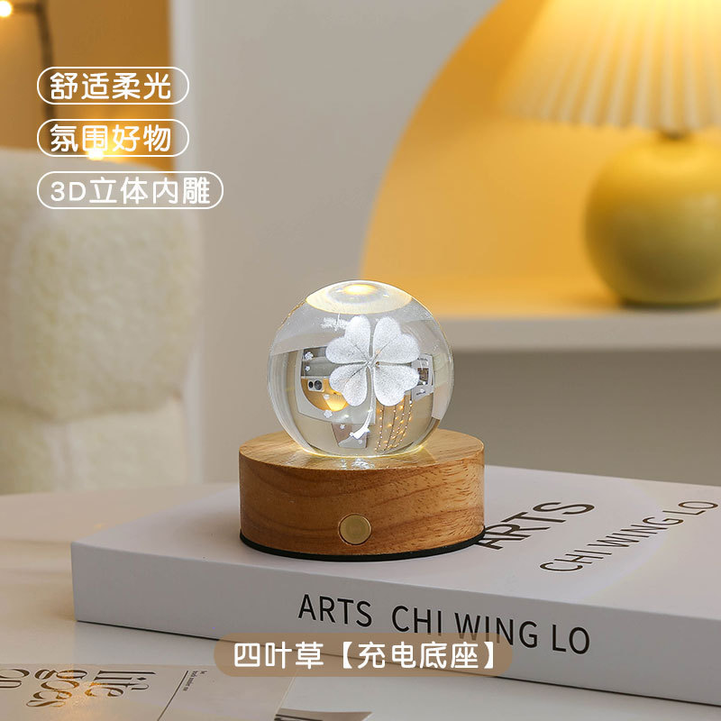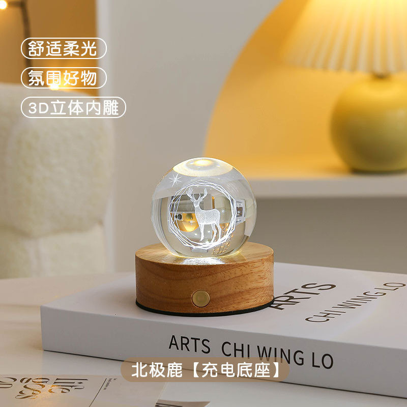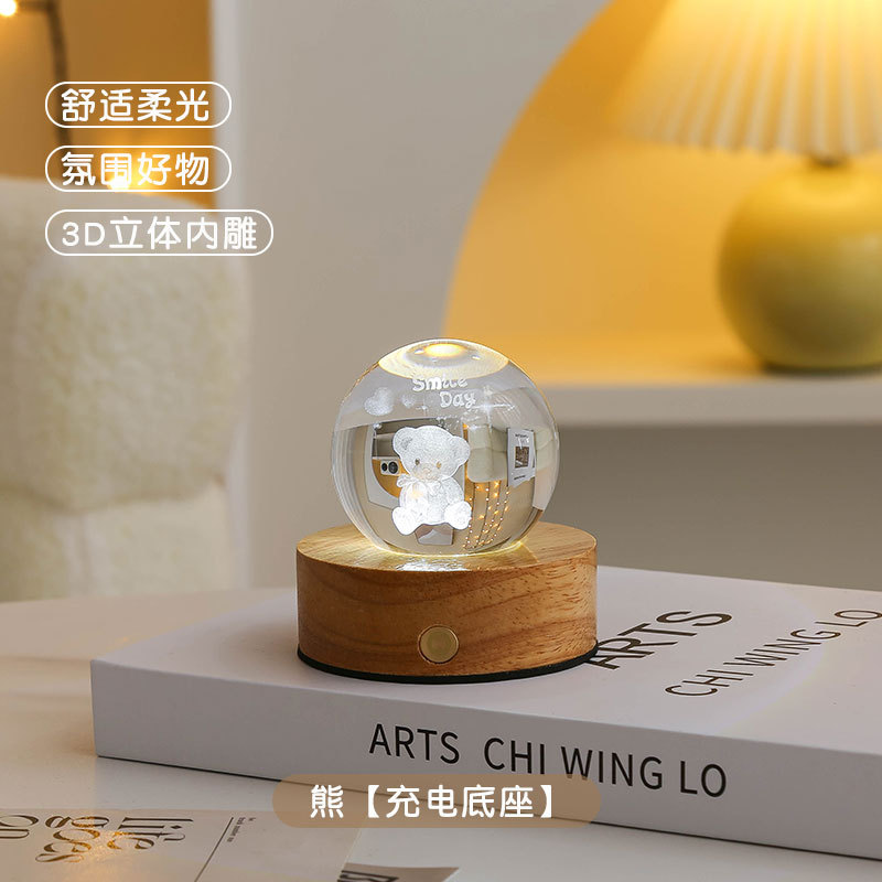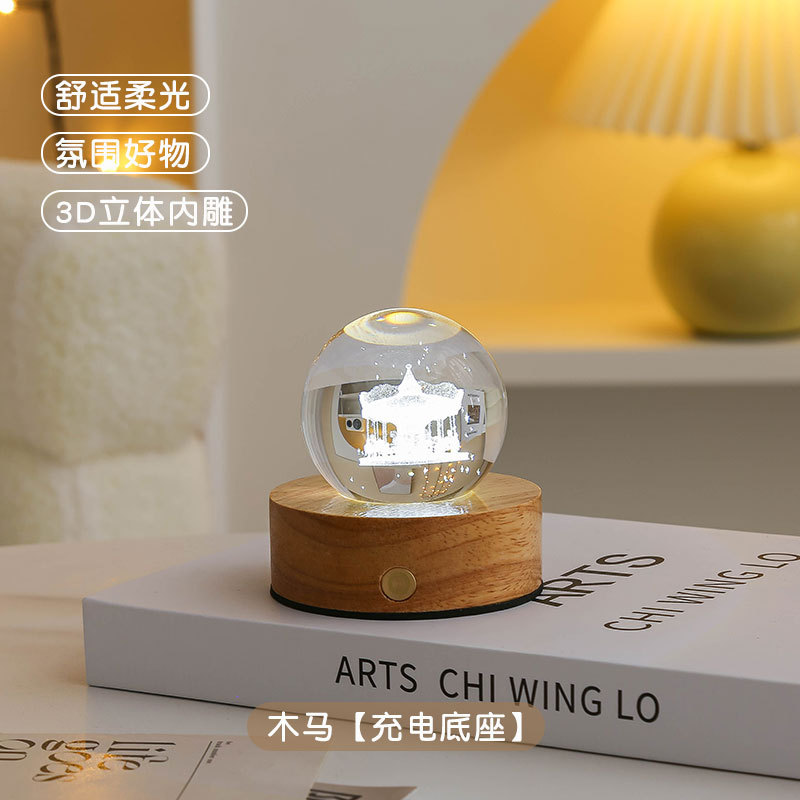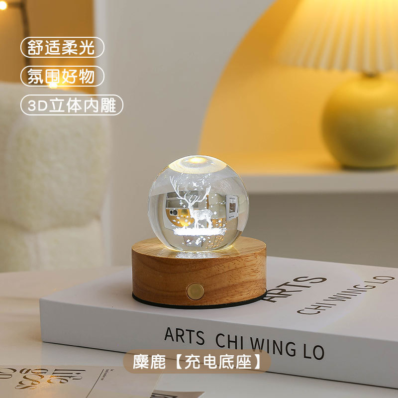 创意水晶球小夜灯立方体情侣氛围灯圆球高级感卧室床头灯摆件礼物